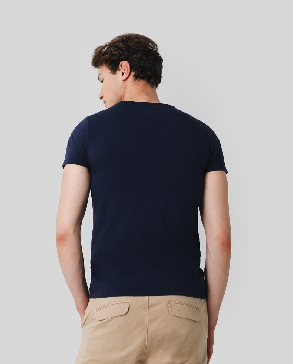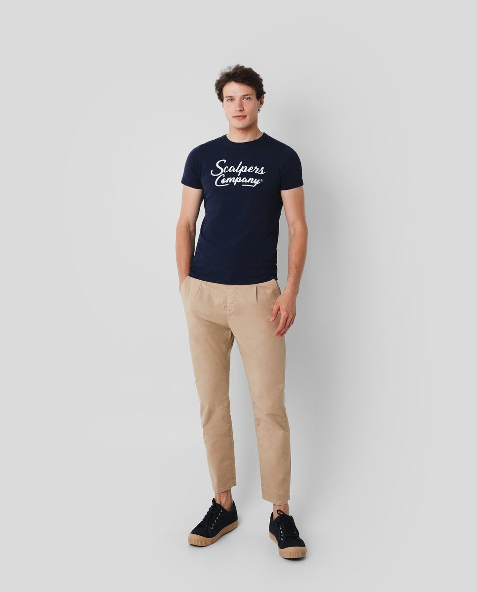 Camiseta con print flocado frontal, confeccionada en algodón. Corte Slim Fit, cuello redondo y manga corta.