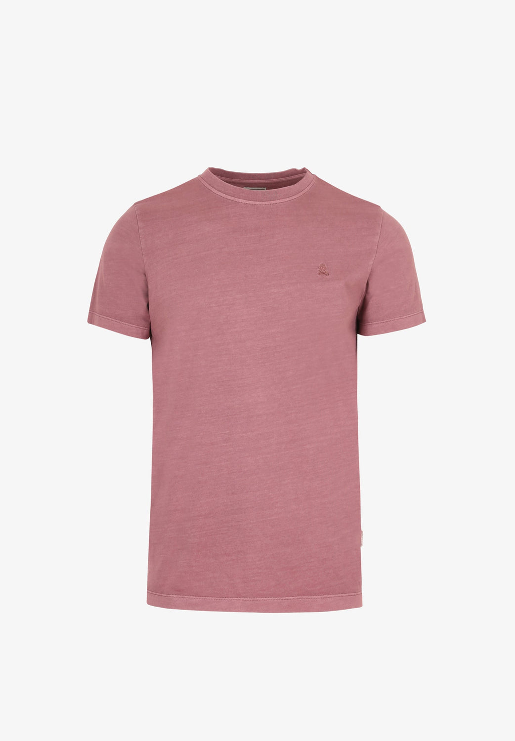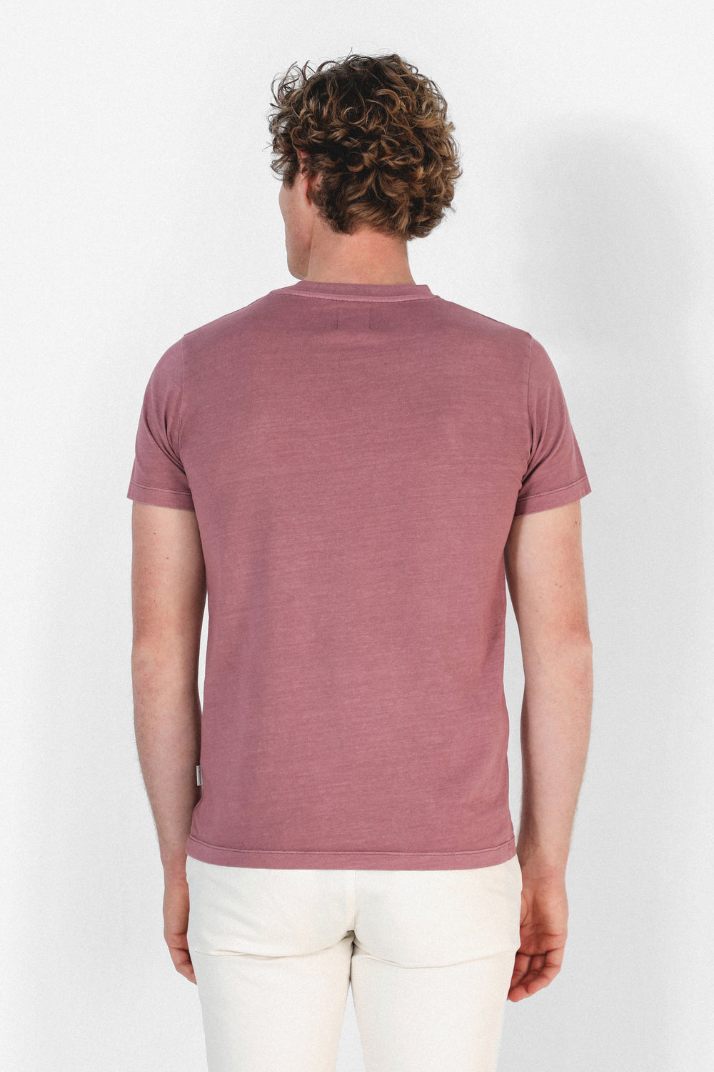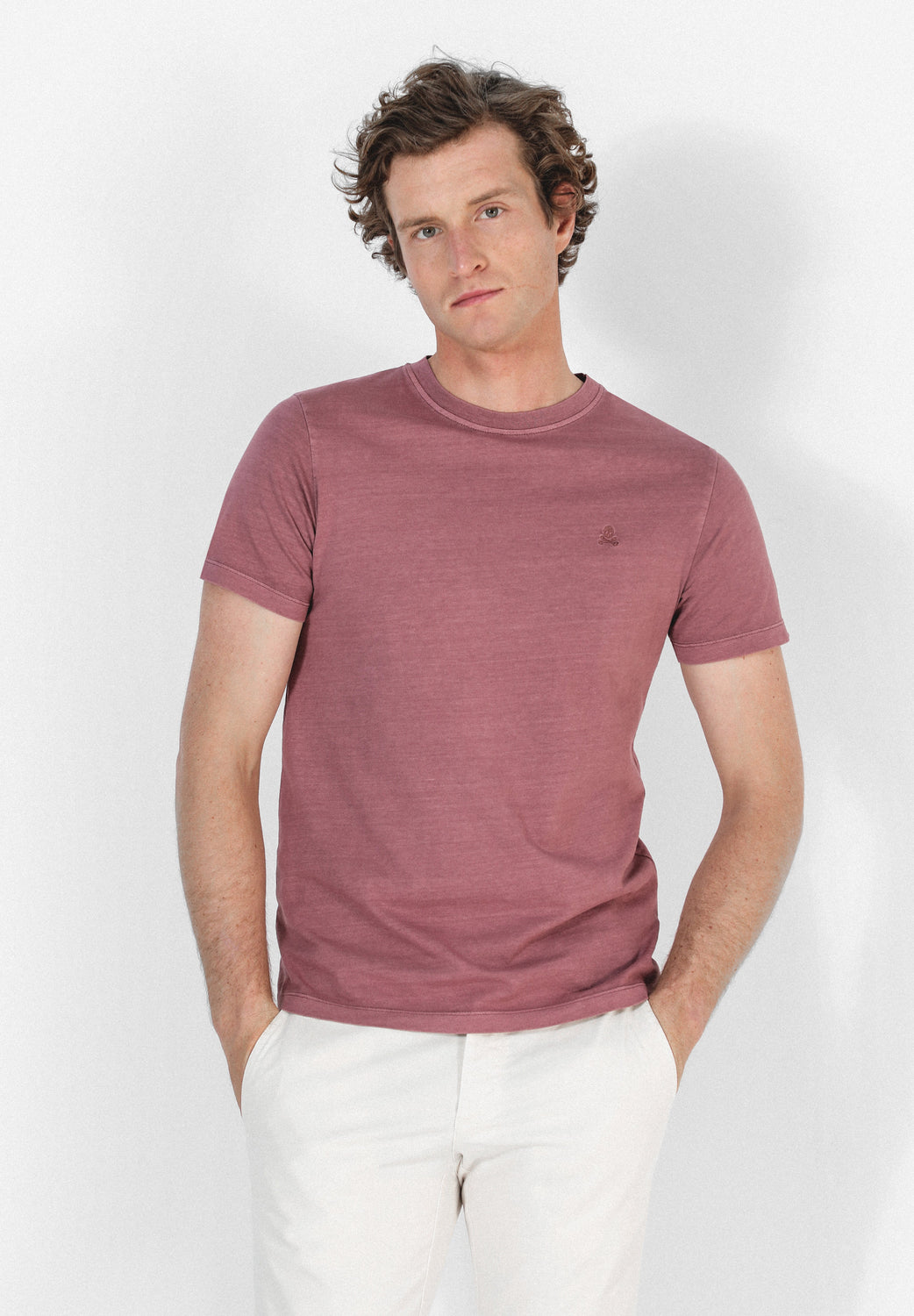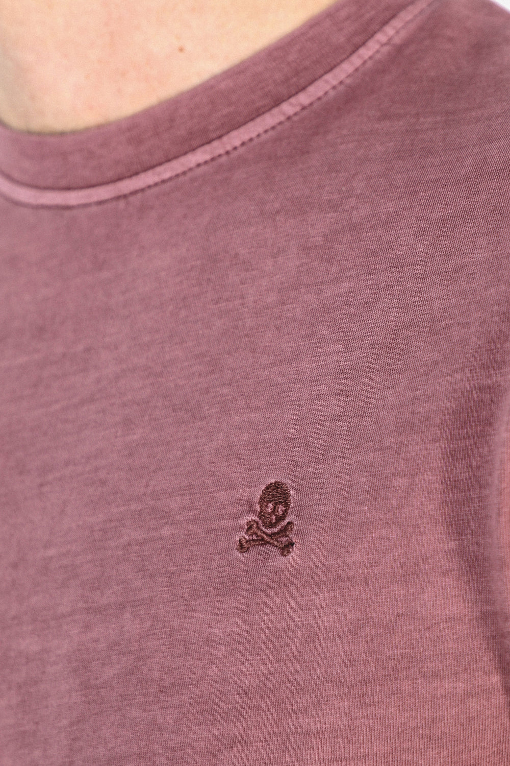 Camiseta básica confeccionada en tejido 100% algodón garment dyed. Corte Regular Fit, cuello redondo y manga corta. Detalle de calavera bordada a tono en el pecho.