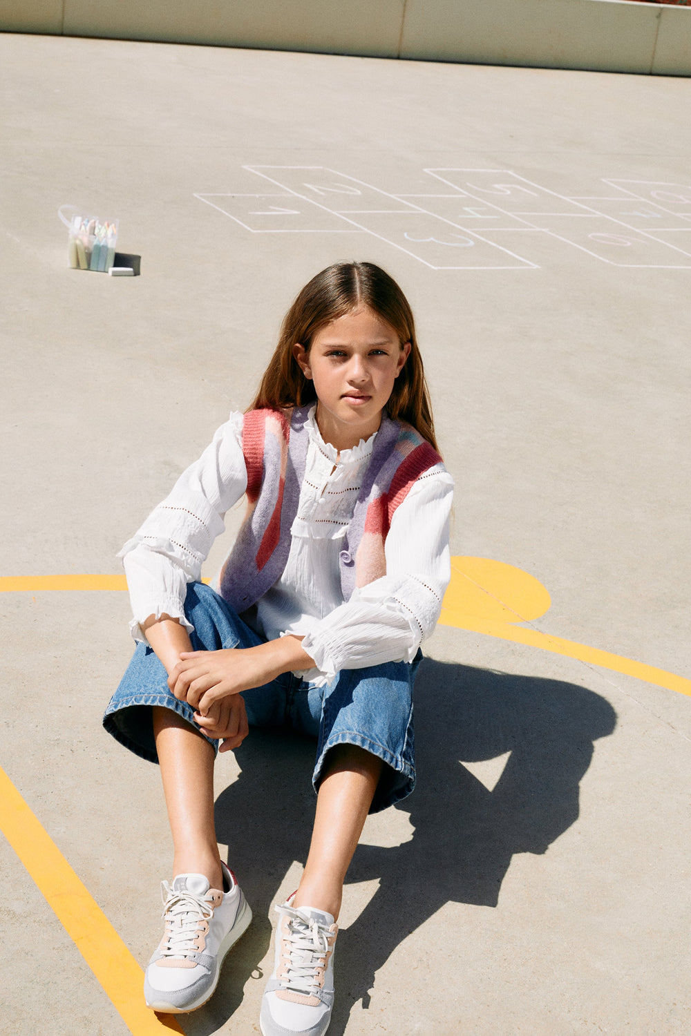 - Cuello redondo con detalle volante