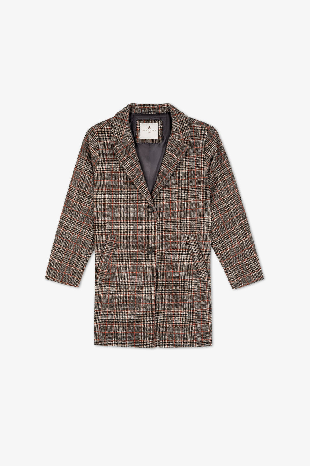 Abrigo de paño con estampado cuadro Príncipe de Gales