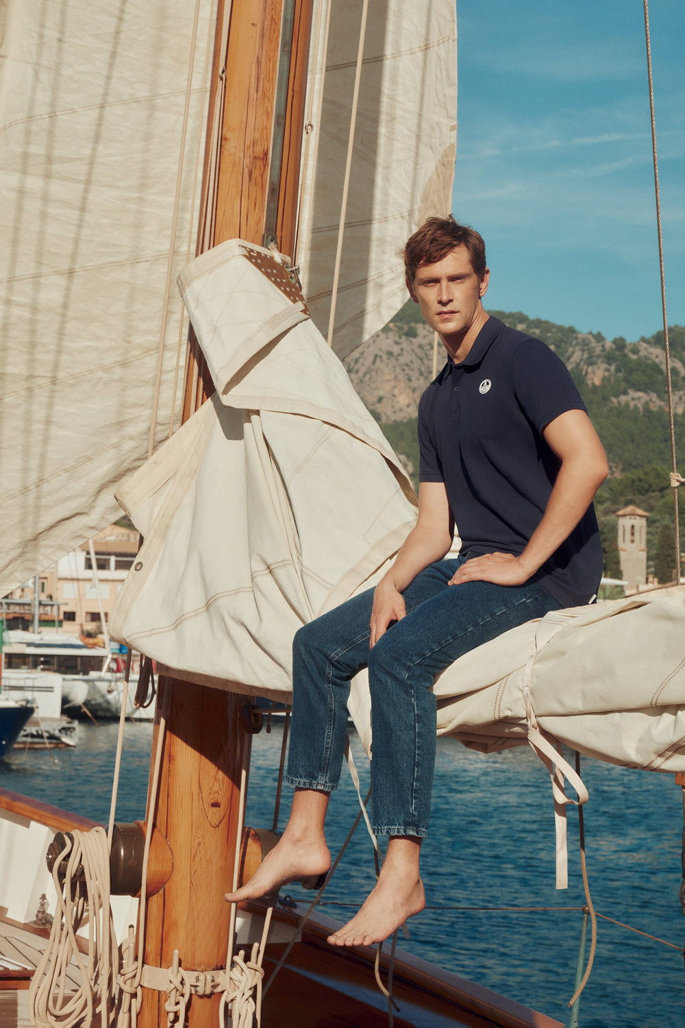 Jeans confeccionados en 100% algodón BCI. Corte recto, cierre con botón y cremallera. Bolsillos frontales y traseros y trabillas en cintura.