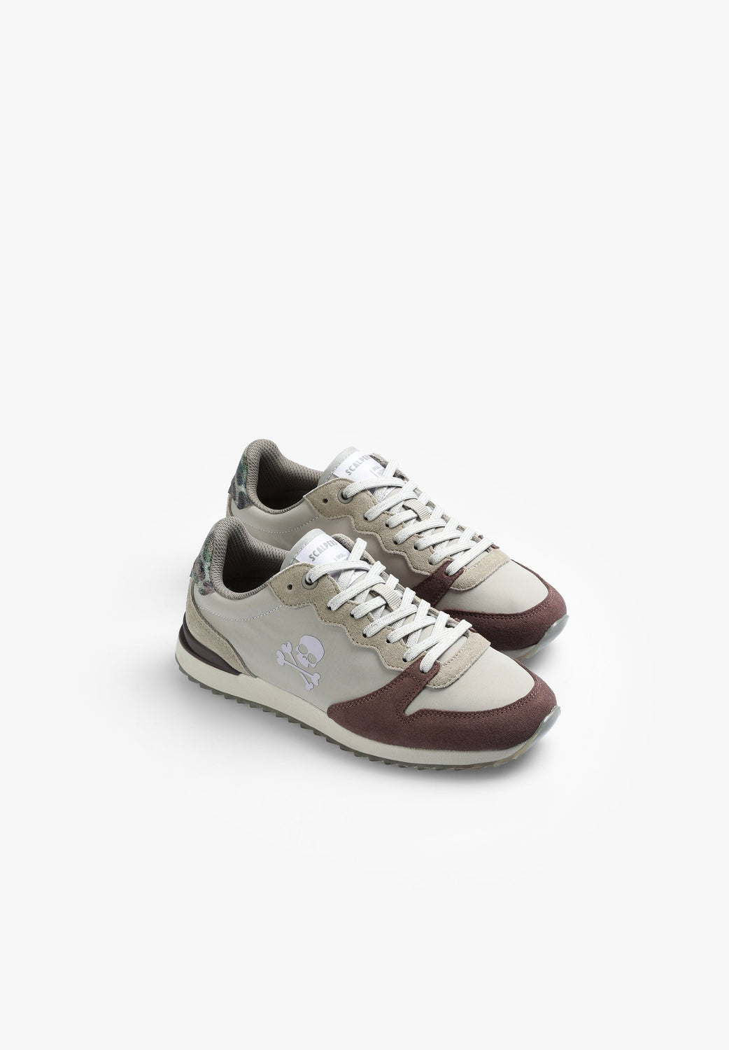 Sneakers confeccionadas en nylon con detalles en ante. Cierre con cordones, suela de eva y TPR y calavera lateral. Detalle de animal print en la parte trasera.
