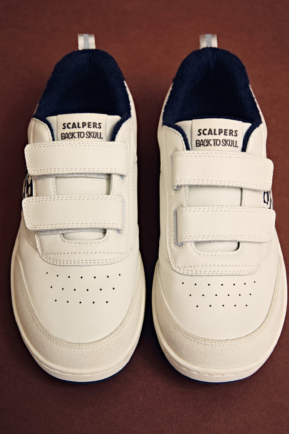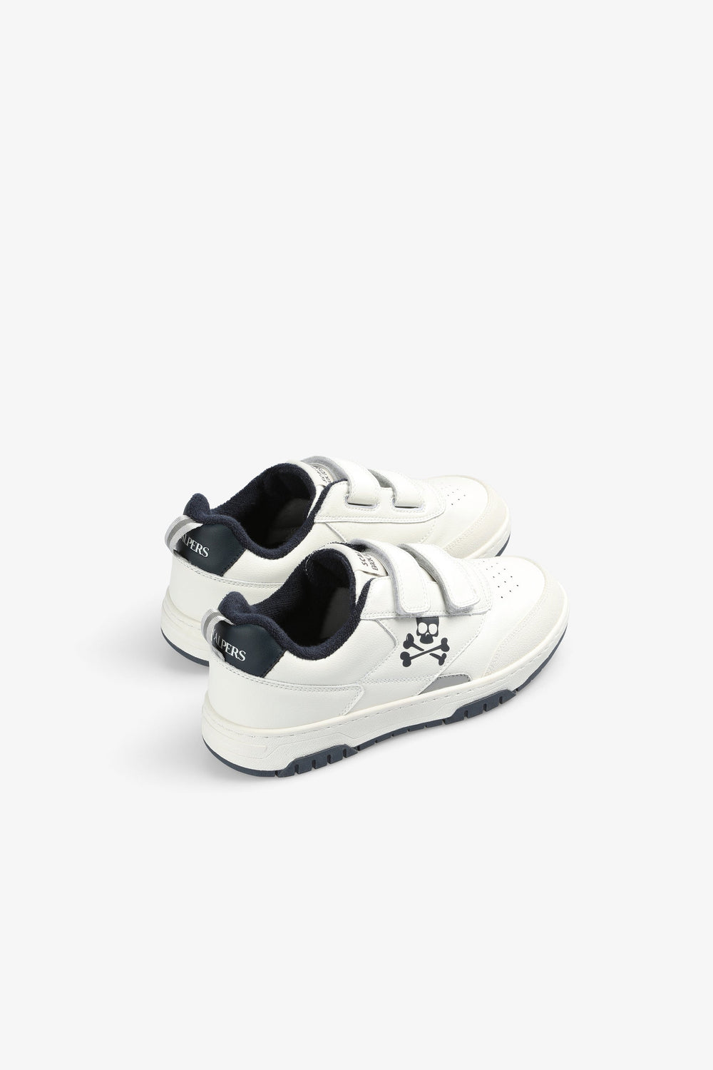 Sneakers confeccionadas en piel. Cierre con velcros, suela de goma y calavera lateral.