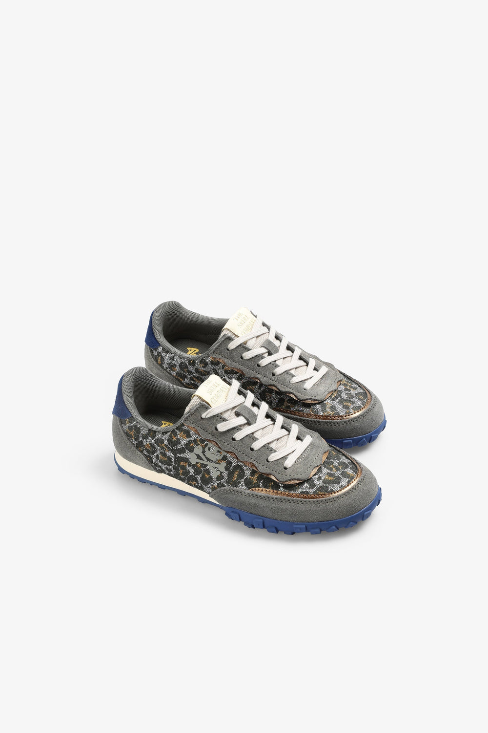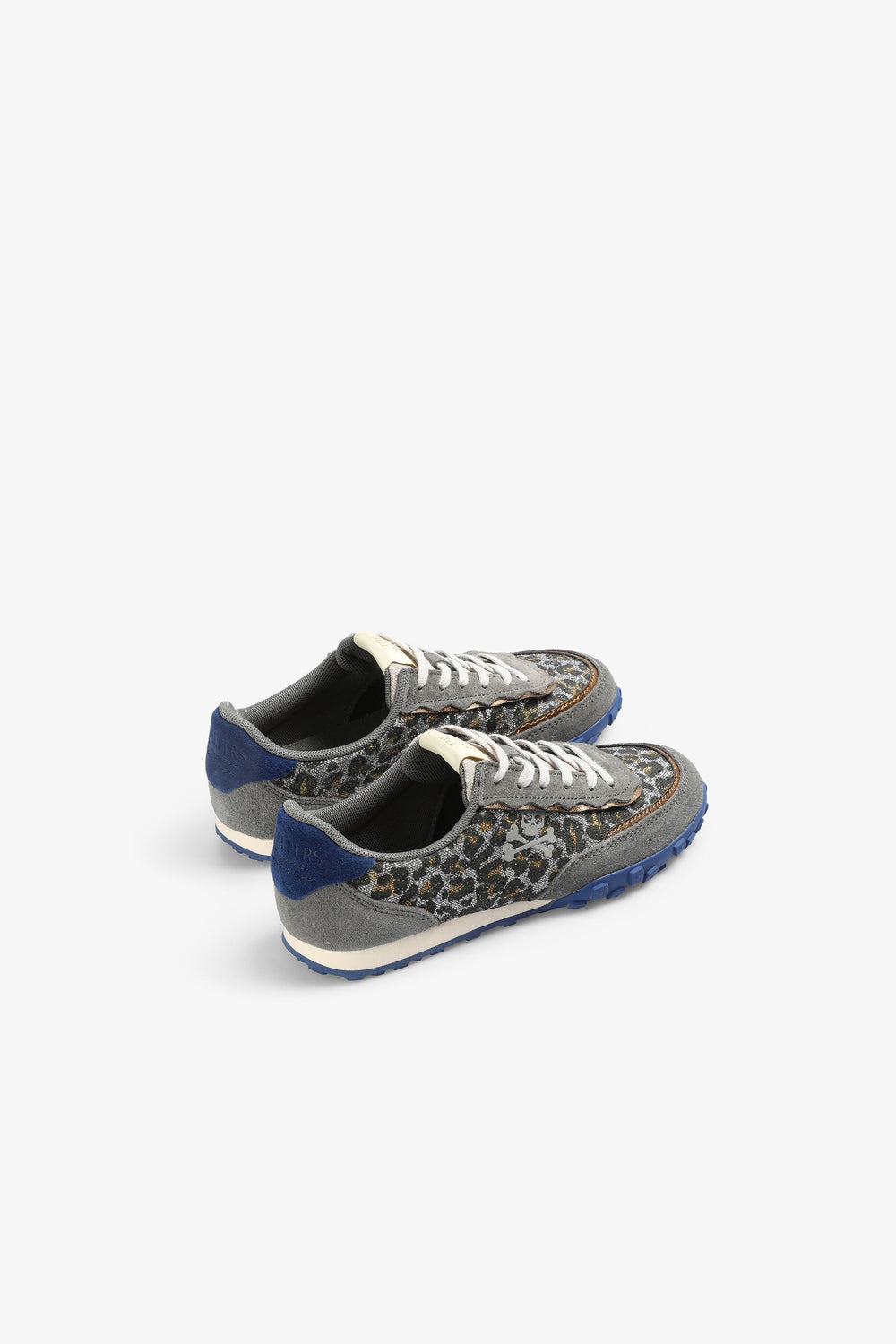 Sneakers con animal print confeccionadas en nylon con detalles en ante. Cierre con cordones, suela de EVA y TPR y calavera lateral.