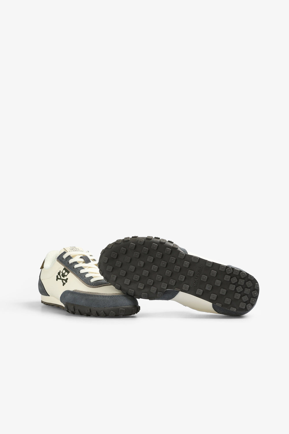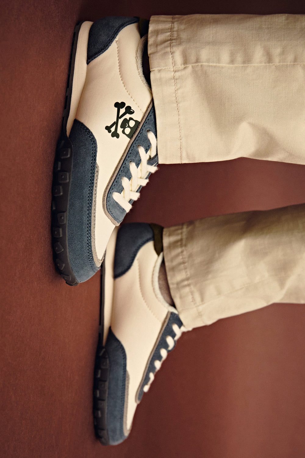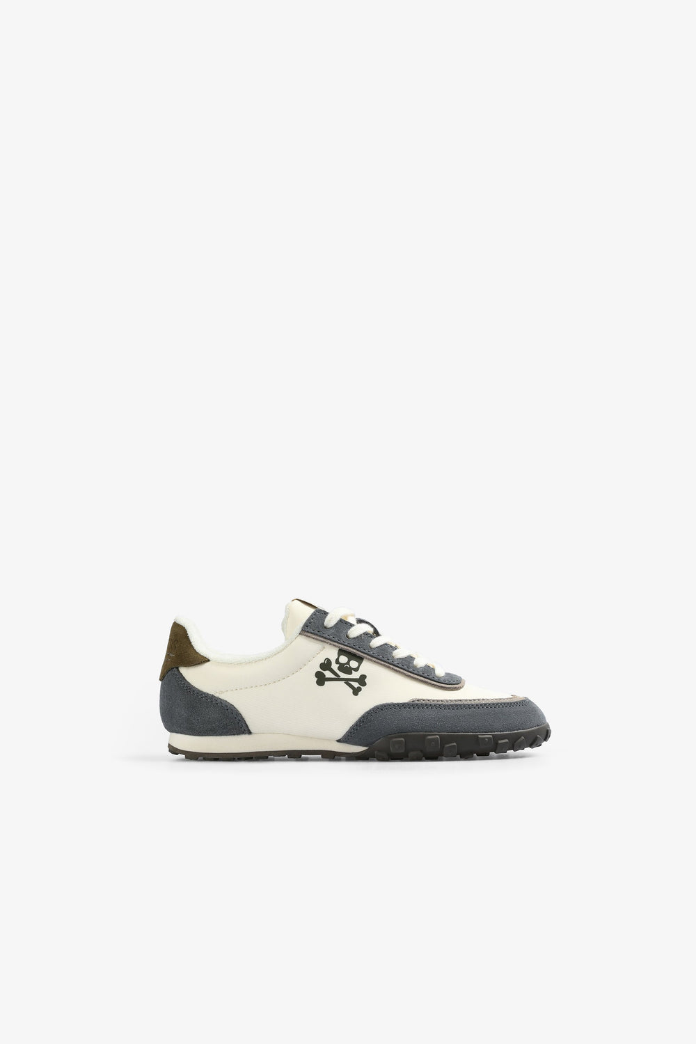 Sneakers confeccionada en nylon con detalles en serraje. Cierre con cordones, suela de goma dentada pronunciada en la parte delantera. Calavera lateral.