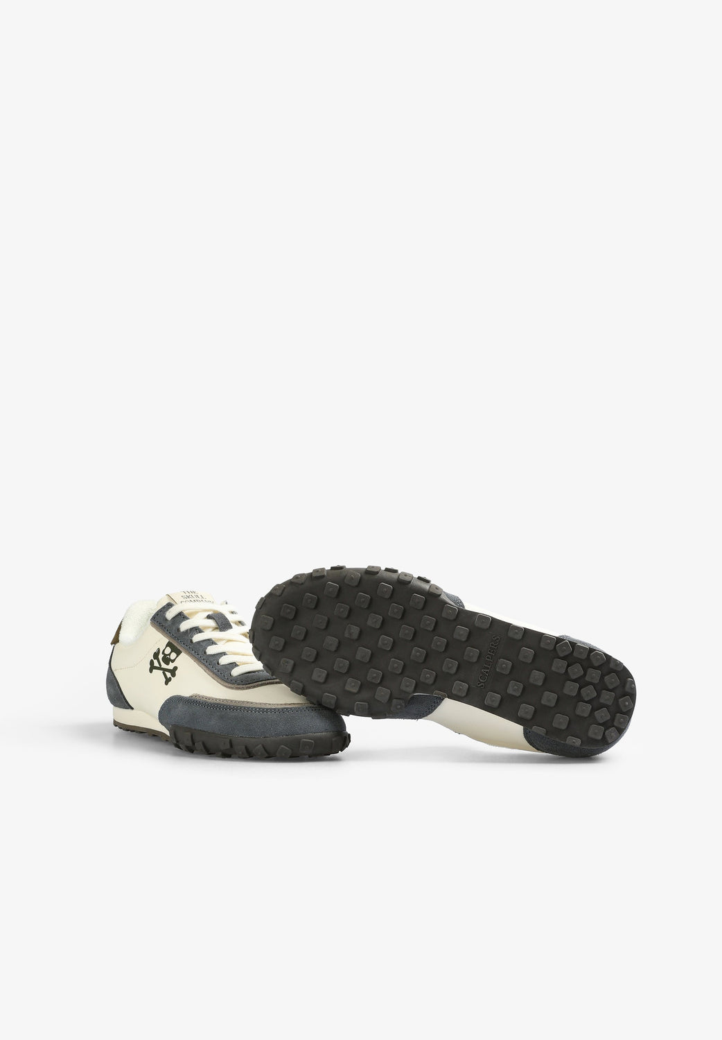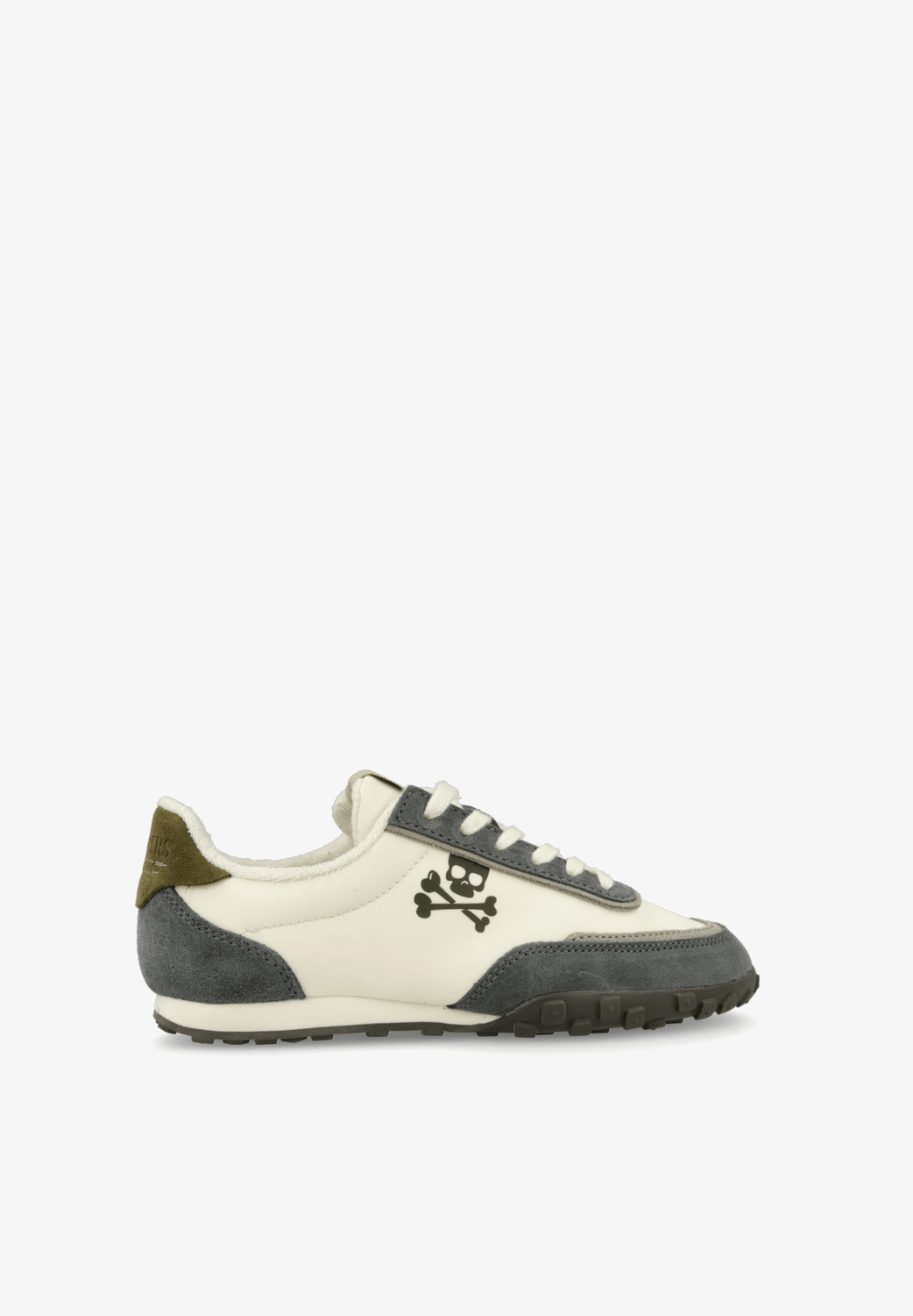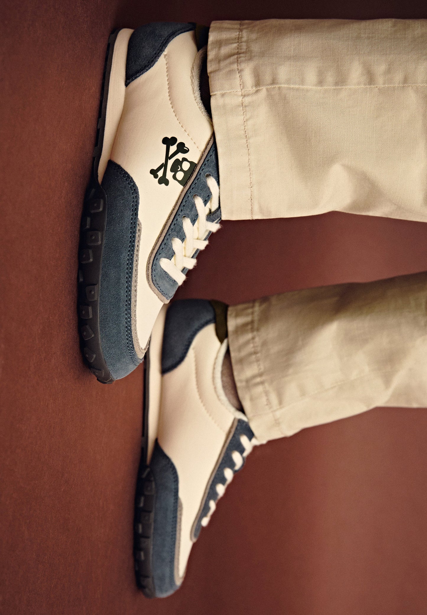 Sneakers confeccionada en nylon con detalles en serraje. Cierre con cordones, suela de goma dentada pronunciada en la parte delantera. Calavera lateral.