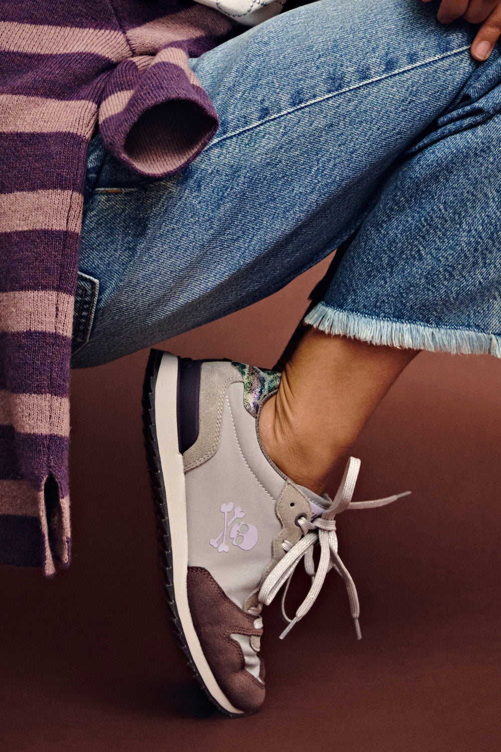 Sneakers confeccionadas en nylon con detalles en ante. Cierre con cordones, suela de eva y TPR y calavera lateral. Detalle de animal print en la parte trasera.