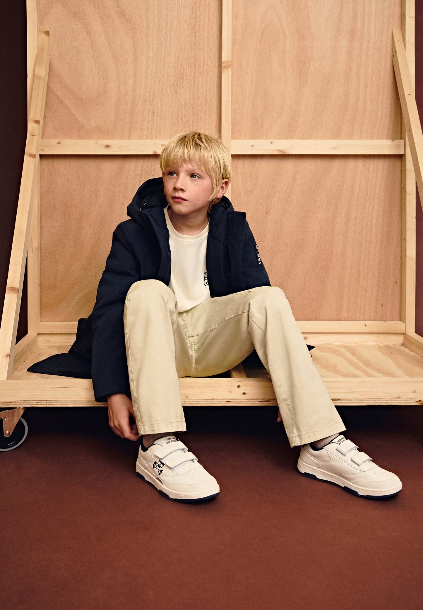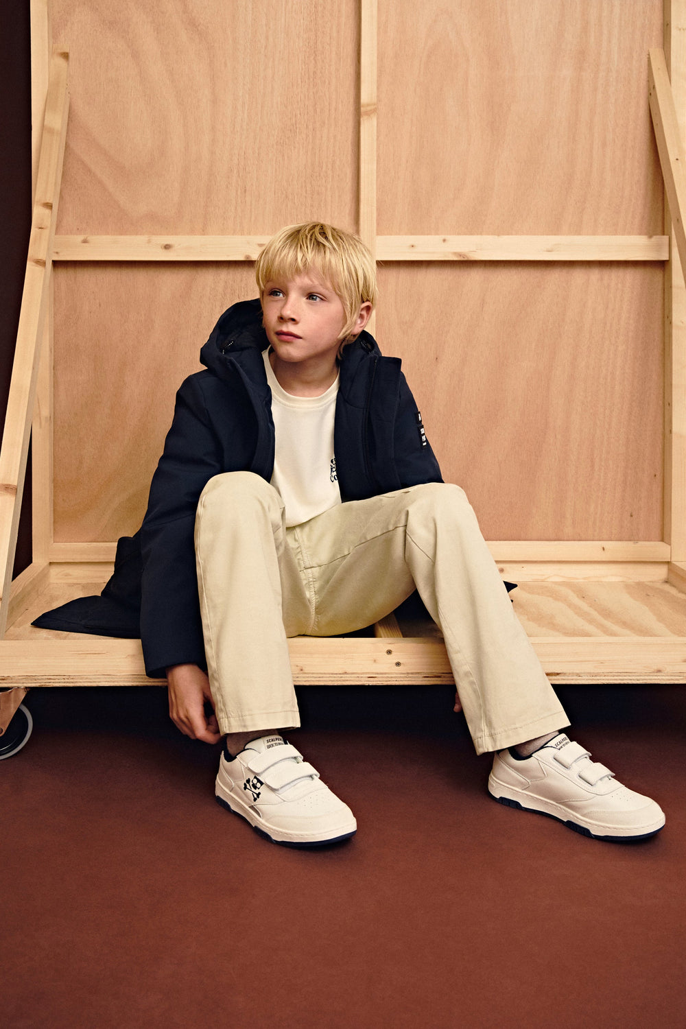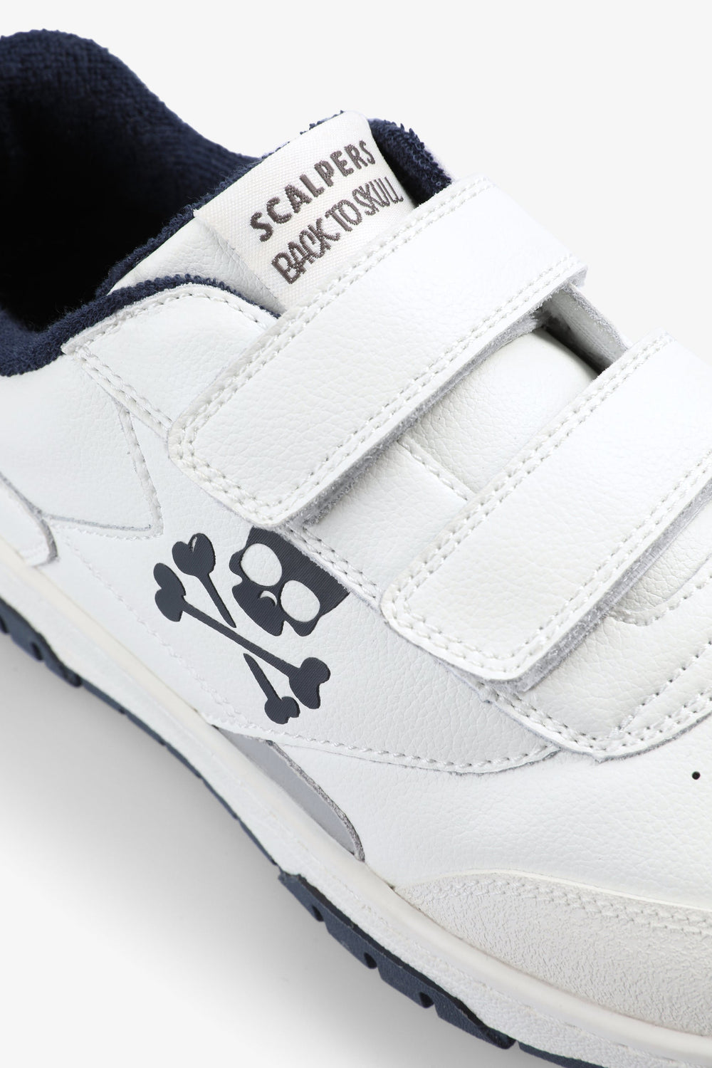 Sneakers confeccionadas en piel. Cierre con velcros, suela de goma y calavera lateral.