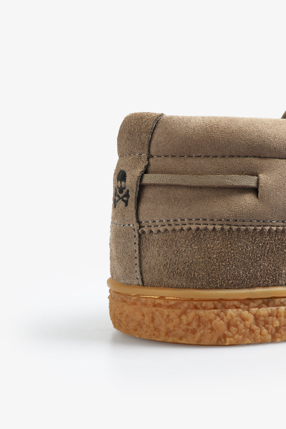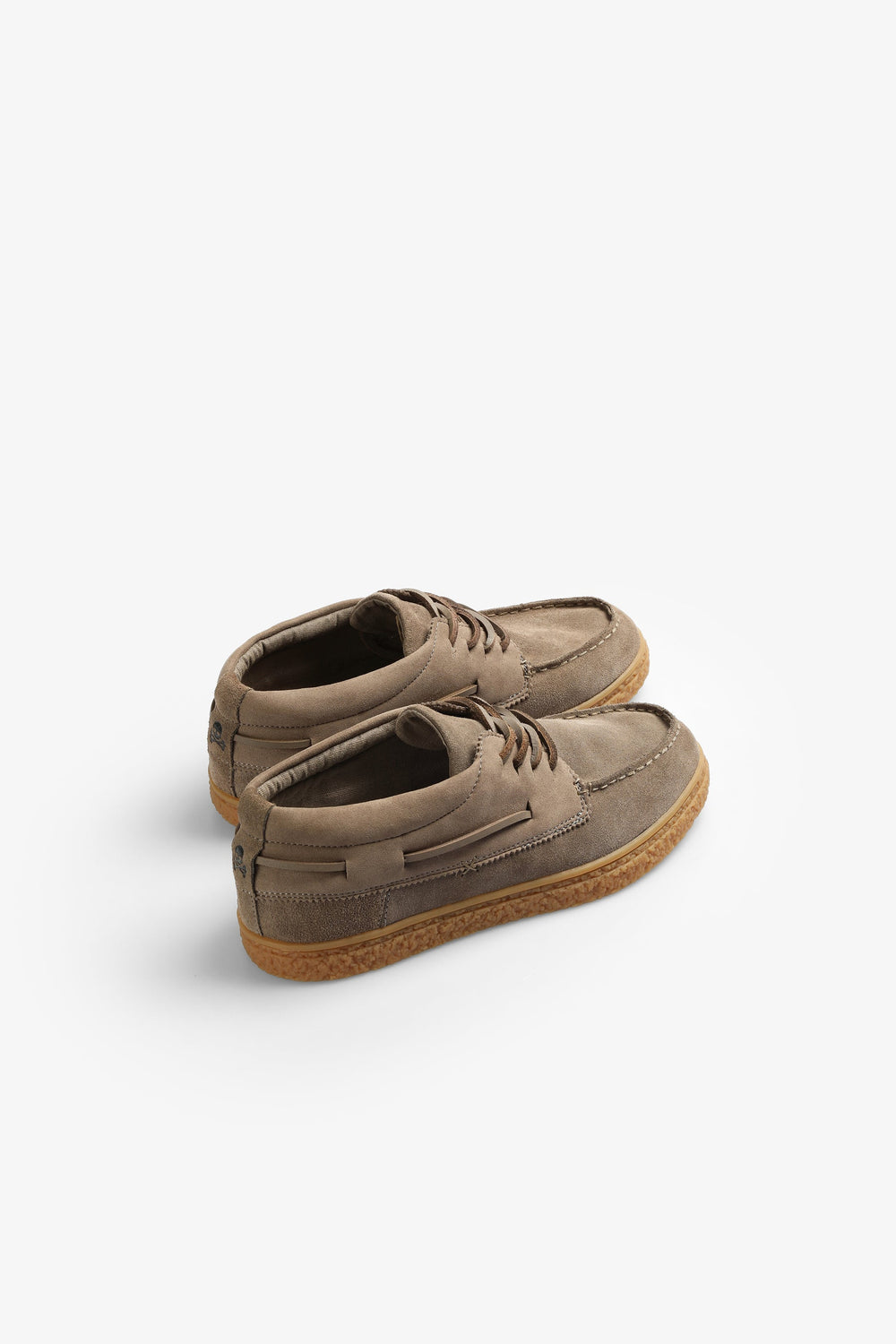 Zapatos tipo náuticos confeccionados en piel. Cierre con cordones a tono, suela de goma y detalles de costuras marcadas.