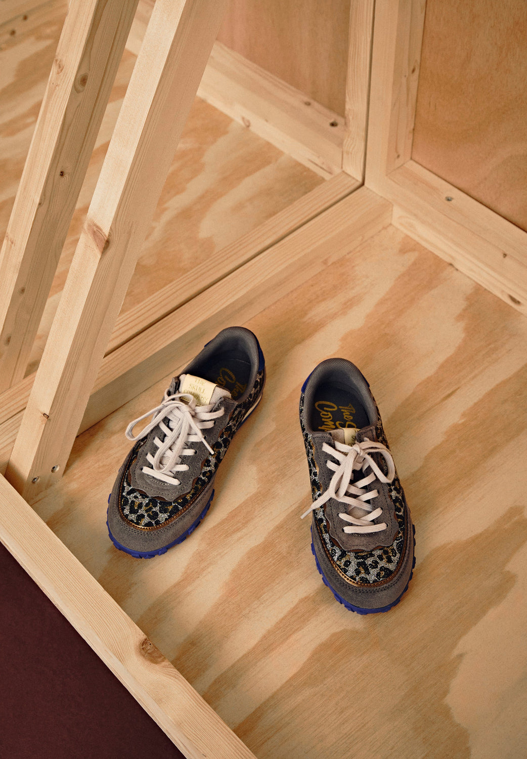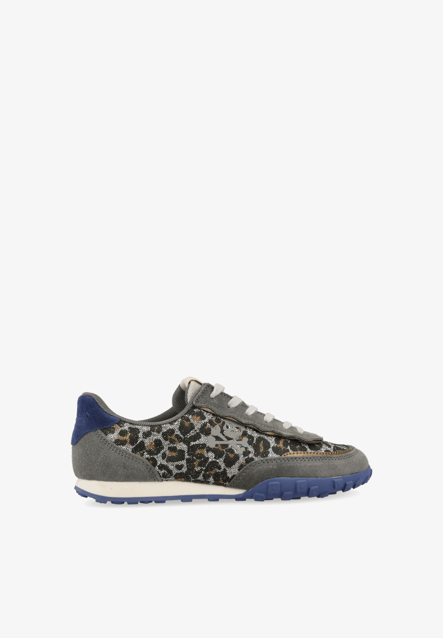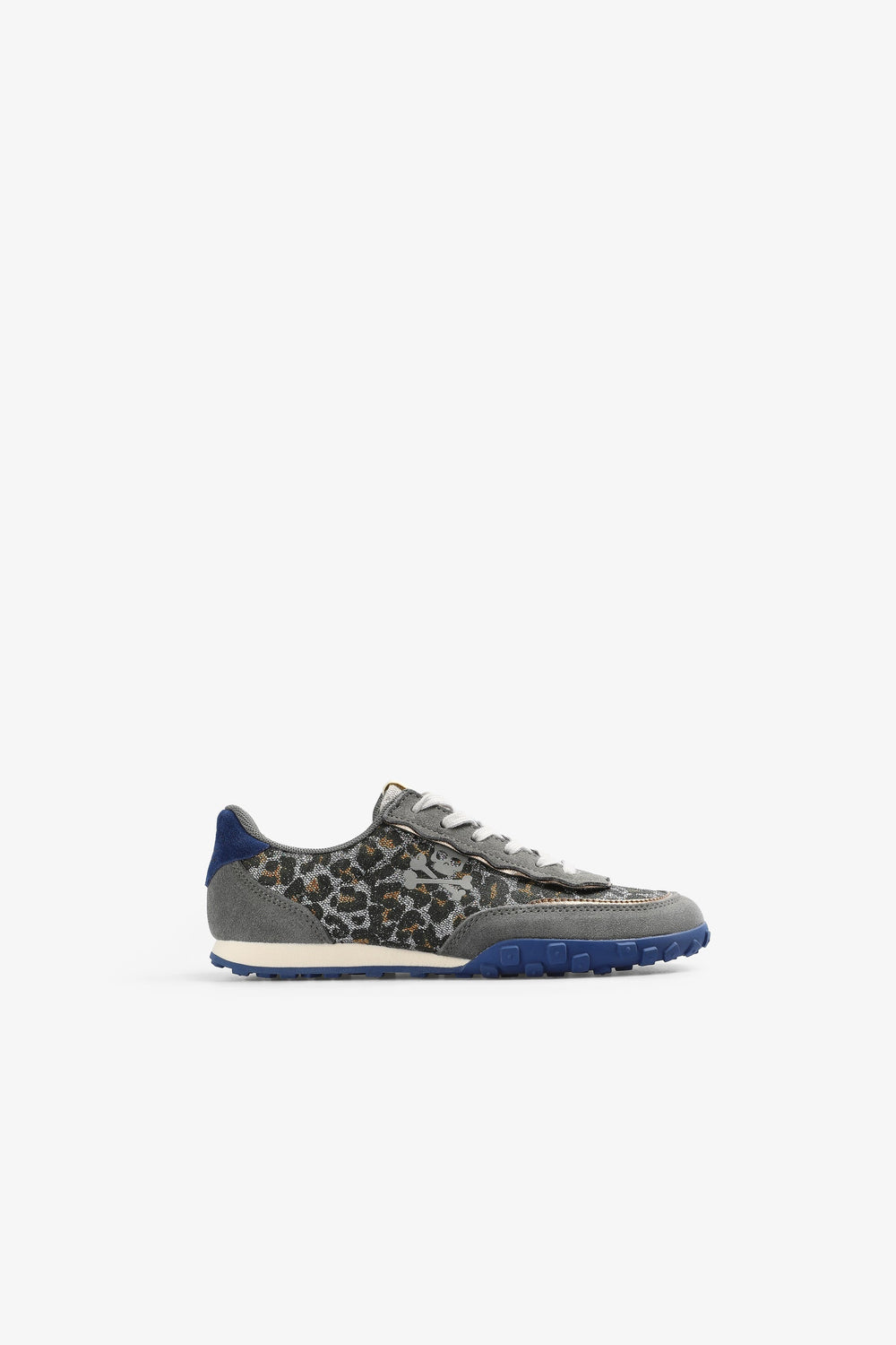 Sneakers con animal print confeccionadas en nylon con detalles en ante. Cierre con cordones, suela de EVA y TPR y calavera lateral.