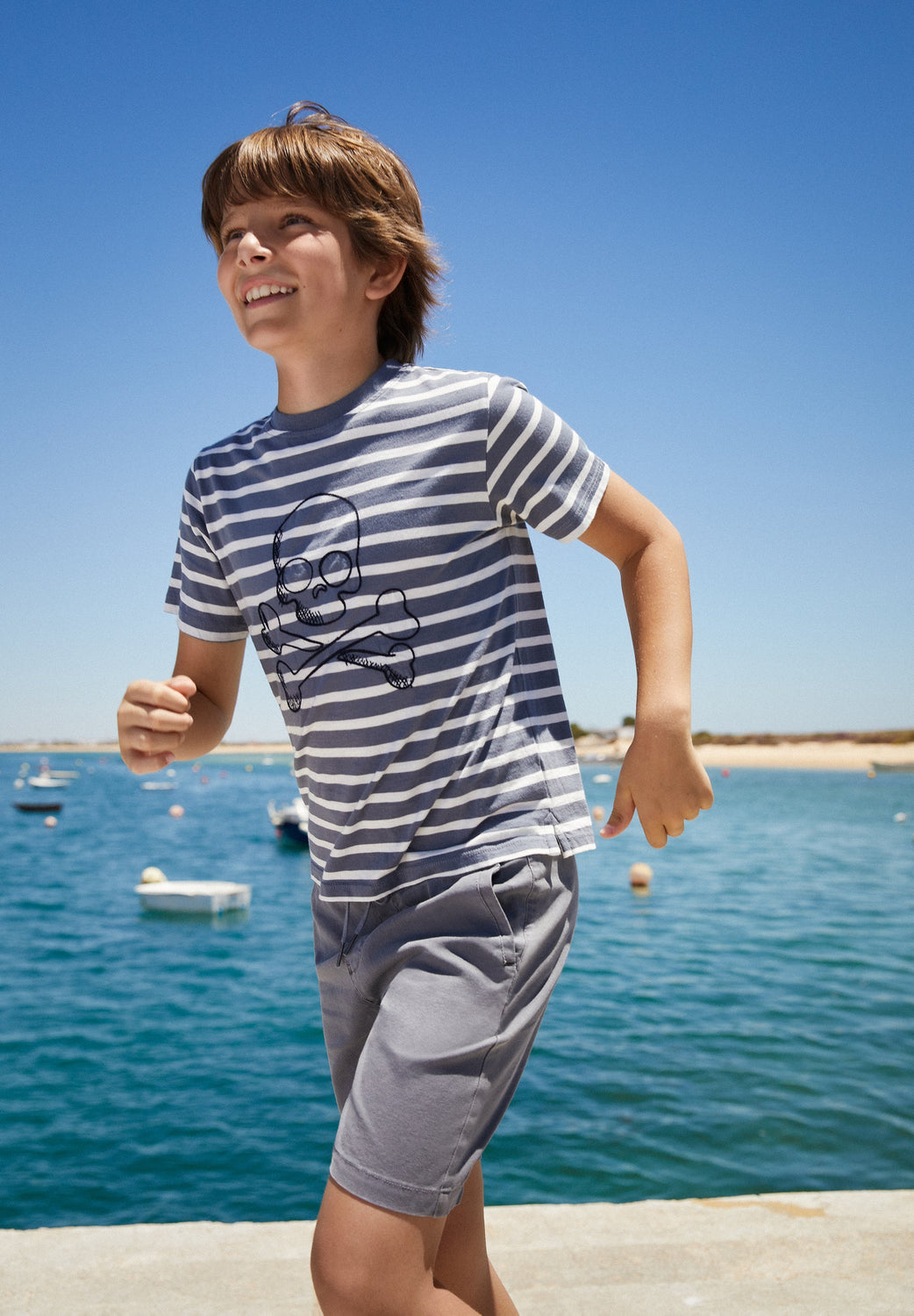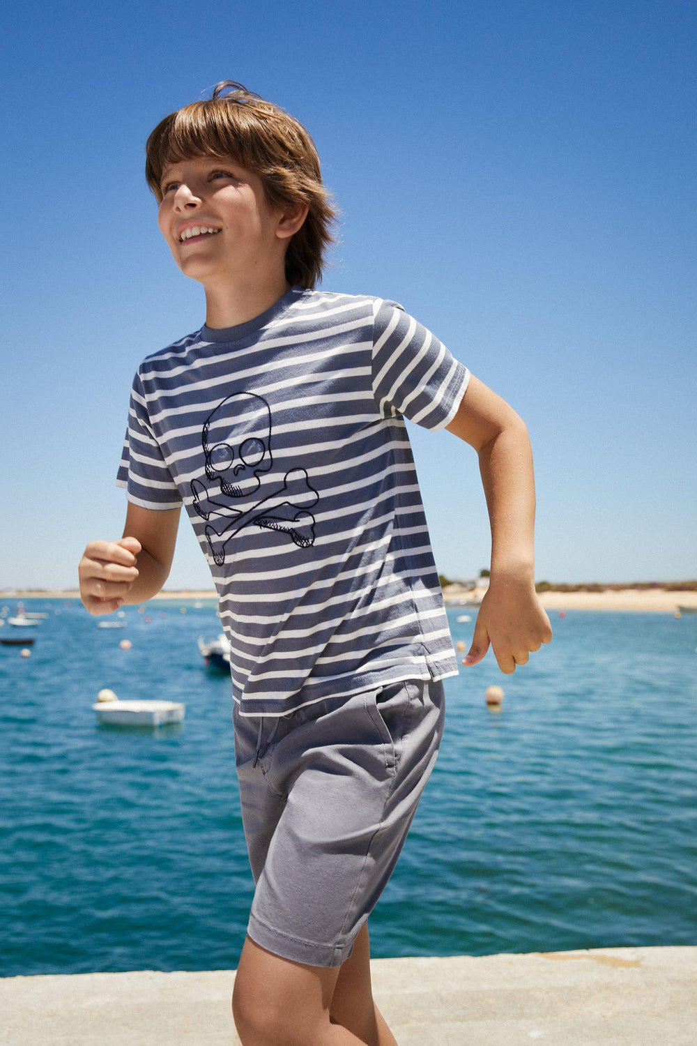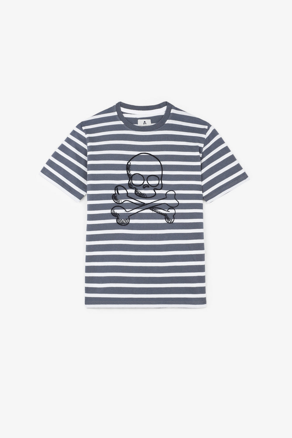 Camiseta de rayas con calavera frontal.