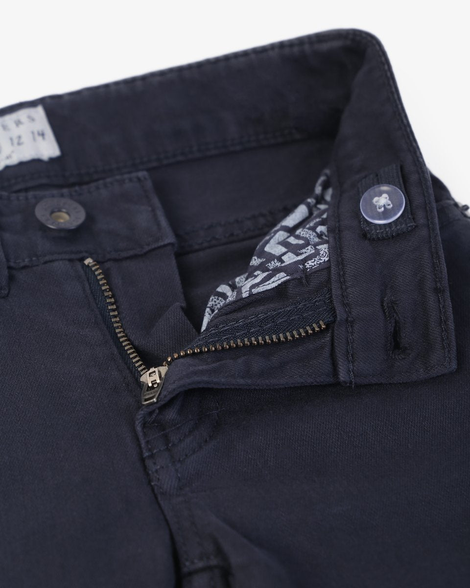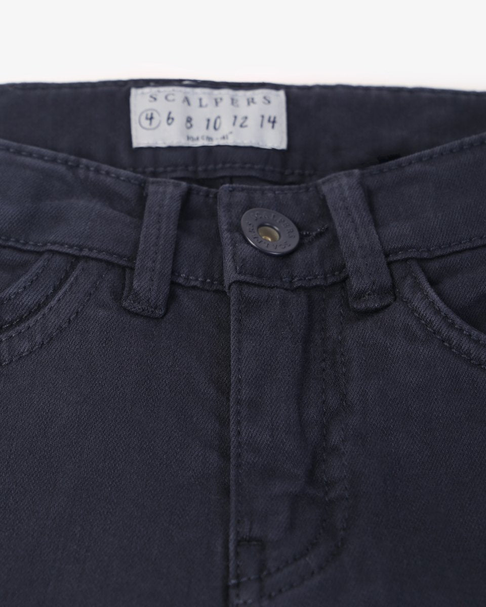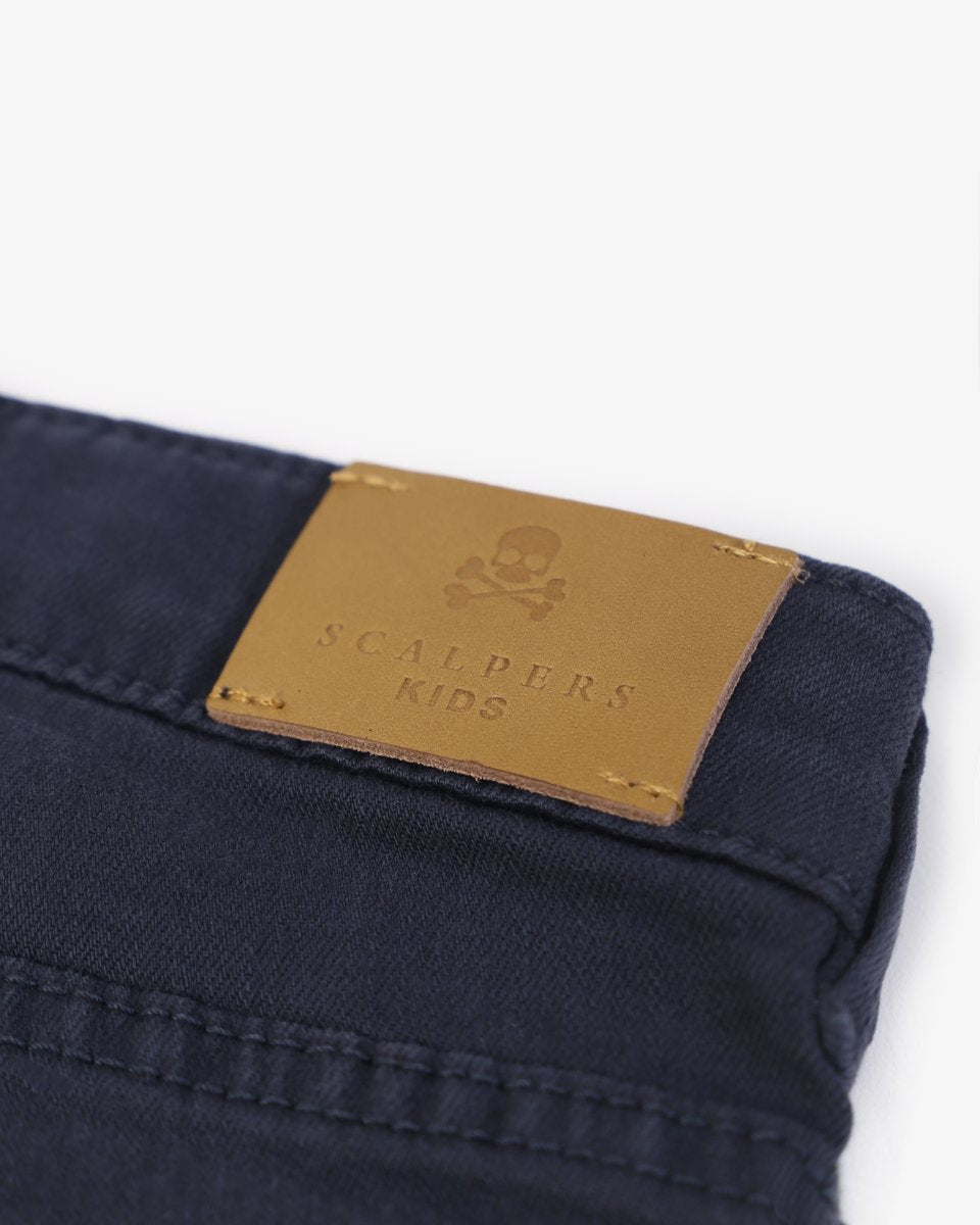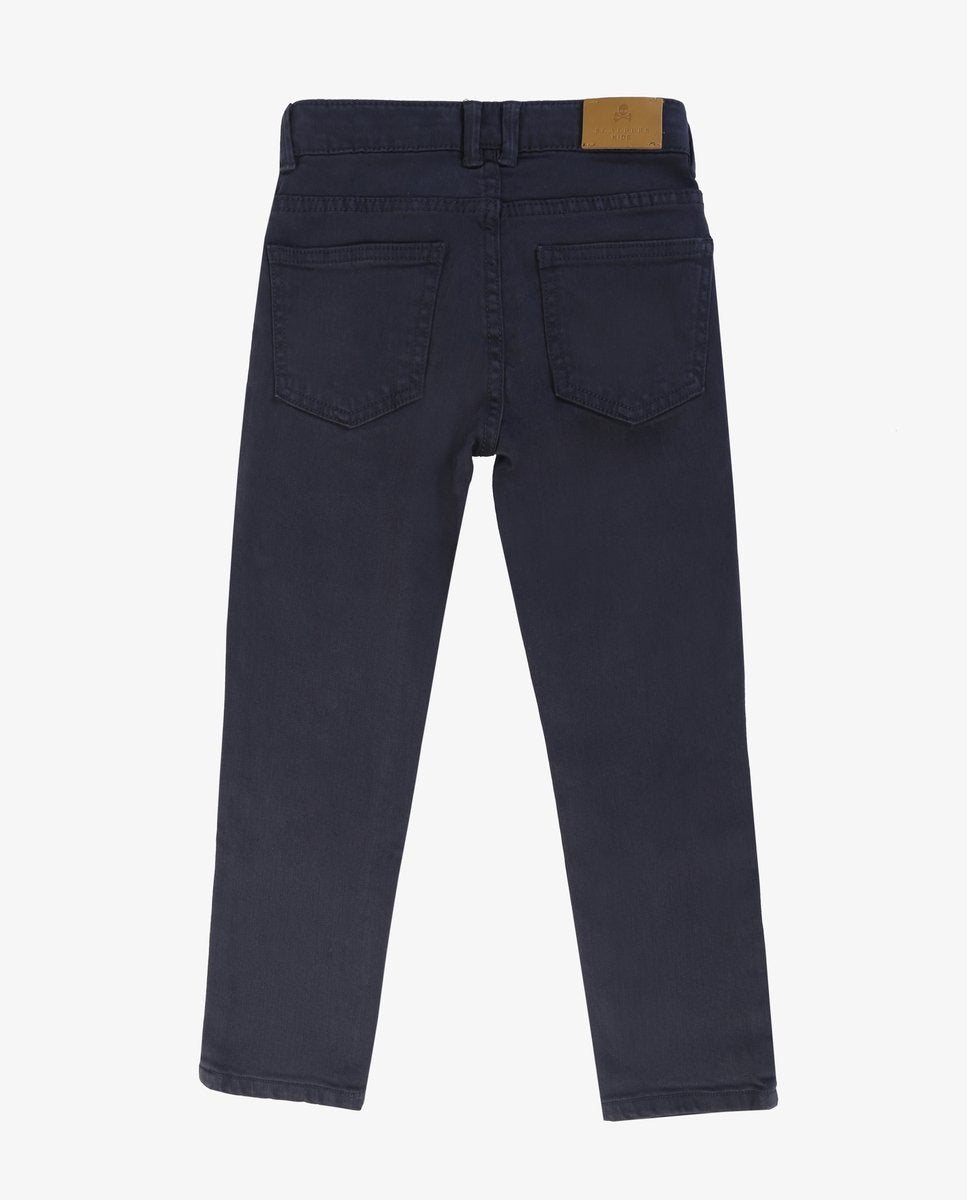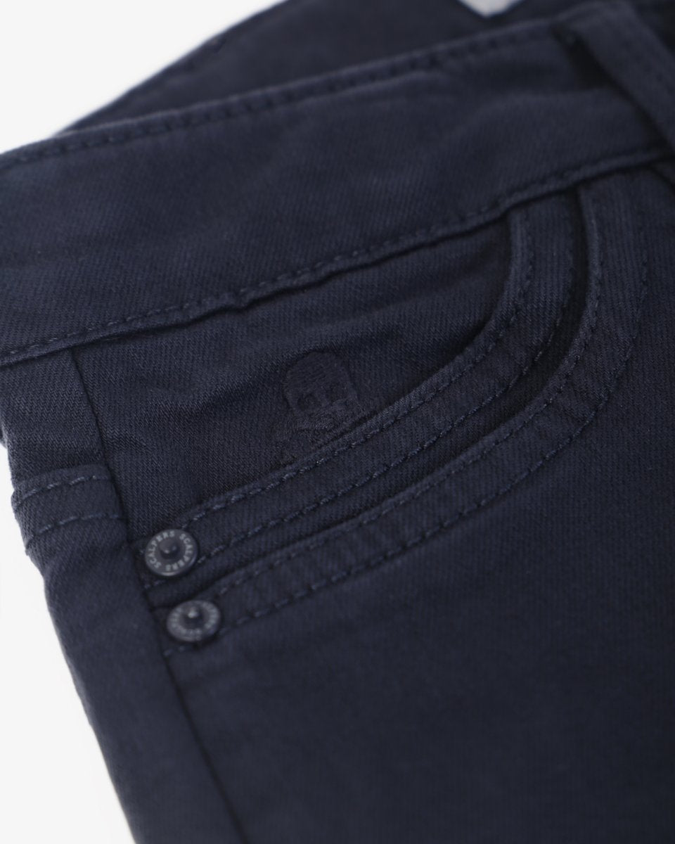 Pantalón garment dyed confeccionados en algodón y elastano. Corte recto, cierre con botón y cremallera oculta por tapeta. El botón y los remaches tienen el acabado engomado. Dos bolsillos frontales, dos traseros y uno cerillero. Tiene trabillas y presenta como detalles el logo bordado en el bolsillo y los hilos a contraste en el interior. Disponible en tres colores.