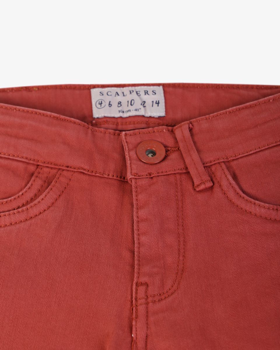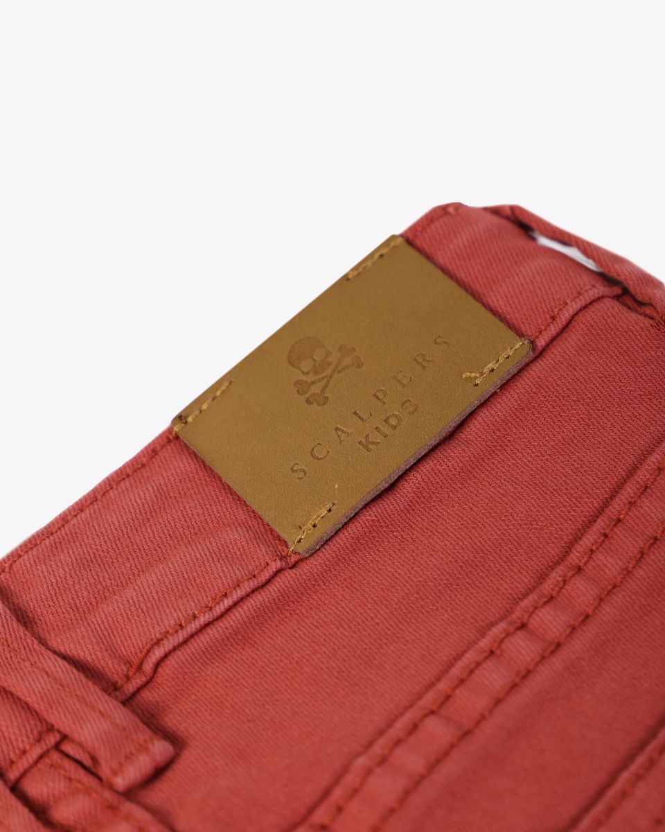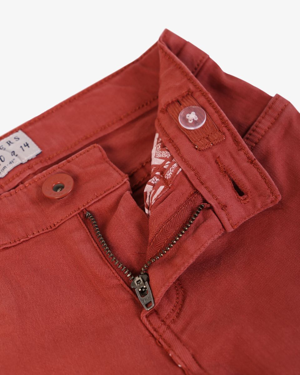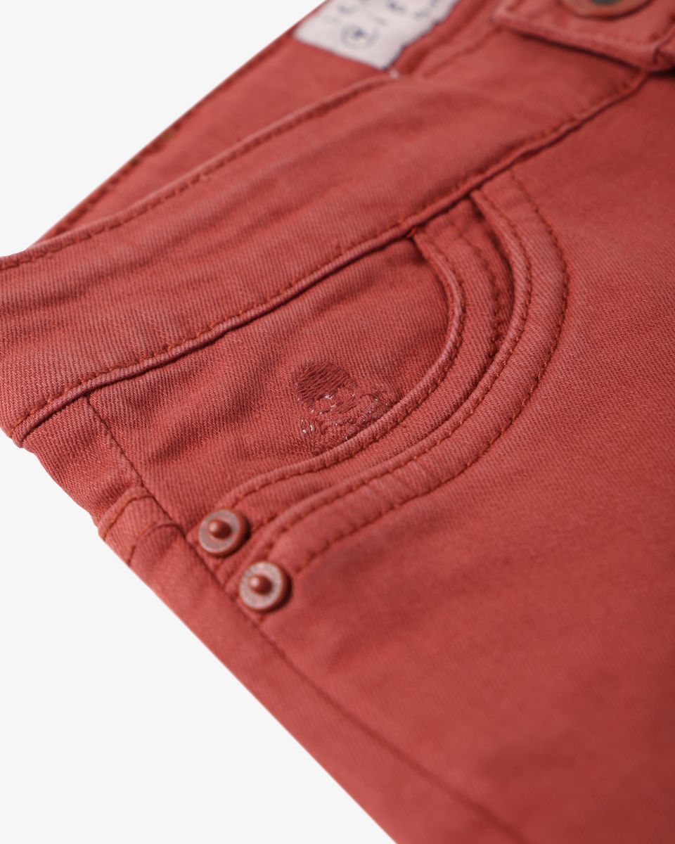 Pantalón garment dyed confeccionados en algodón y elastano. Corte recto, cierre con botón y cremallera oculta por tapeta. El botón y los remaches tienen el acabado engomado. Dos bolsillos frontales, dos traseros y uno cerillero. Tiene trabillas y presenta como detalles el logo bordado en el bolsillo y los hilos a contraste en el interior. Disponible en tres colores.