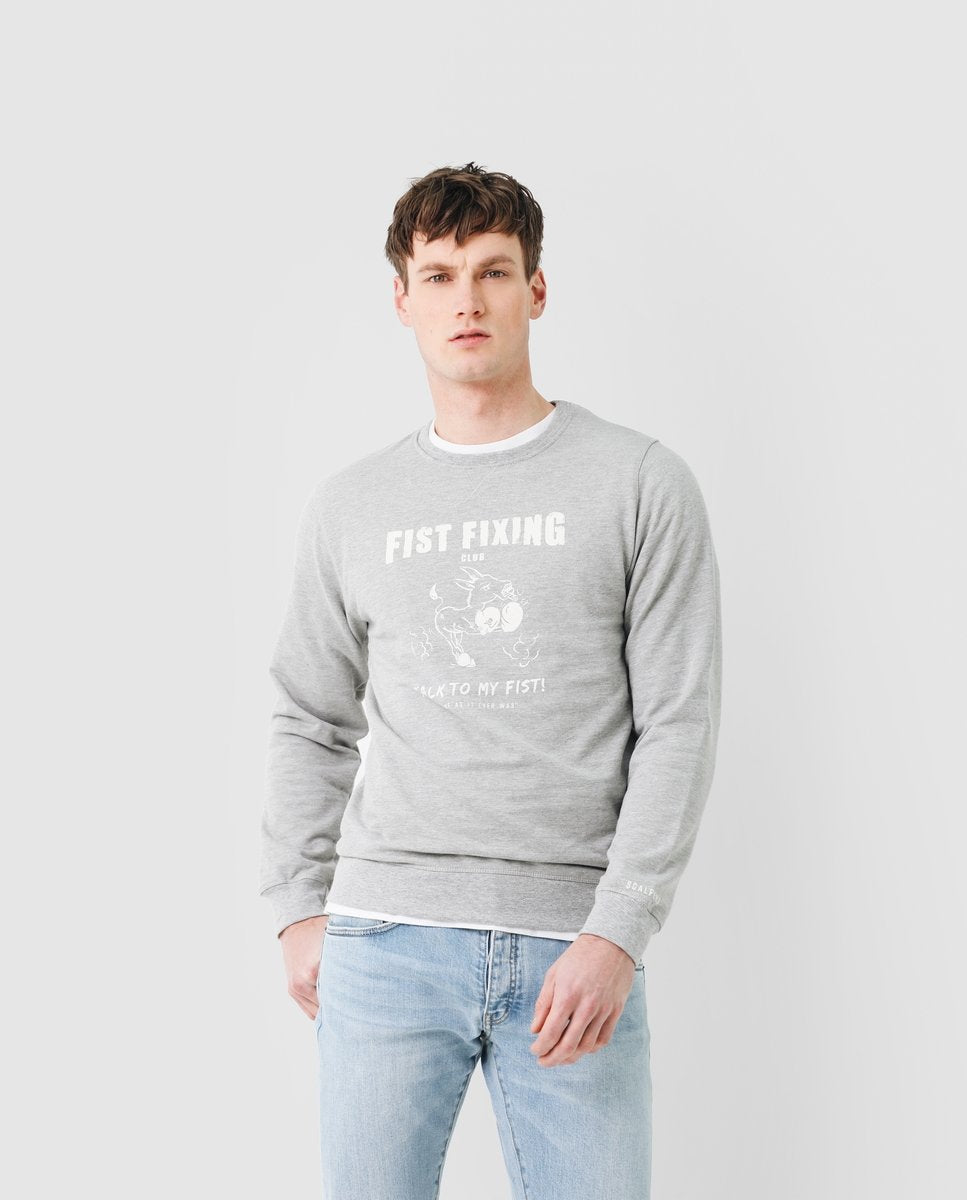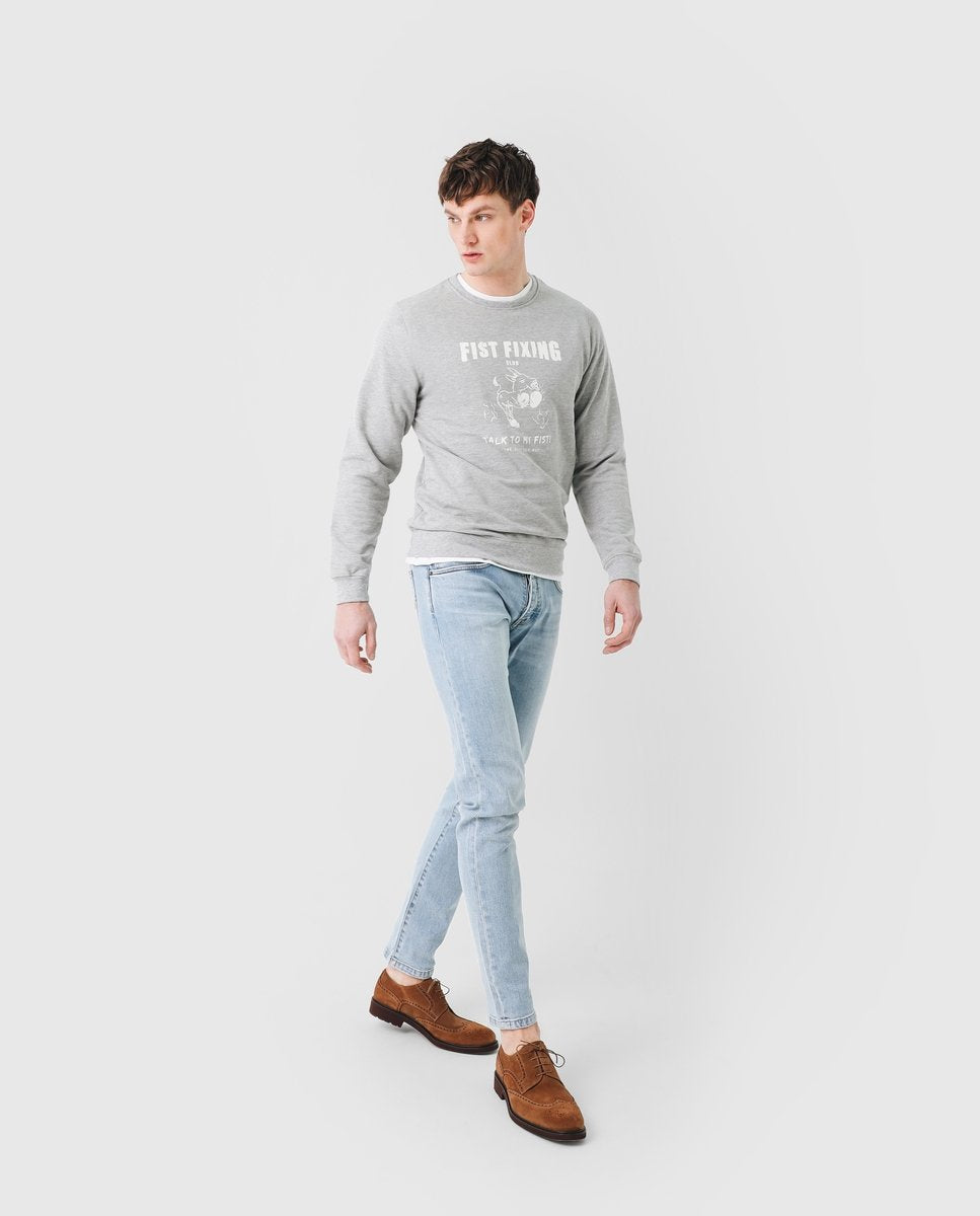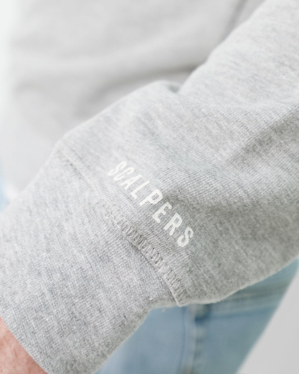 Sudadera con print frontal, confeccionada en tejido de algodón melange. Corte recto y cuello redondo. Manga larga y bajo terminados en ribs.