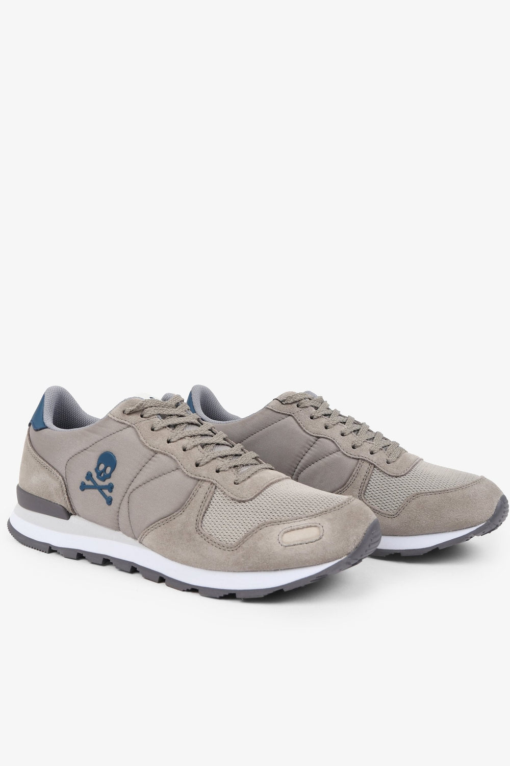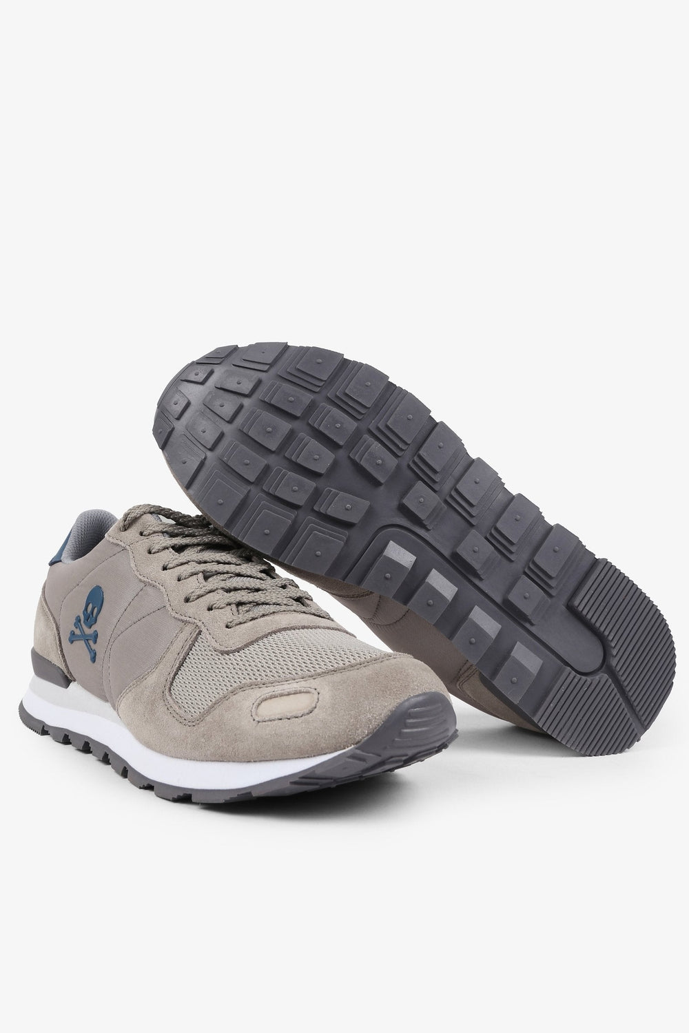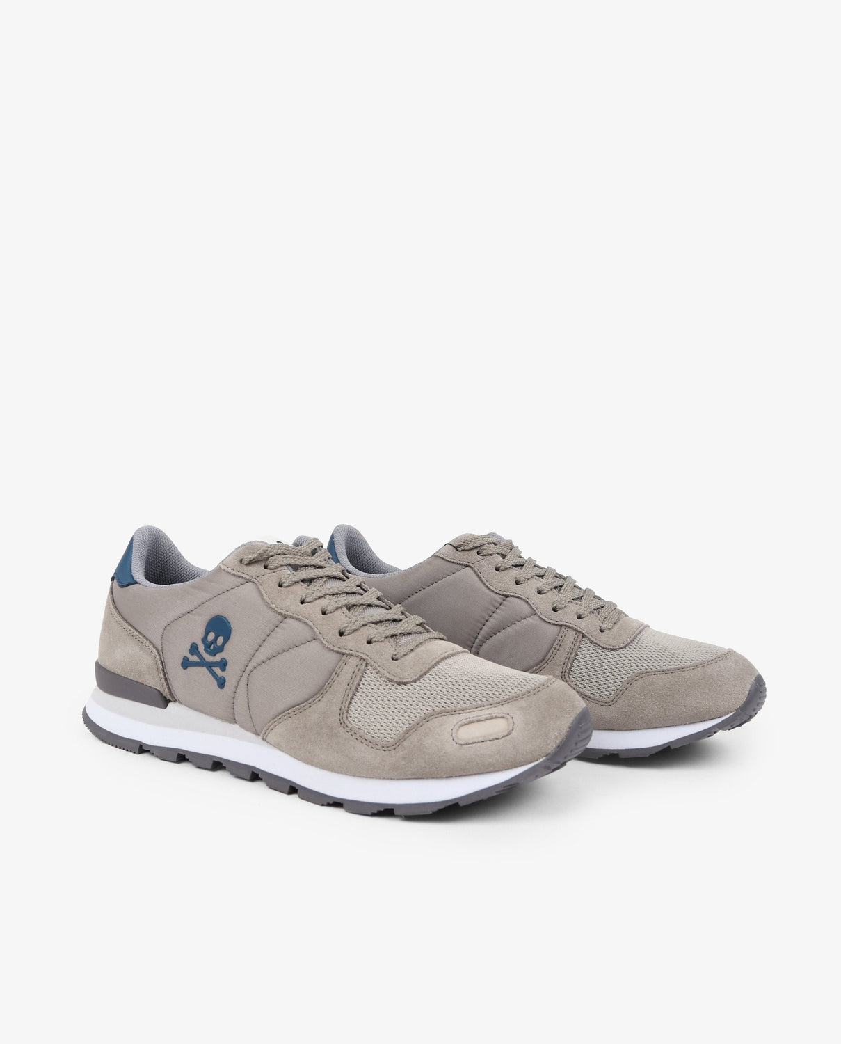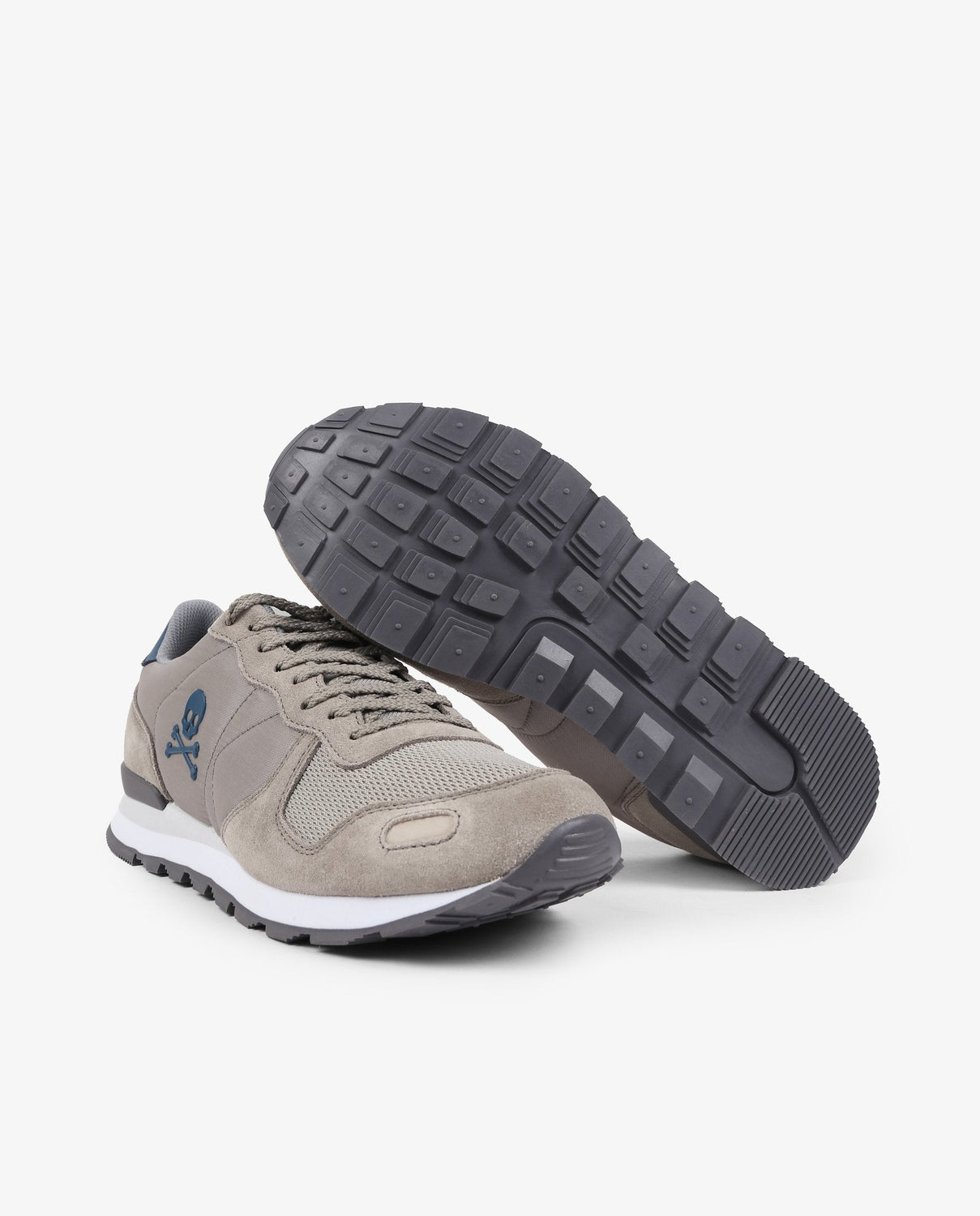 Zapatillas confeccionados en nailon y serraje. Cierre con cordones. Suela de goma y eva con estabilizador a contraste. Tejido transpirable de rejilla en pala, y calavera printeada en goma de alta densidad en el lateral.