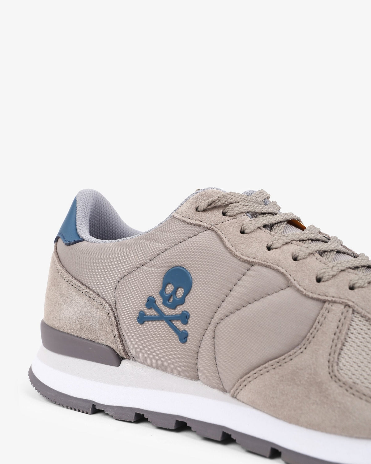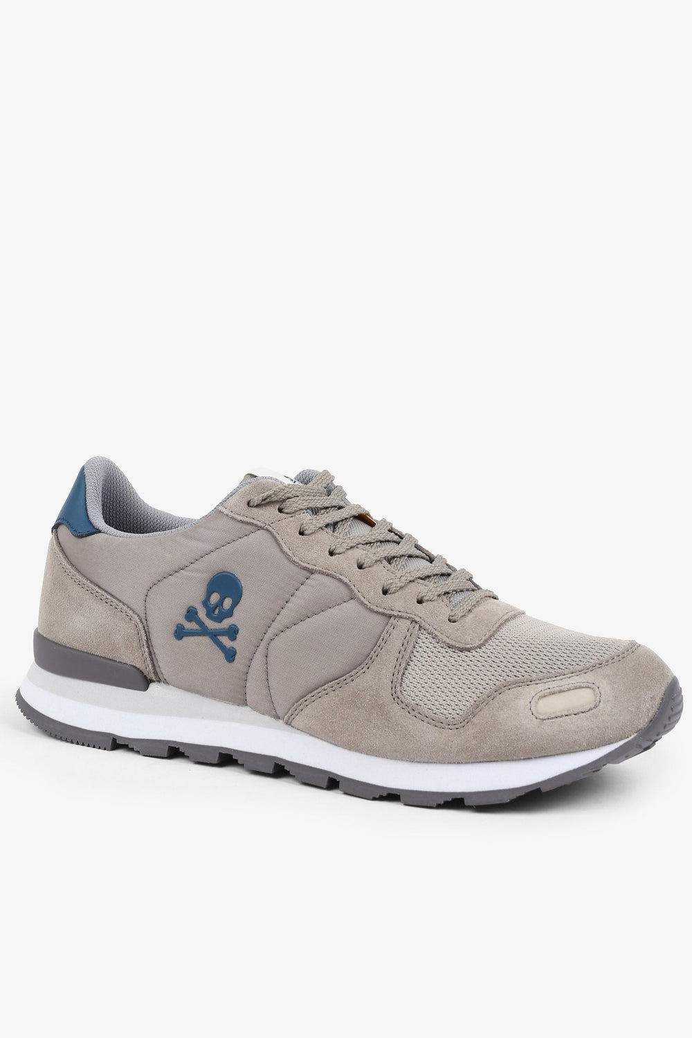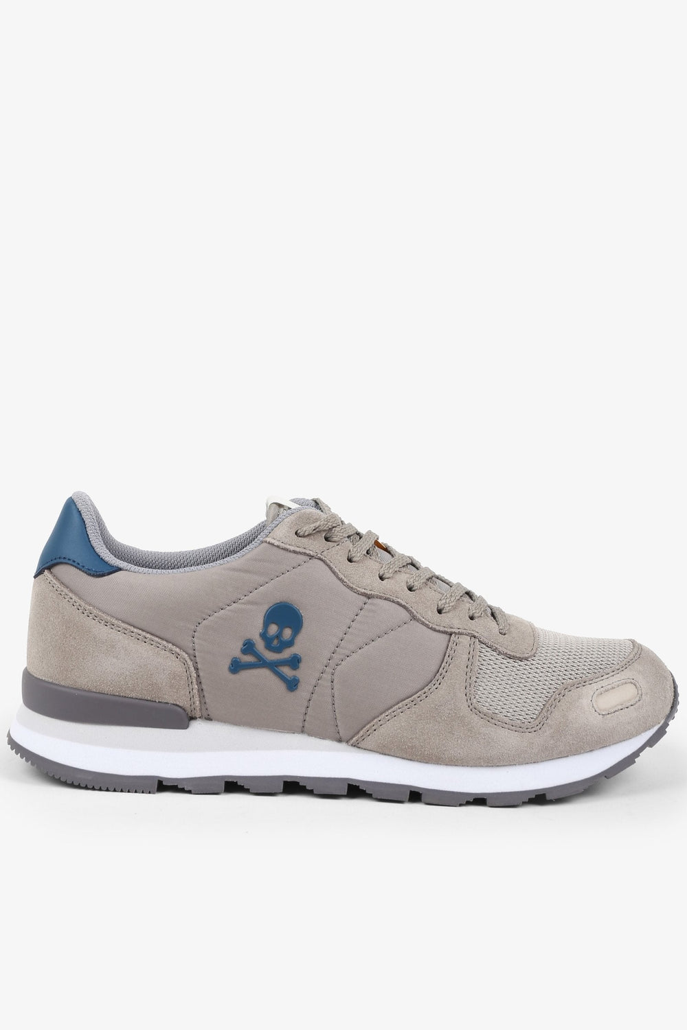 Zapatillas confeccionados en nailon y serraje. Cierre con cordones. Suela de goma y eva con estabilizador a contraste. Tejido transpirable de rejilla en pala, y calavera printeada en goma de alta densidad en el lateral.
