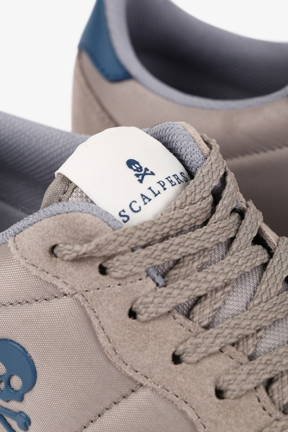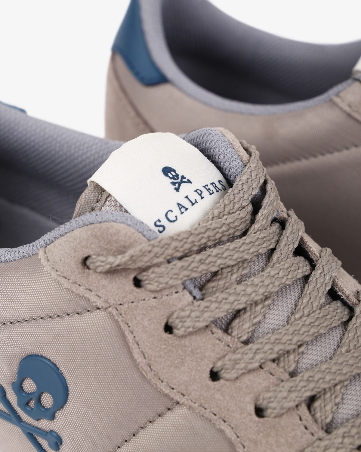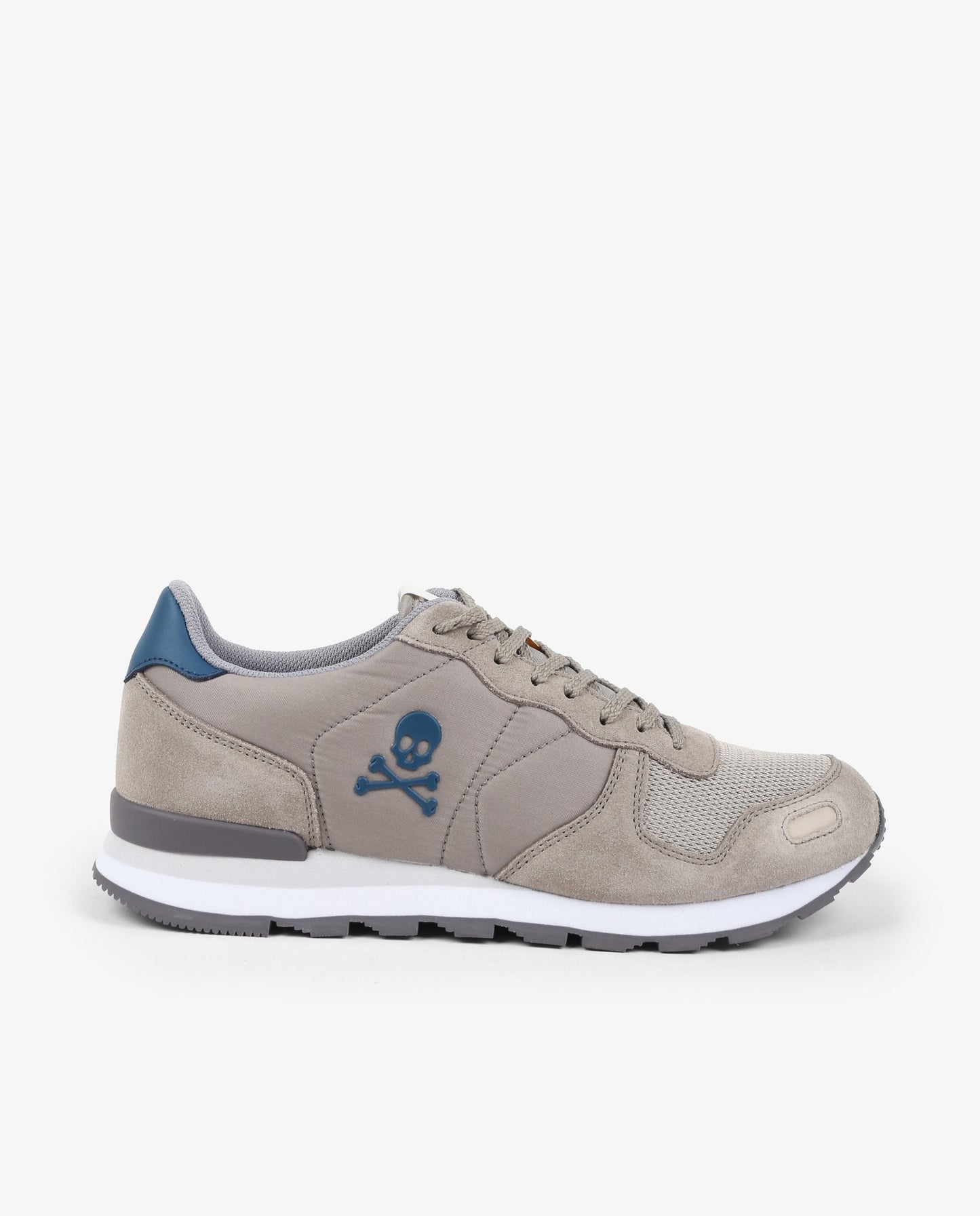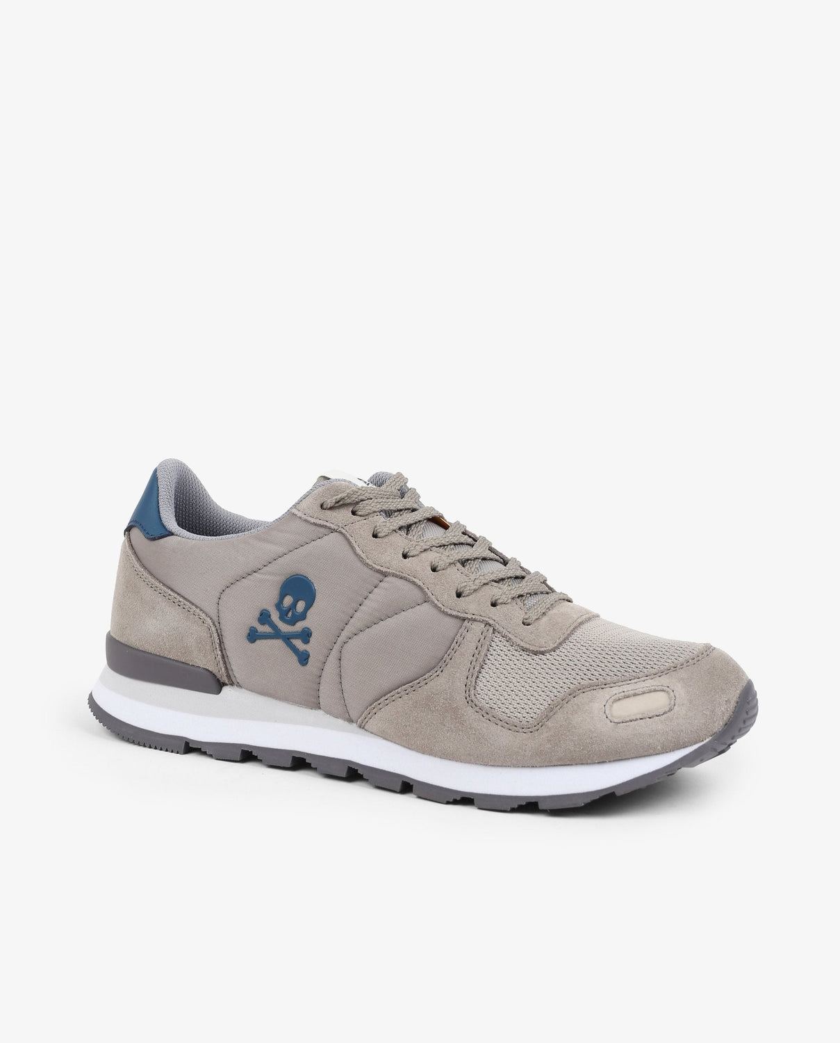 Zapatillas confeccionados en nailon y serraje. Cierre con cordones. Suela de goma y eva con estabilizador a contraste. Tejido transpirable de rejilla en pala, y calavera printeada en goma de alta densidad en el lateral.
