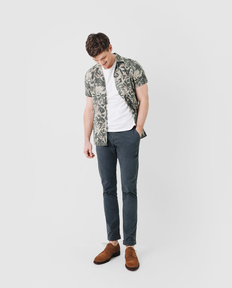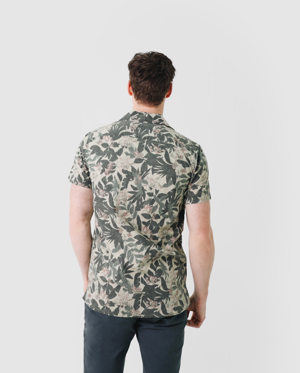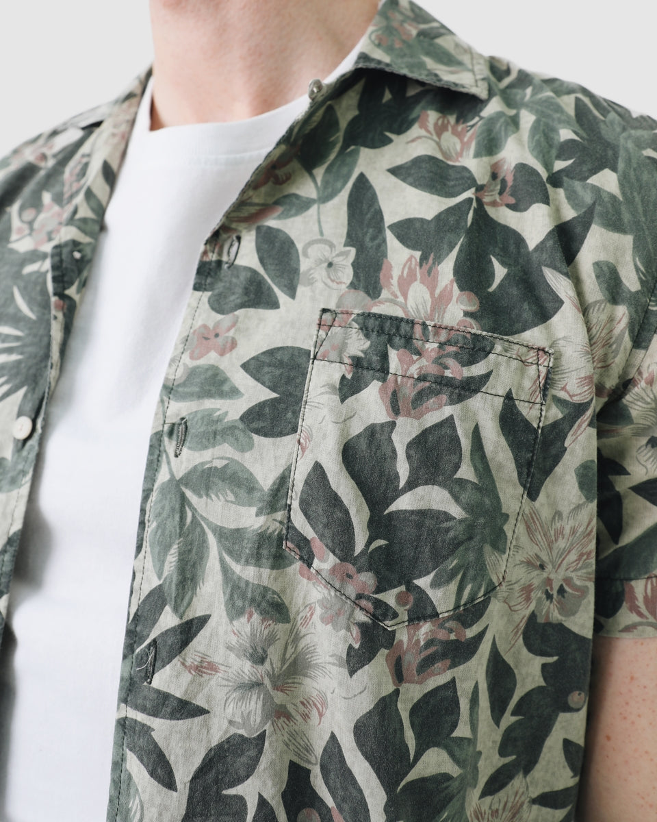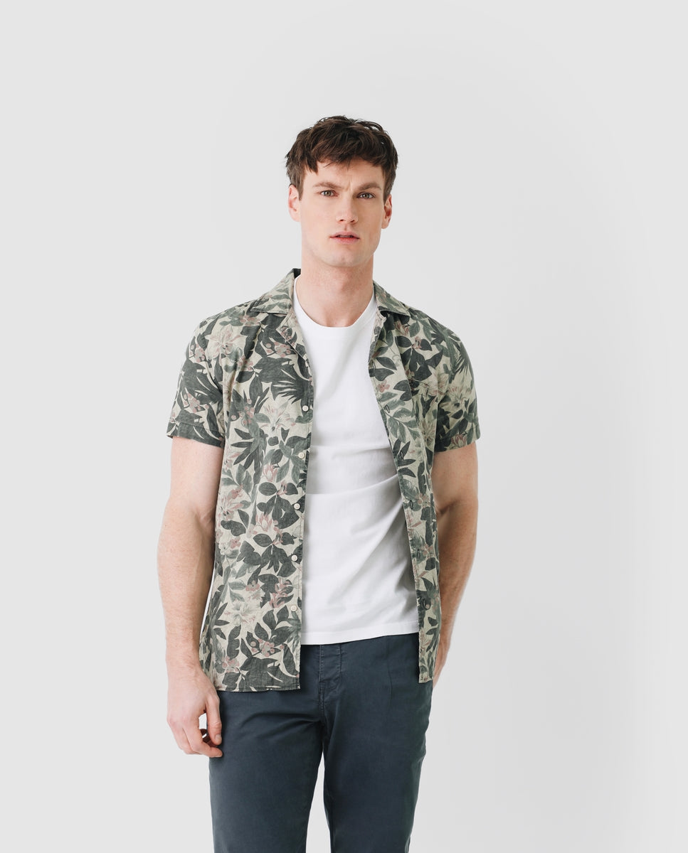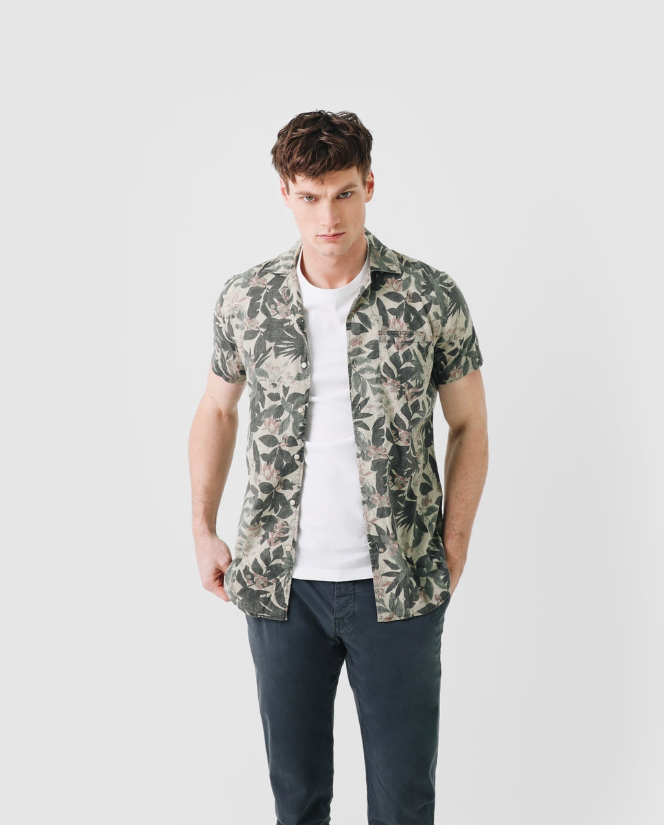 Camisa con estampado, confeccionada en algodón. Corte Regular Fit, cuello con solapa y cierre con botones sin tapeta. Bolsillo de plastrón y manga corta. Bajo recto con aberturas laterales.