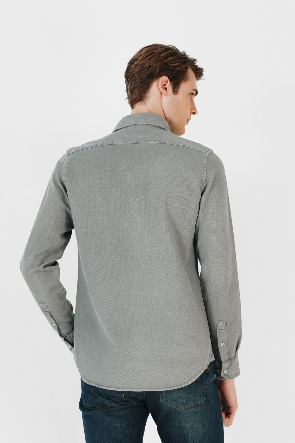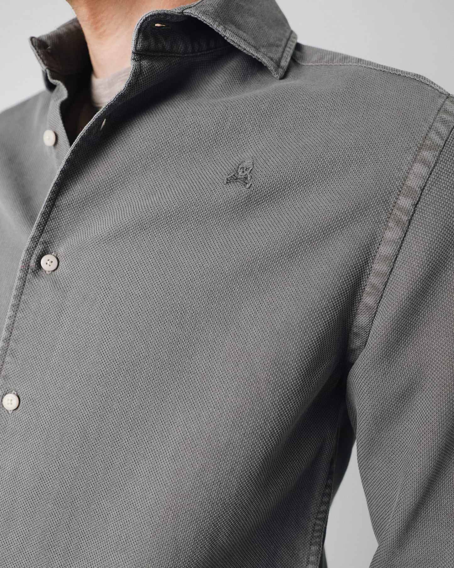 Camisa confeccionada en tejido 100% algodón. Corte Regular Fit, cuello Sport Elisée con ballenas y cierre con botones. Manga larga terminada en puño simple. Detalle de calavera bordada en el pecho.