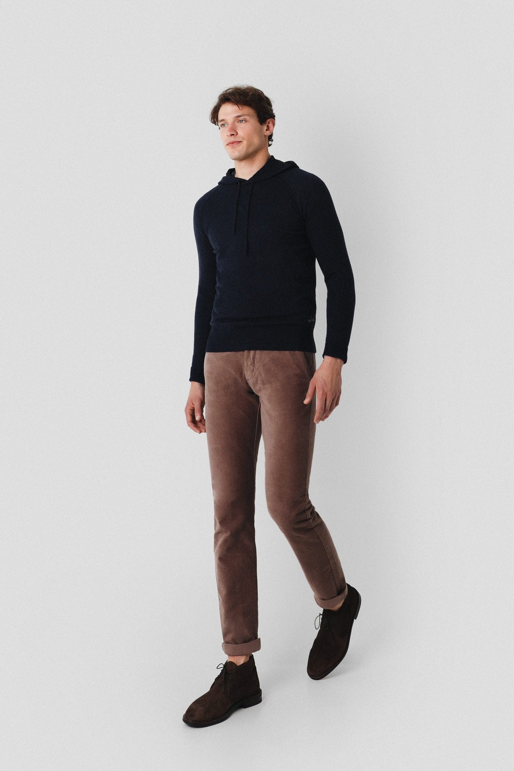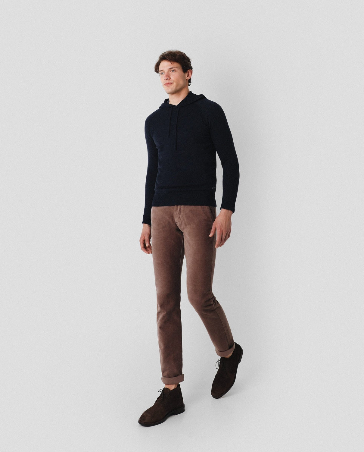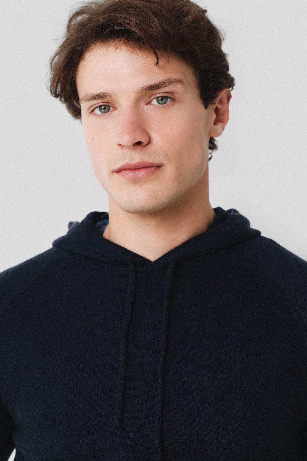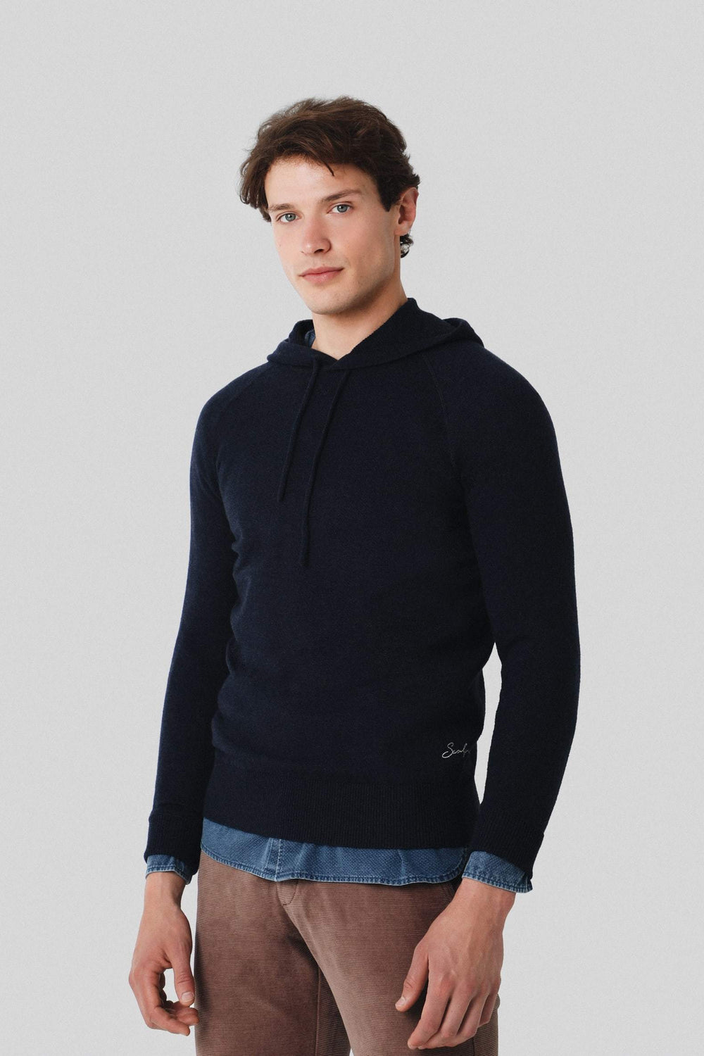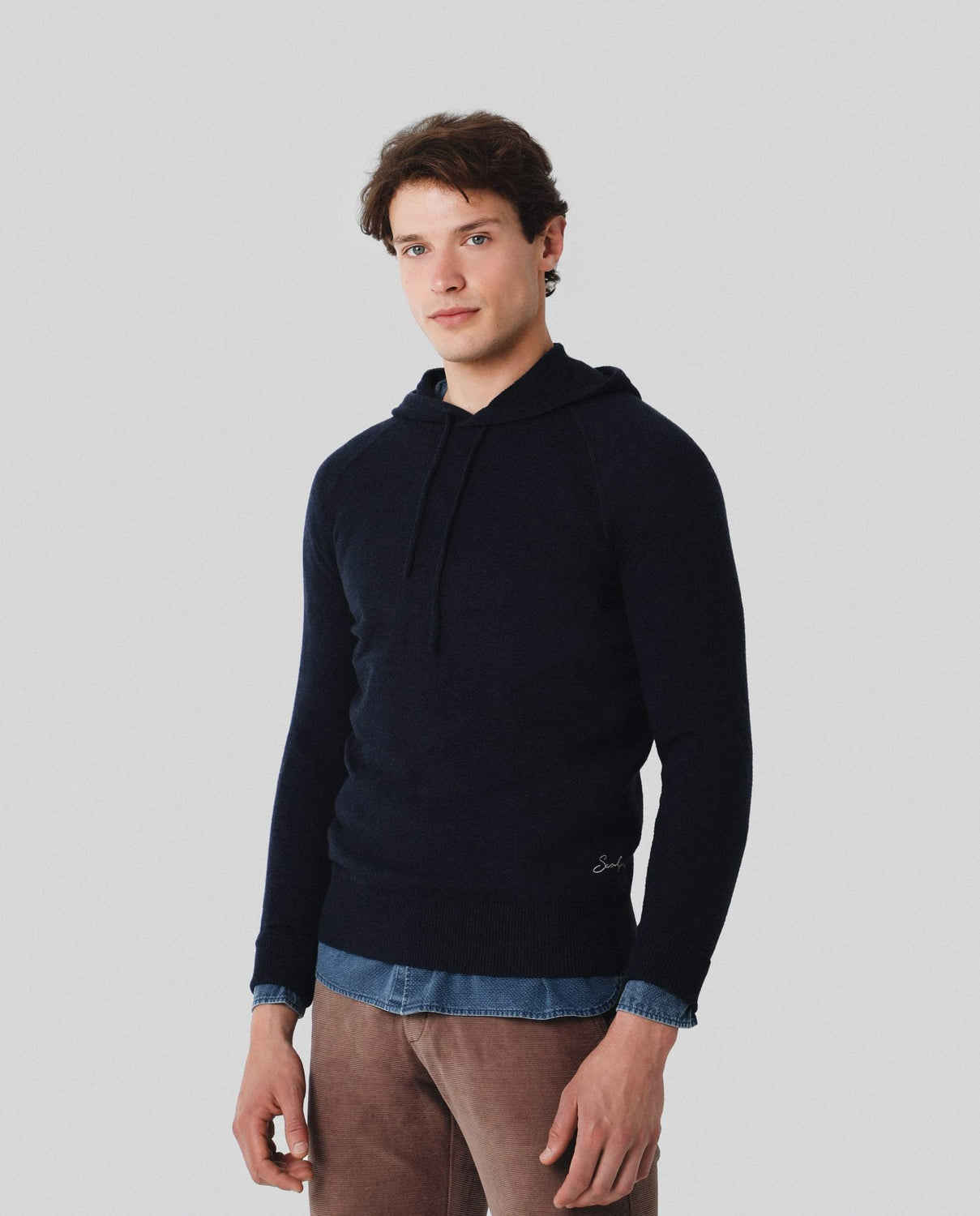 Jersey confeccionado en lana. Corte Regular Fit, cuello con capucha con cordones y manga larga.