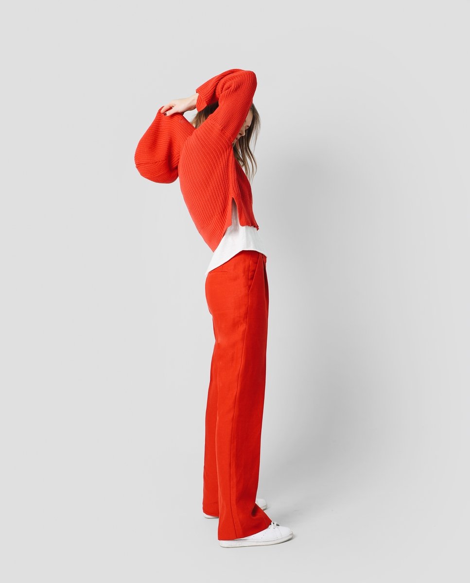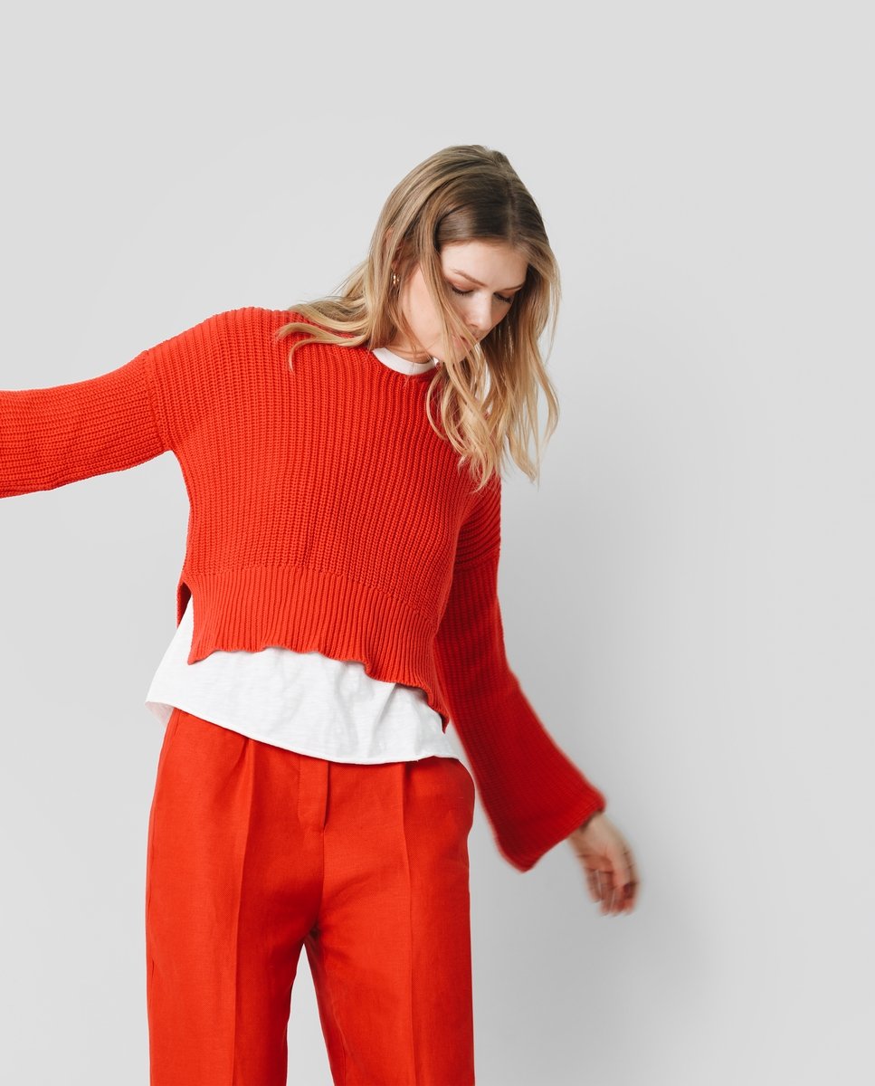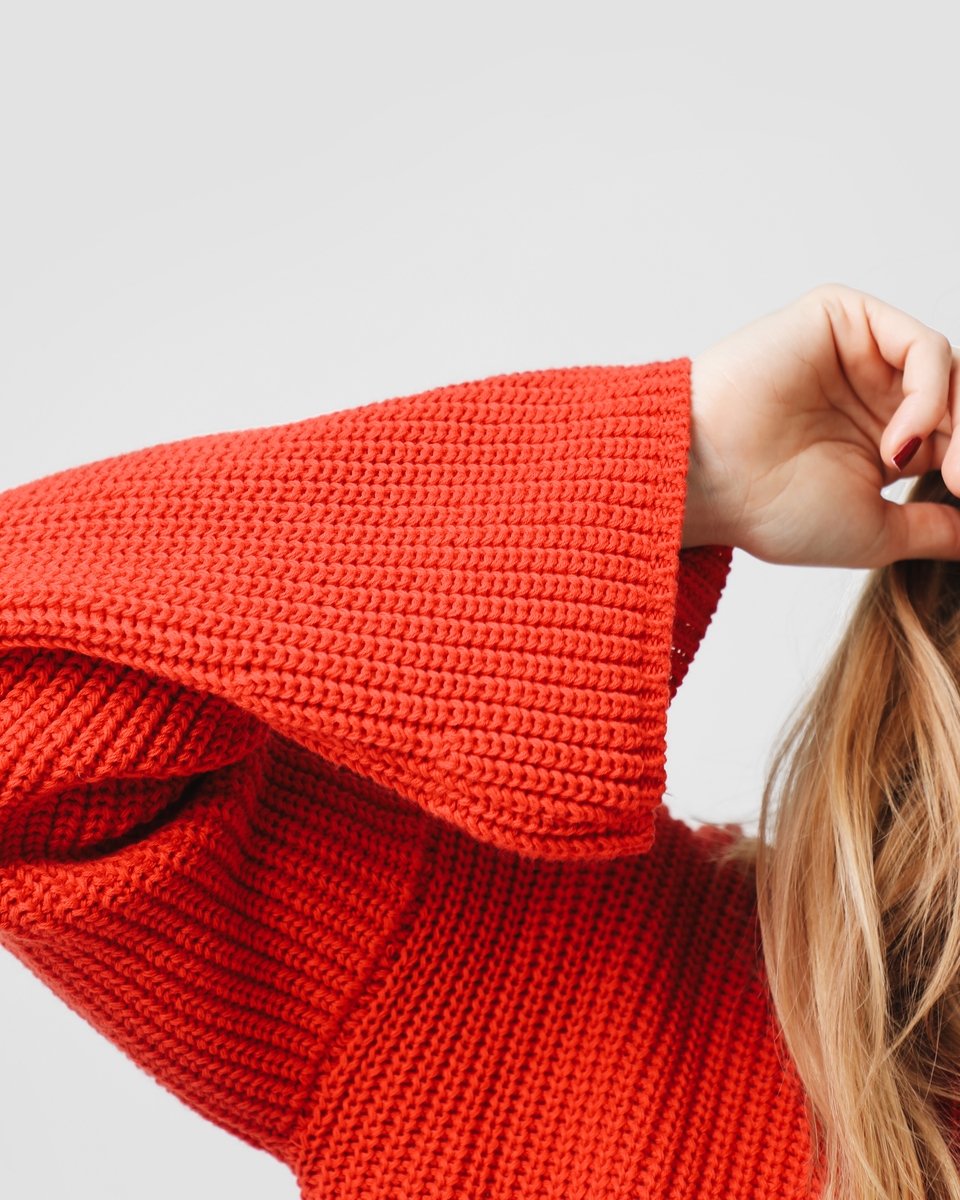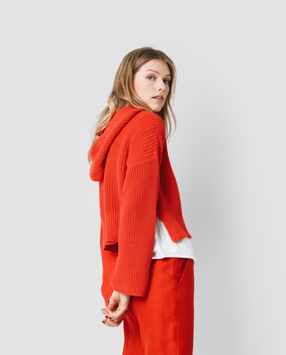 Jersey confeccionado en punto. Corte cropped, cuello de pico con capucha y manga larga. Bajo con terminado acanalado y dos aberturas laterales.