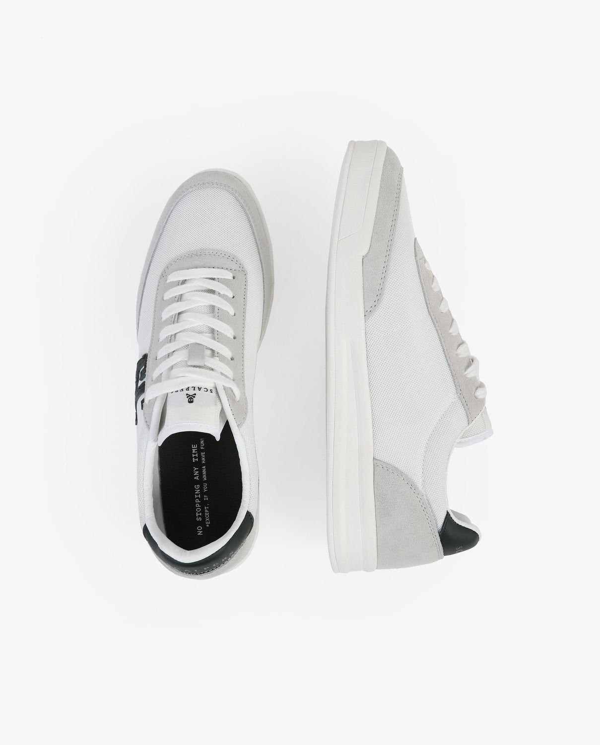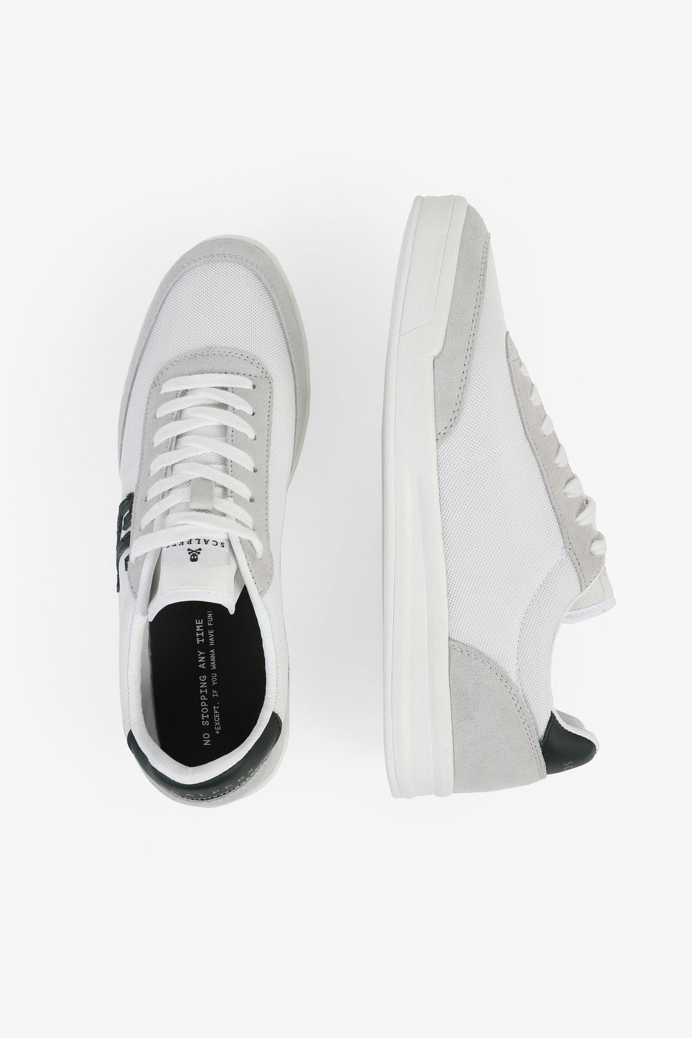Zapatillas combinadas confeccionadas en serraje y tejido de rejilla. Cierre con cordones. Suela de goma, aplicación “SC” en lateral a contraste y detalle de Scalpers en el talón.