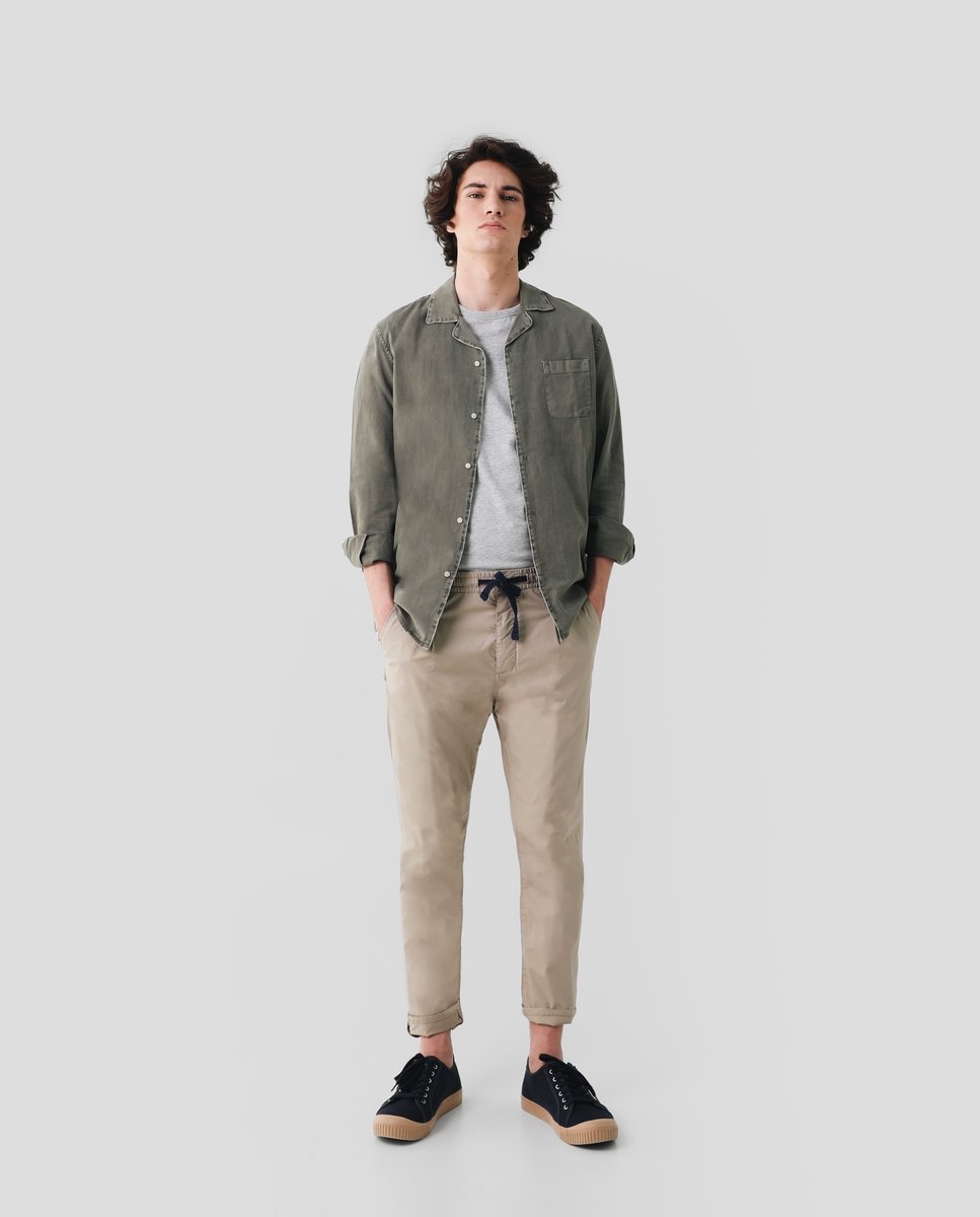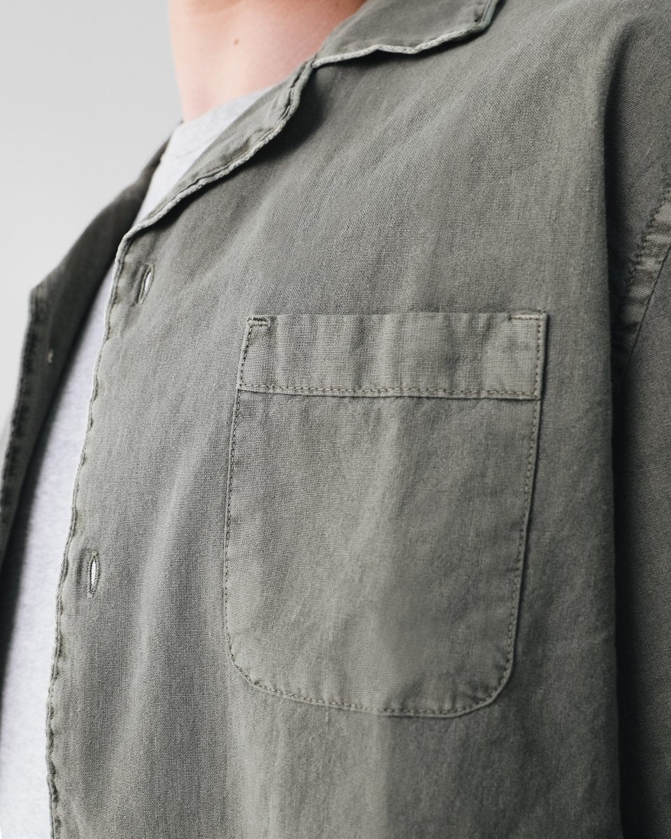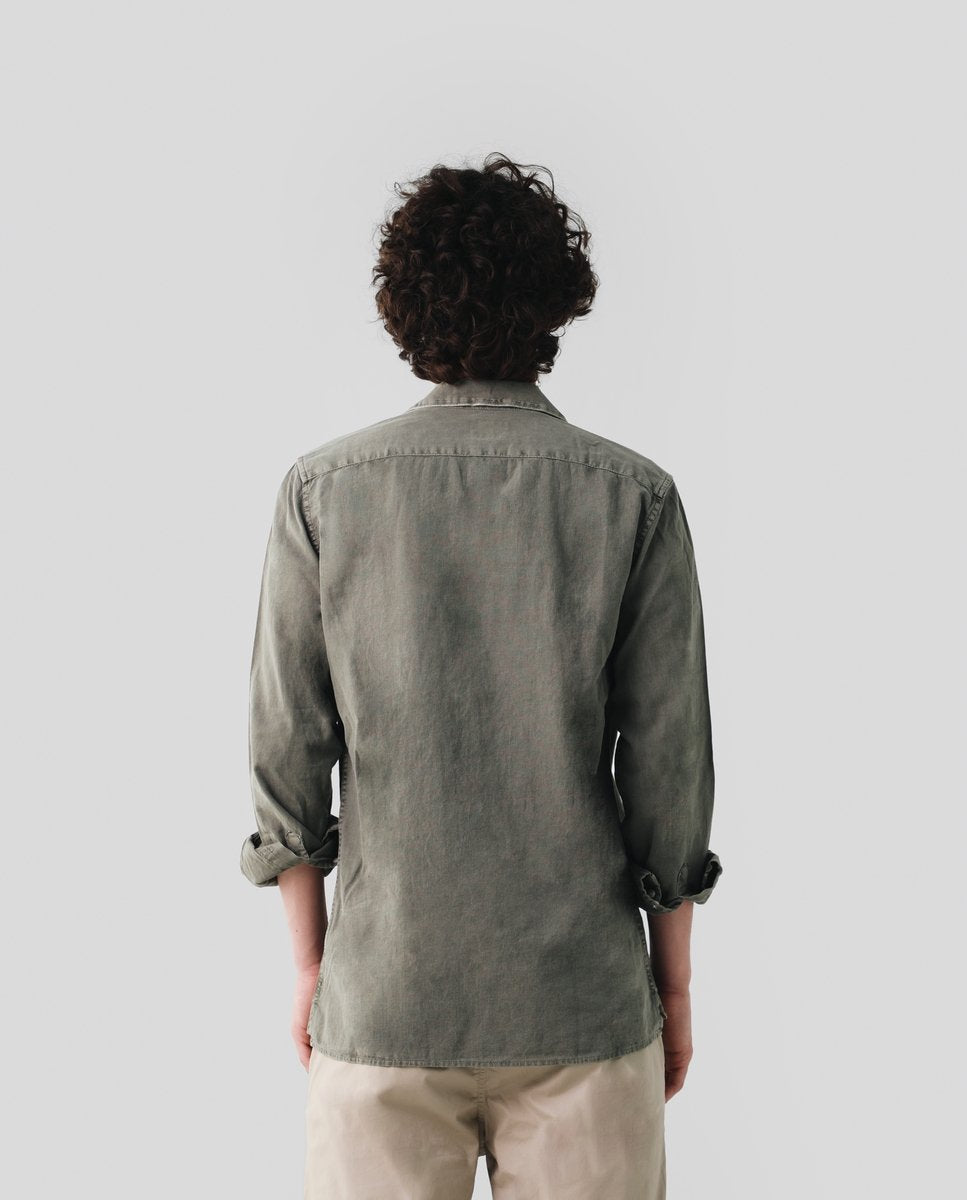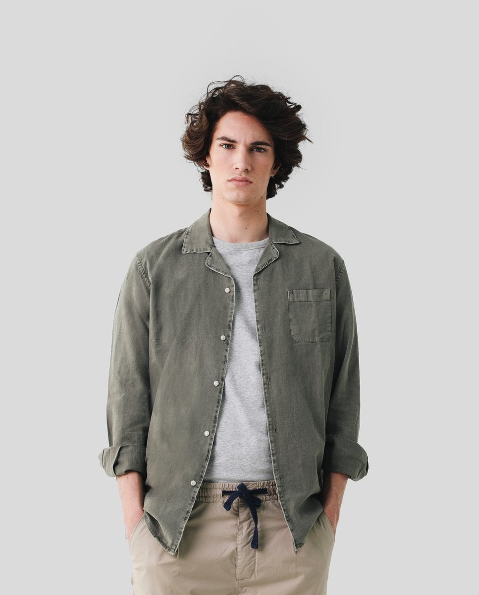 Camisa garment dyed confeccionada en mezcla de algodón y lino. Corte Regular Fit, cuello con solapa y cierre con botones sin tapeta. Bolsillo de plastrón a la altura del pecho y manga larga terminada en puño. El bajo es recto con aberturas laterales y tiene como detalle el vivo decorativo. Disponible en tres colores.