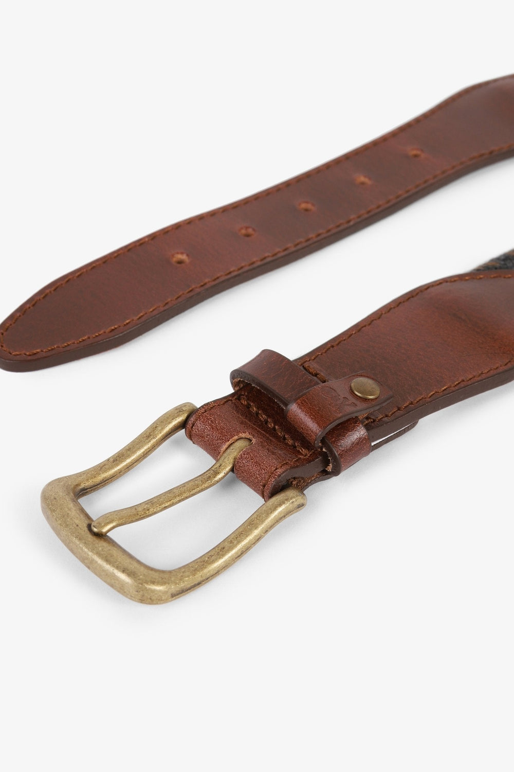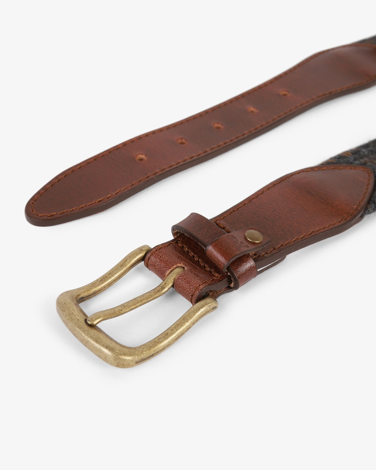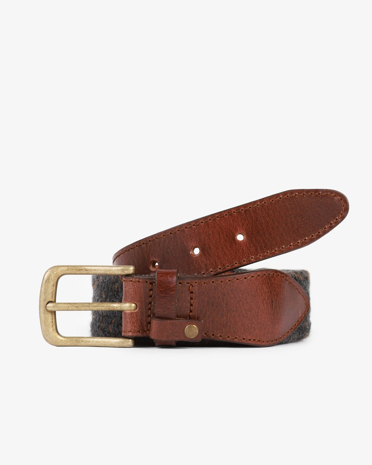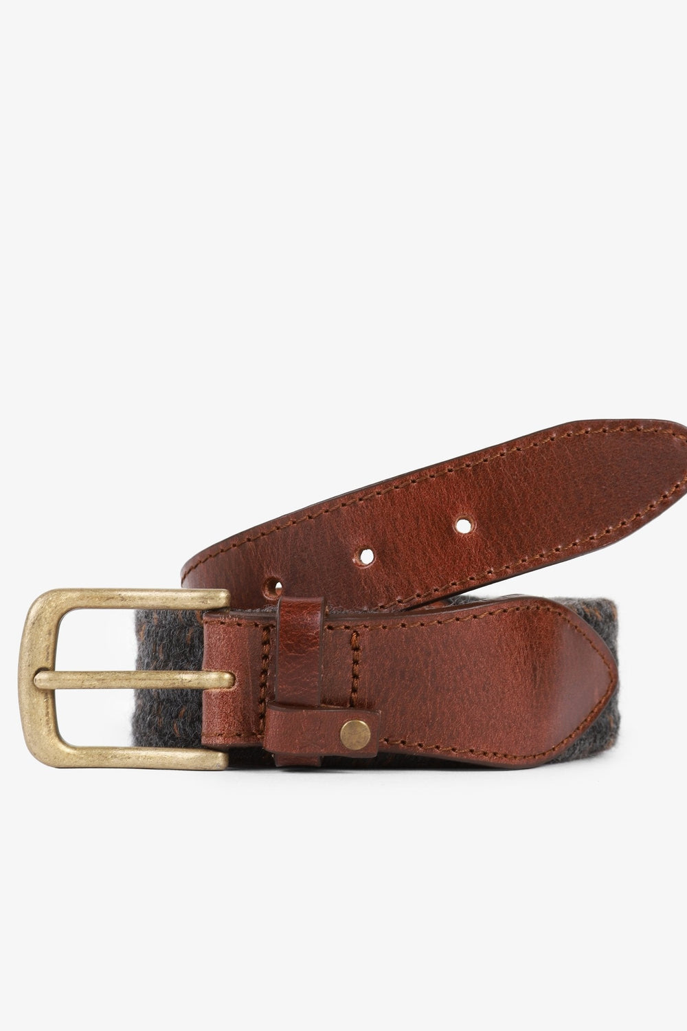 Cinturón confeccionado en tejido melange. Cierre con hebilla metálico, elástico y detalle de terminaciones en piel. Pase de 30 mm. Fabricado en España.