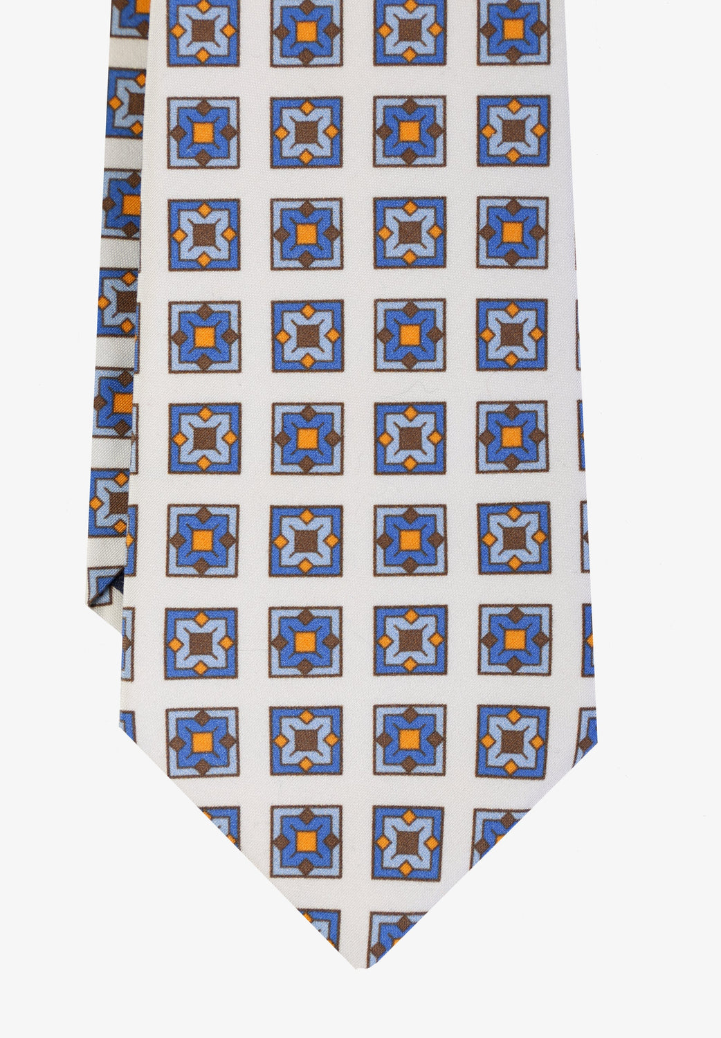 Corbata confeccionada en tejido 100% seda. Presenta estampado geométrico. Disponible en dos colores.