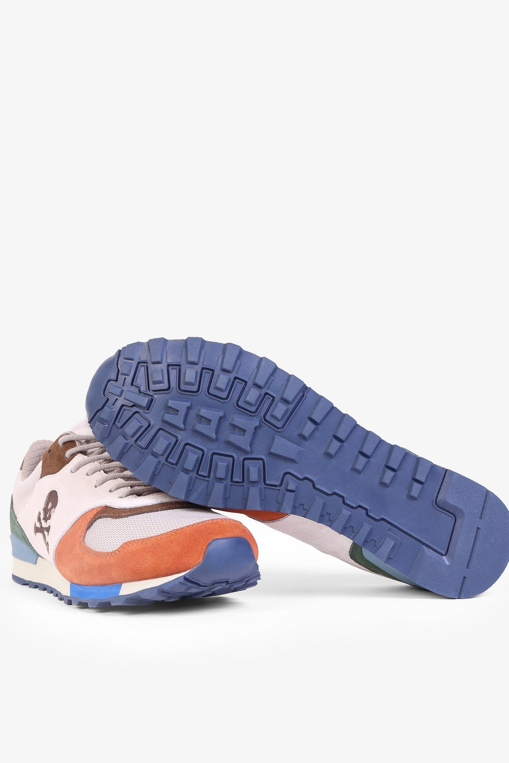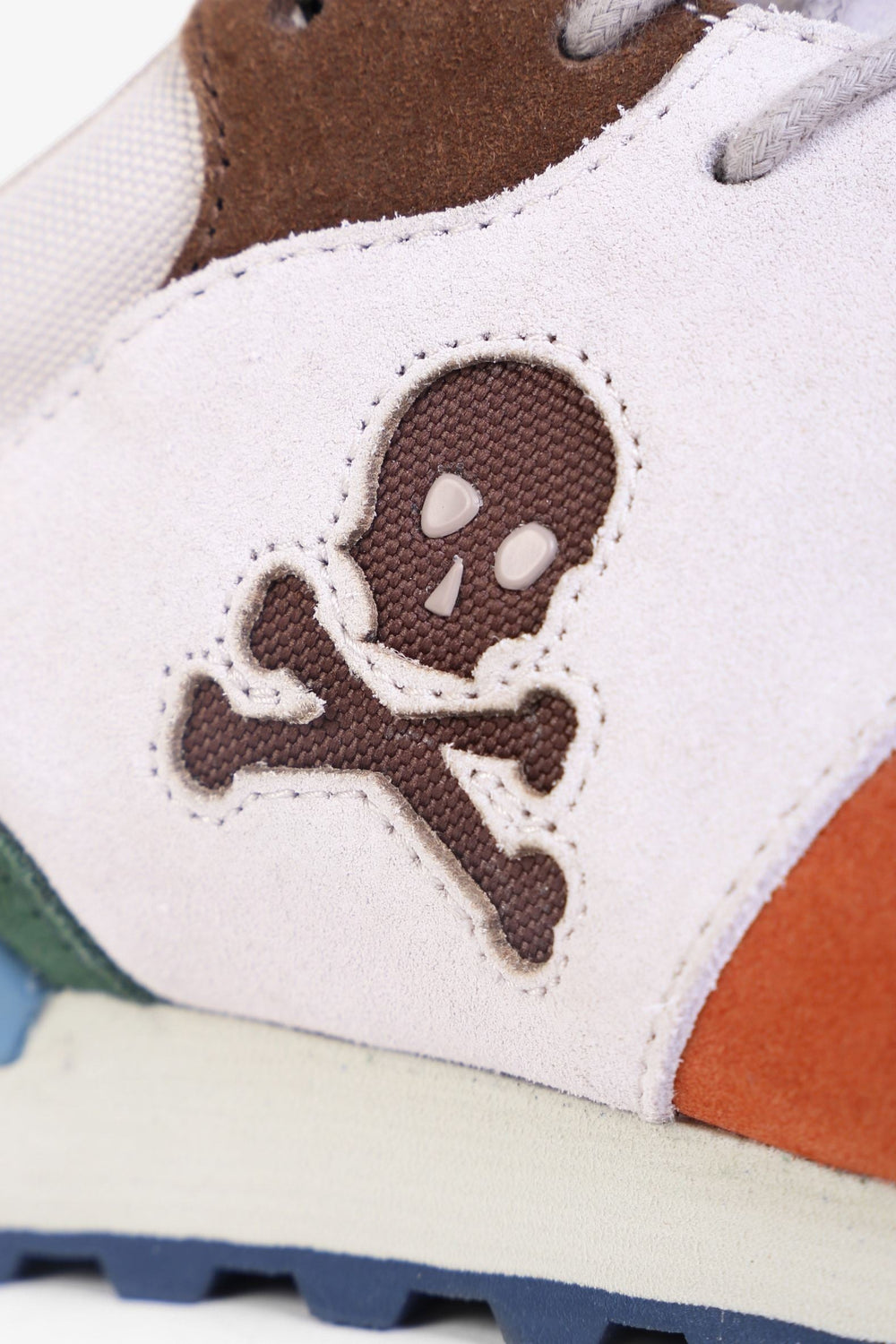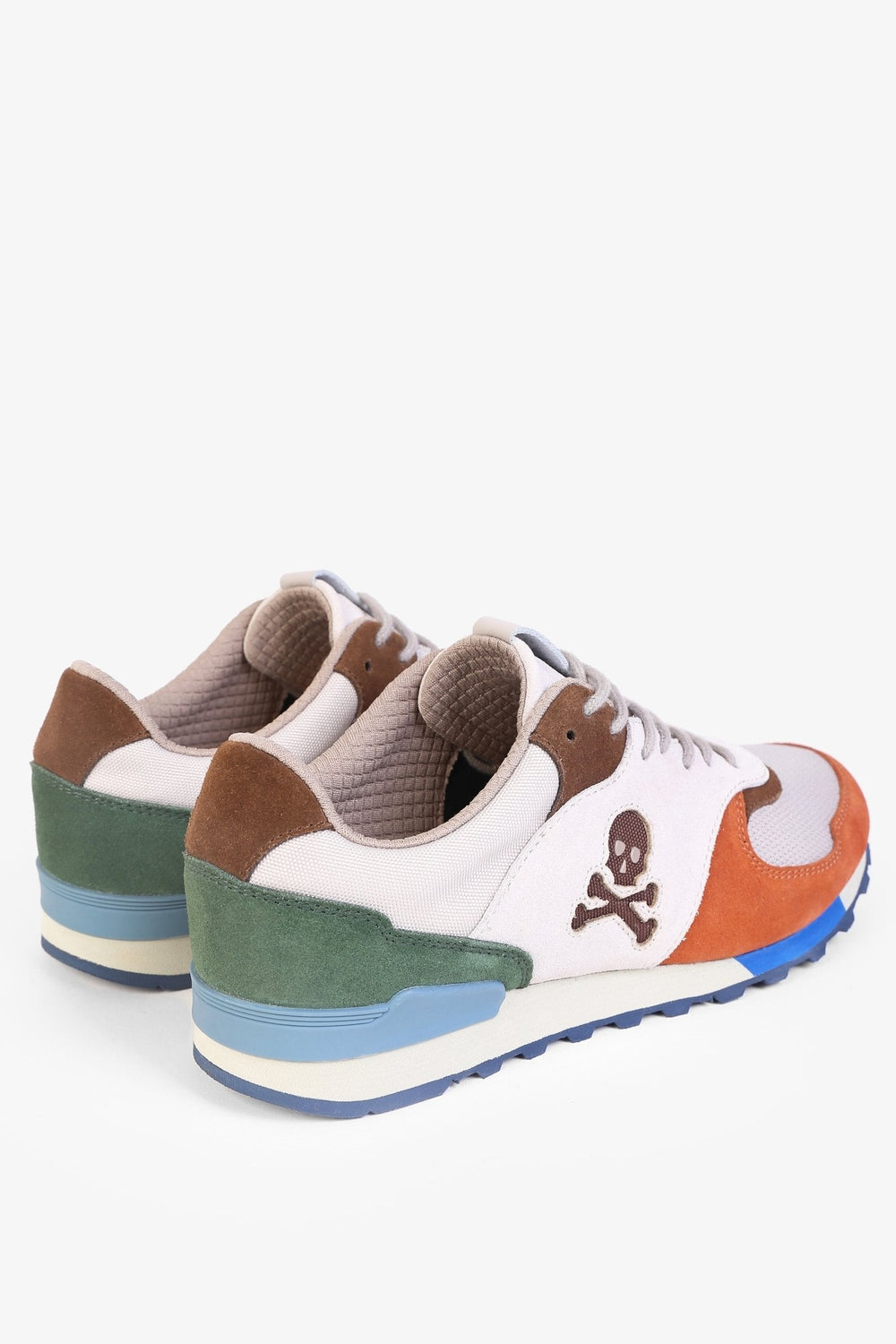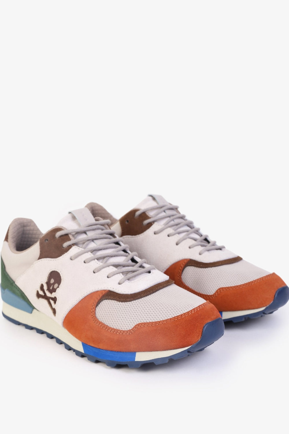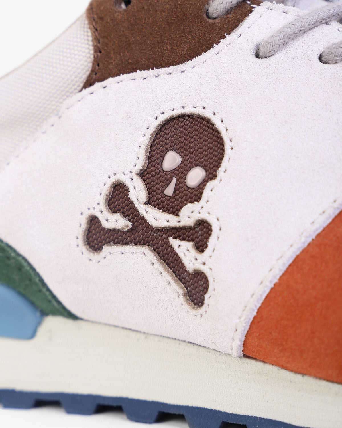 Zapatillas combinadas confeccionadas en serraje y piel. Cierre con cordones a tono. Suela de goma y estabilizador a contraste. Detalle de calavera en el lateral.