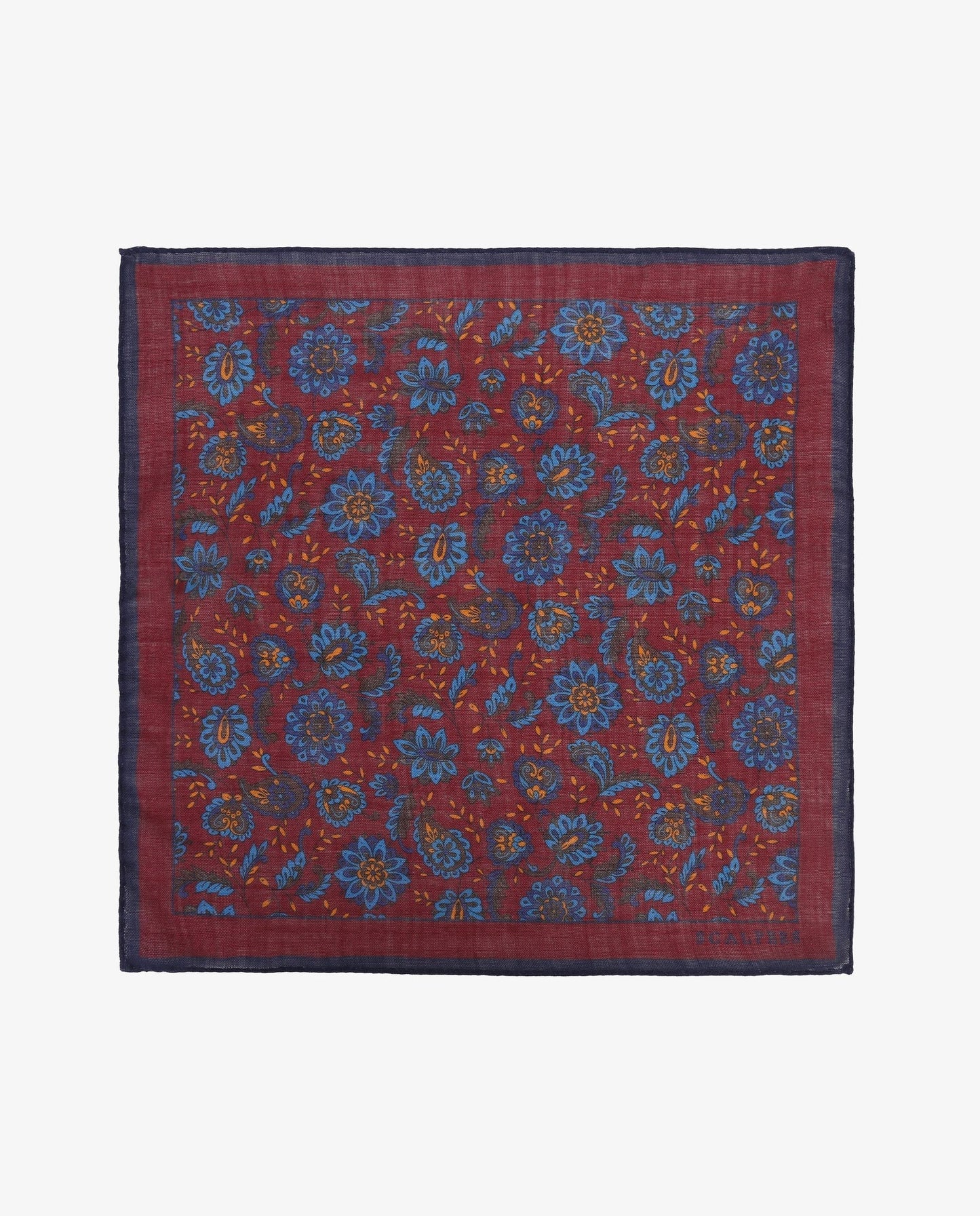 Pañuelo con motivo floreado confeccionado en tejido mezcla de lana y seda.
