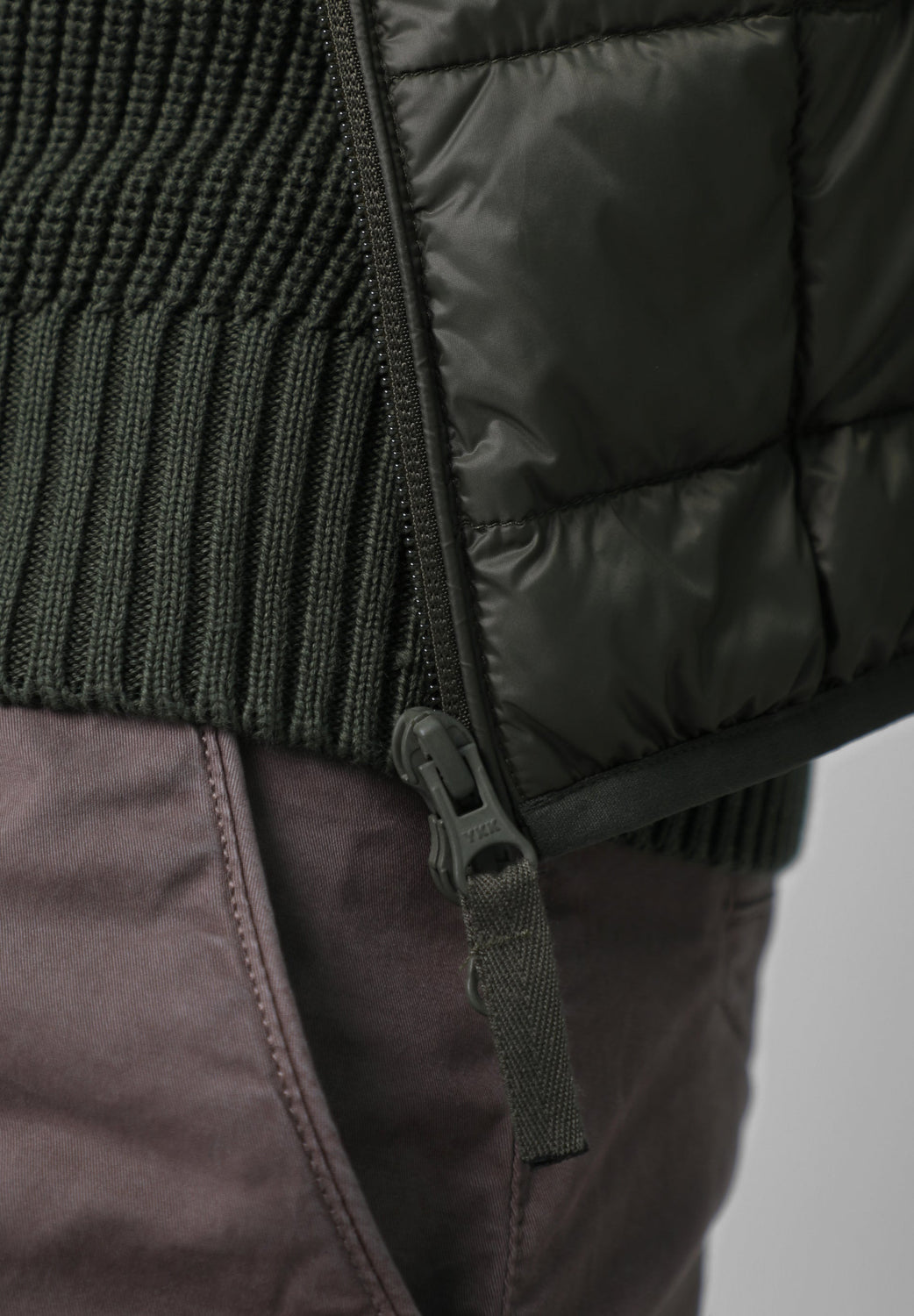 Parka rellena de plumas confeccionada en tejido water repellent suave al tacto. Cuello alzado y cierre con cremallera de doble carro. Tiene dos bolsillos laterales cerrados con cremallera. Sin mangas y con parche de goma en el pecho. Disponible en cuatro colores.