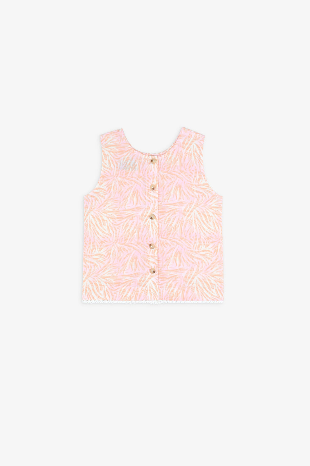Top con print de hojas.