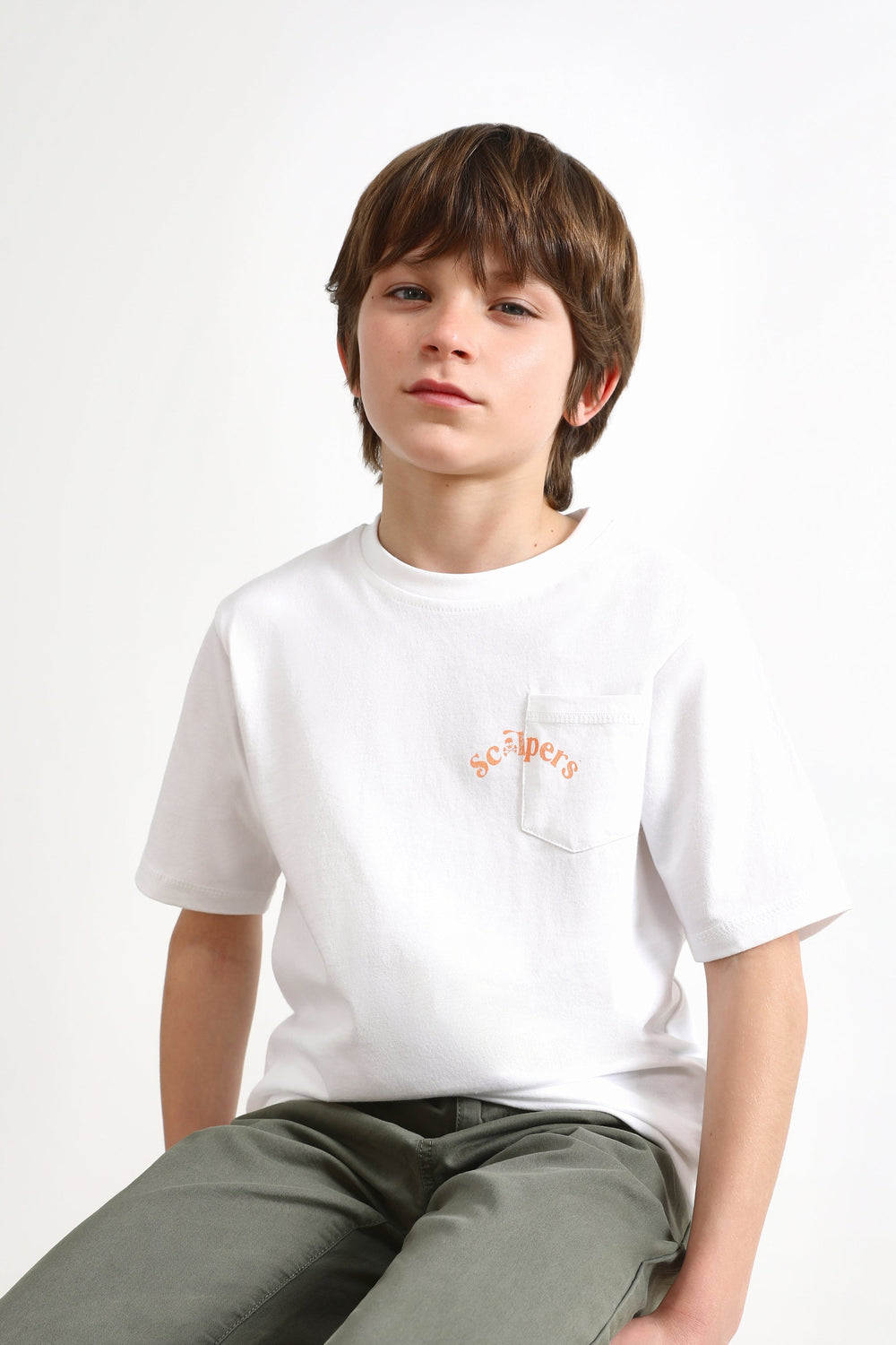 Camiseta con dibujo trasero y bolsillo delantero.