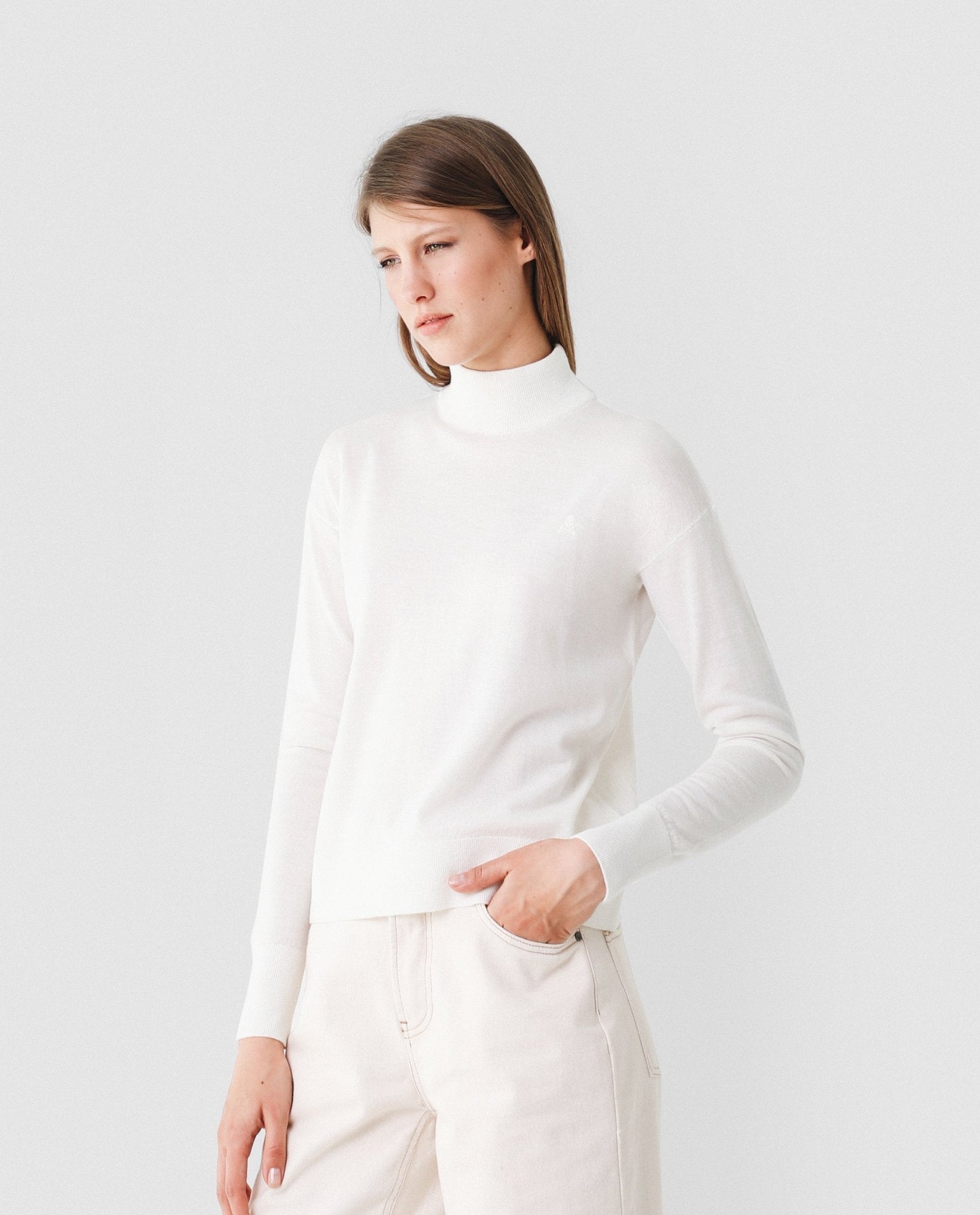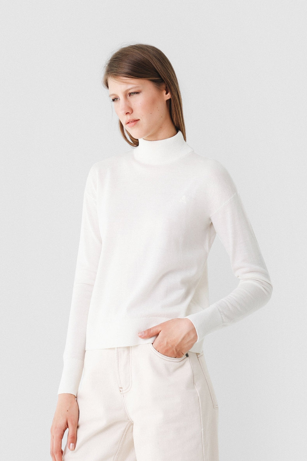 Jersey confeccionado en tejido 100% lana. Corte Slim Fit, cuello perkins y manga larga. Detalle de calavera bordada al tono.