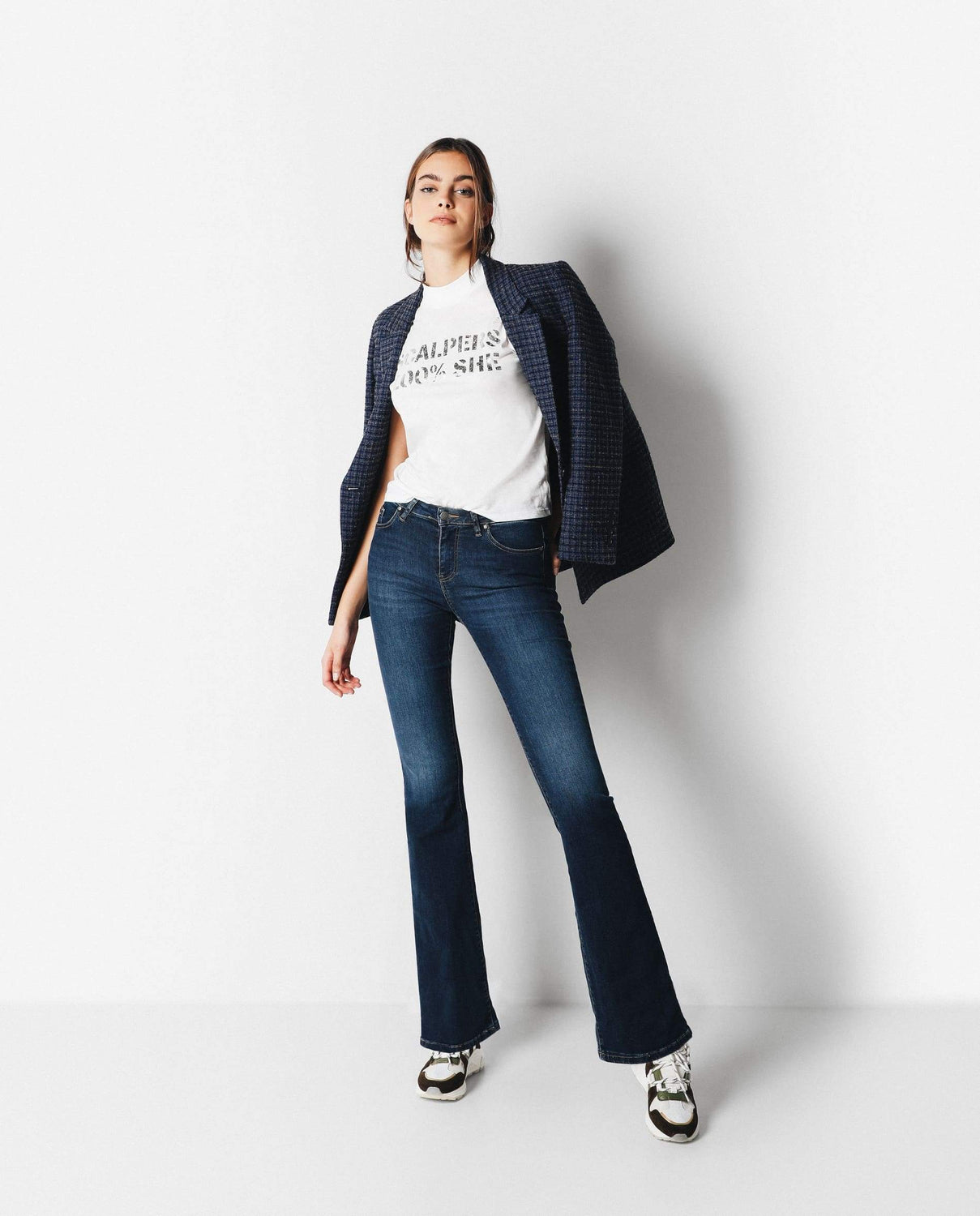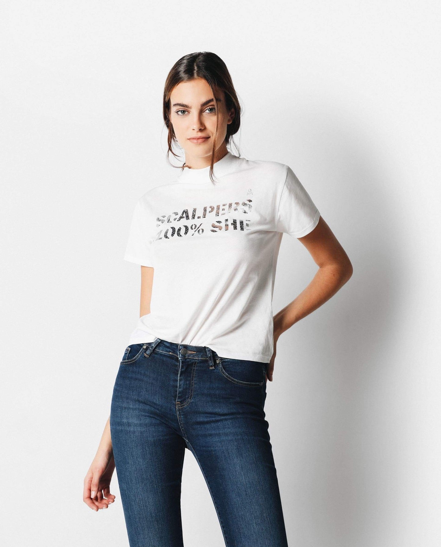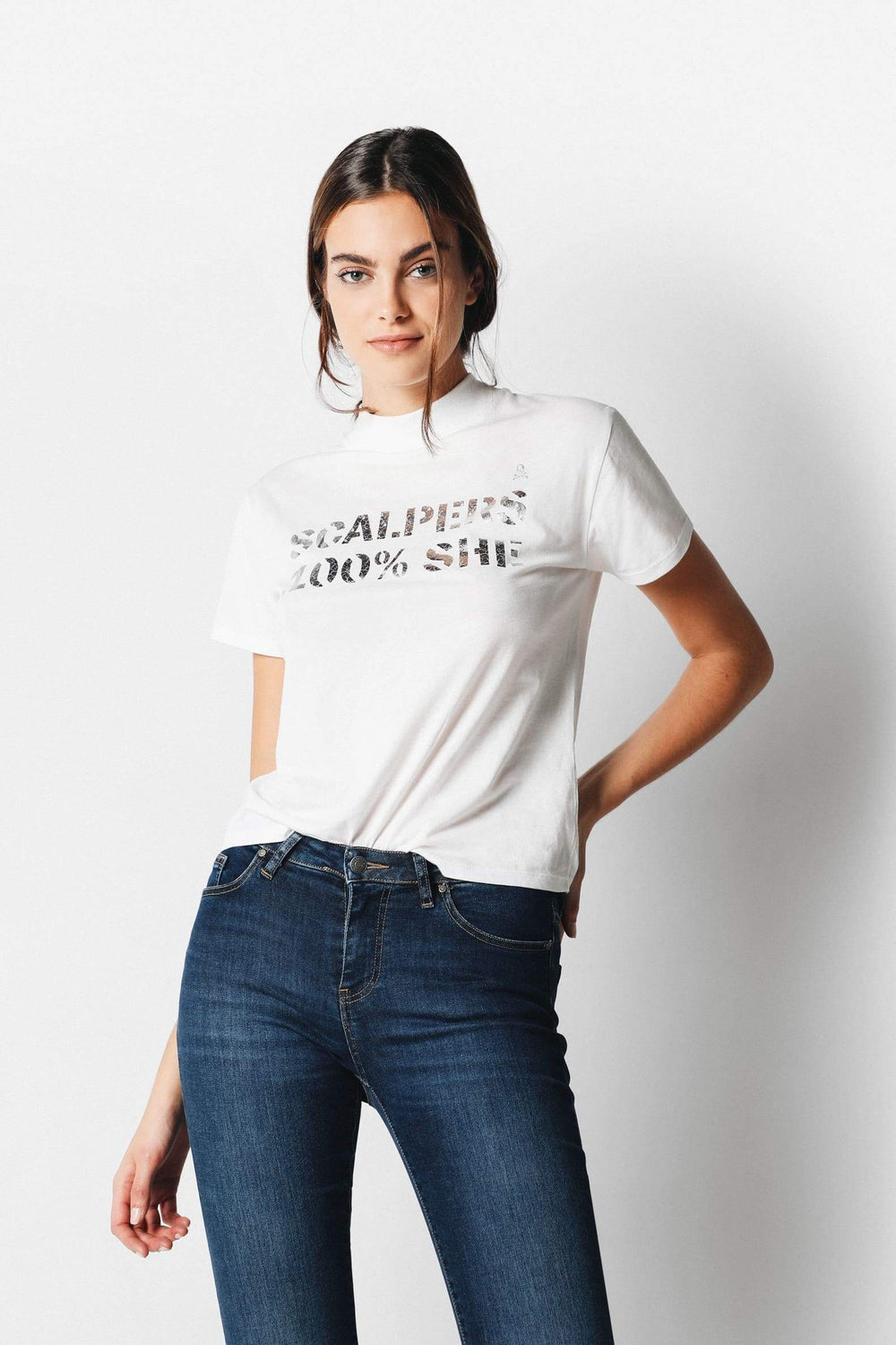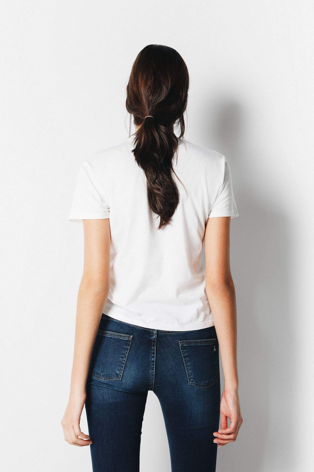 Camiseta confeccionada en tejido de algodón. Corte Slim Fit, cuello perkins y manga corta. Detalle de print frontal.