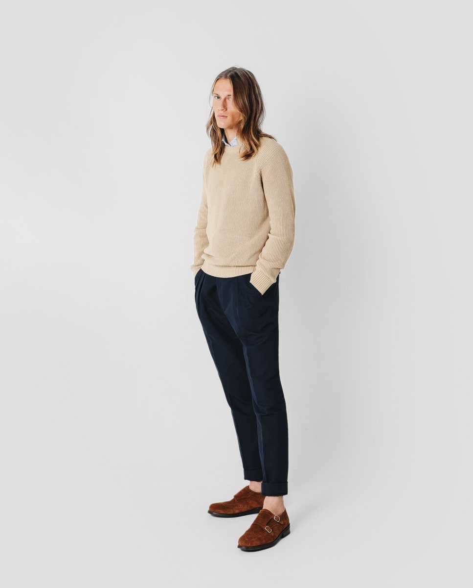 Jersey confeccionado en punto de canalé. Corte recto, cuello redondo y manga ranglán larga. Puño y bajo con acabado acanalado. Presenta como detalle la etiqueta de la marca en el lateral. Disponible en tres colores.