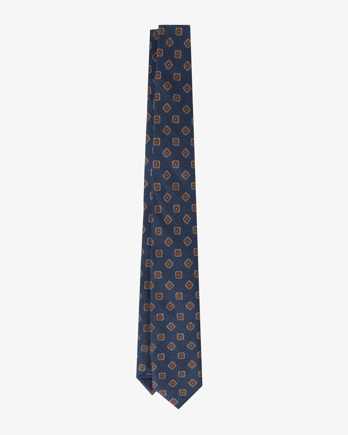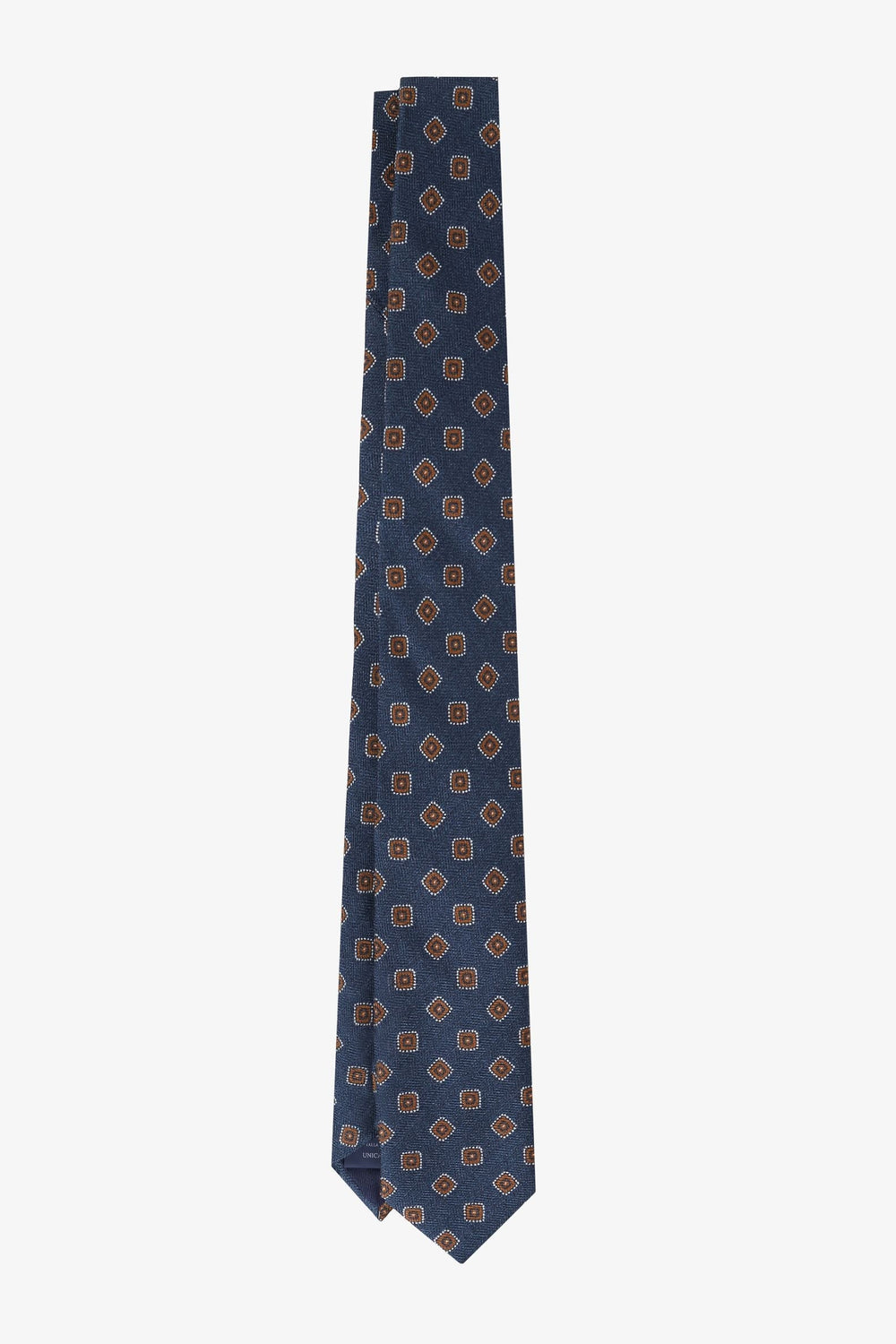 Corbata con motivo geométrico confeccionada en tejido de lana y seda.