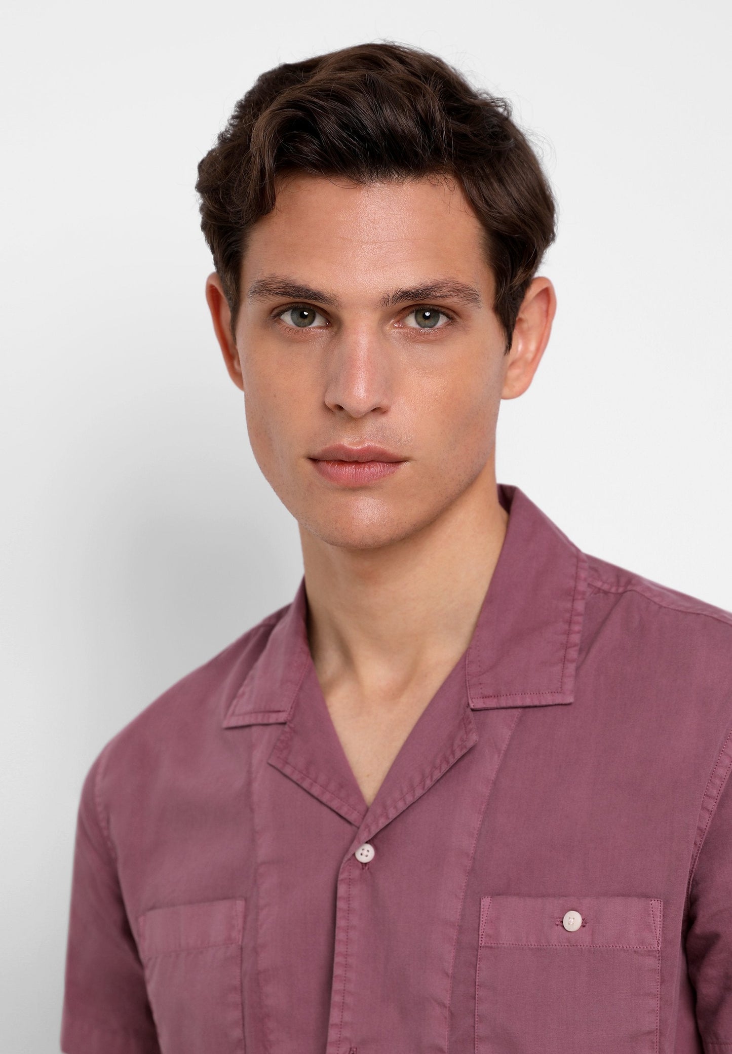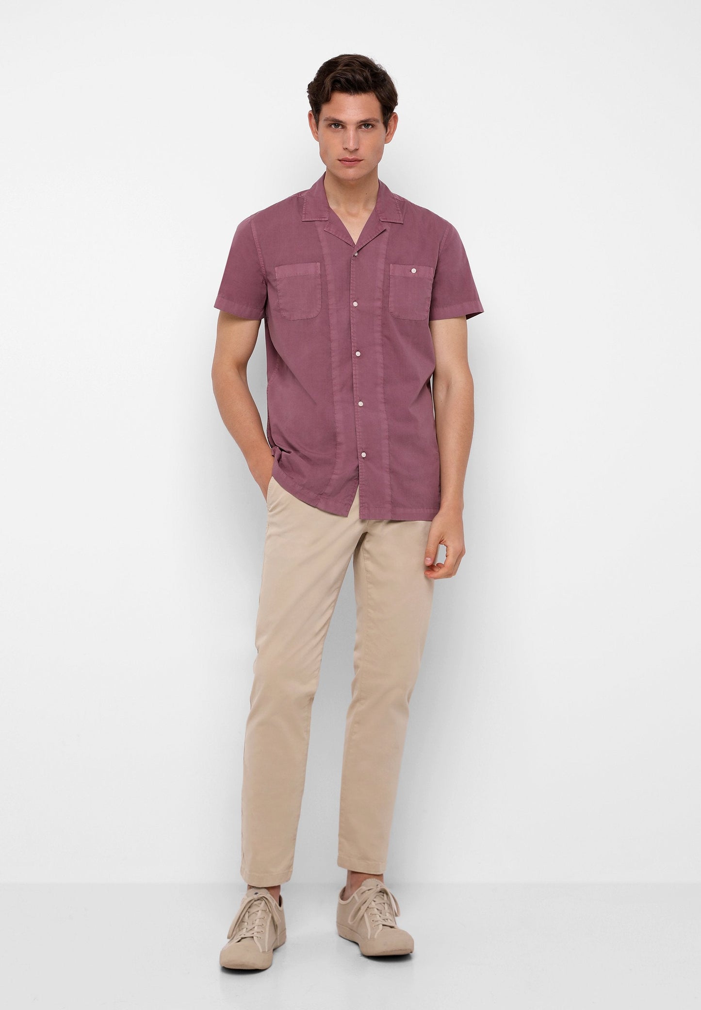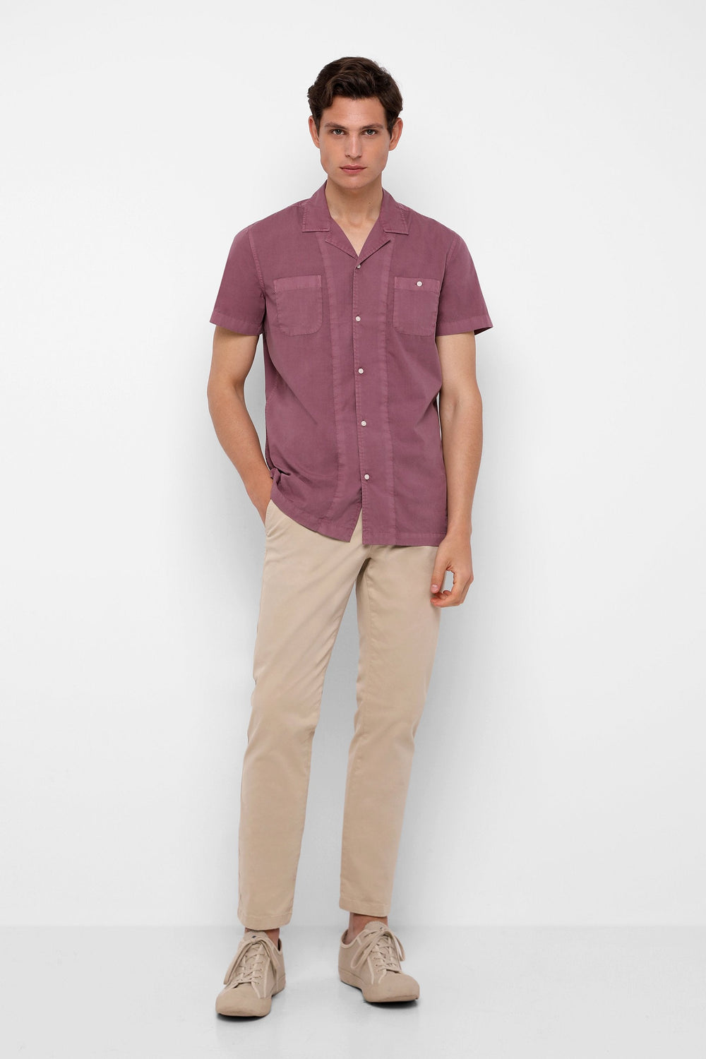Camisa confeccionada en tejido 100% algodón lavado. Corte Regular Fit, cuello pijamero y cierre con botones. Manga corta y detalle de bolsillos en pecho.