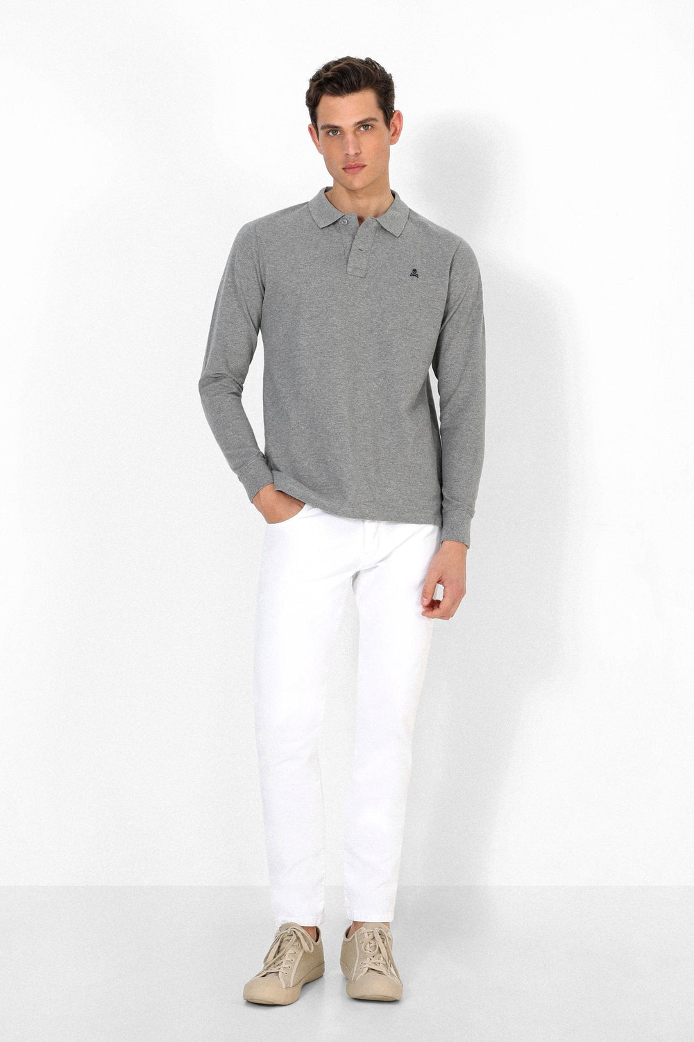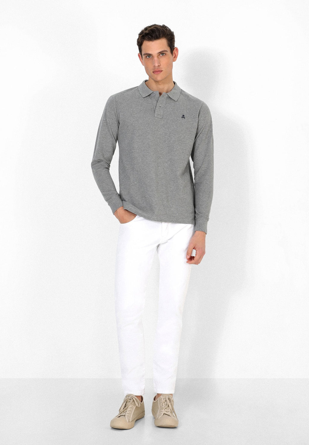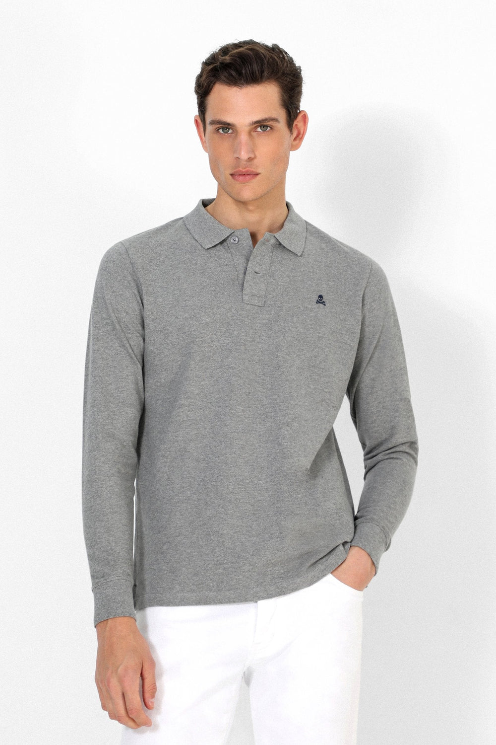 Polo confeccionado en tejido 100% algodón orgánico. Corte Regular Fit, cuello clásico y cierre con botones. Manga larga terminada en puño con botones y detalle de calavera bordada a contraste.