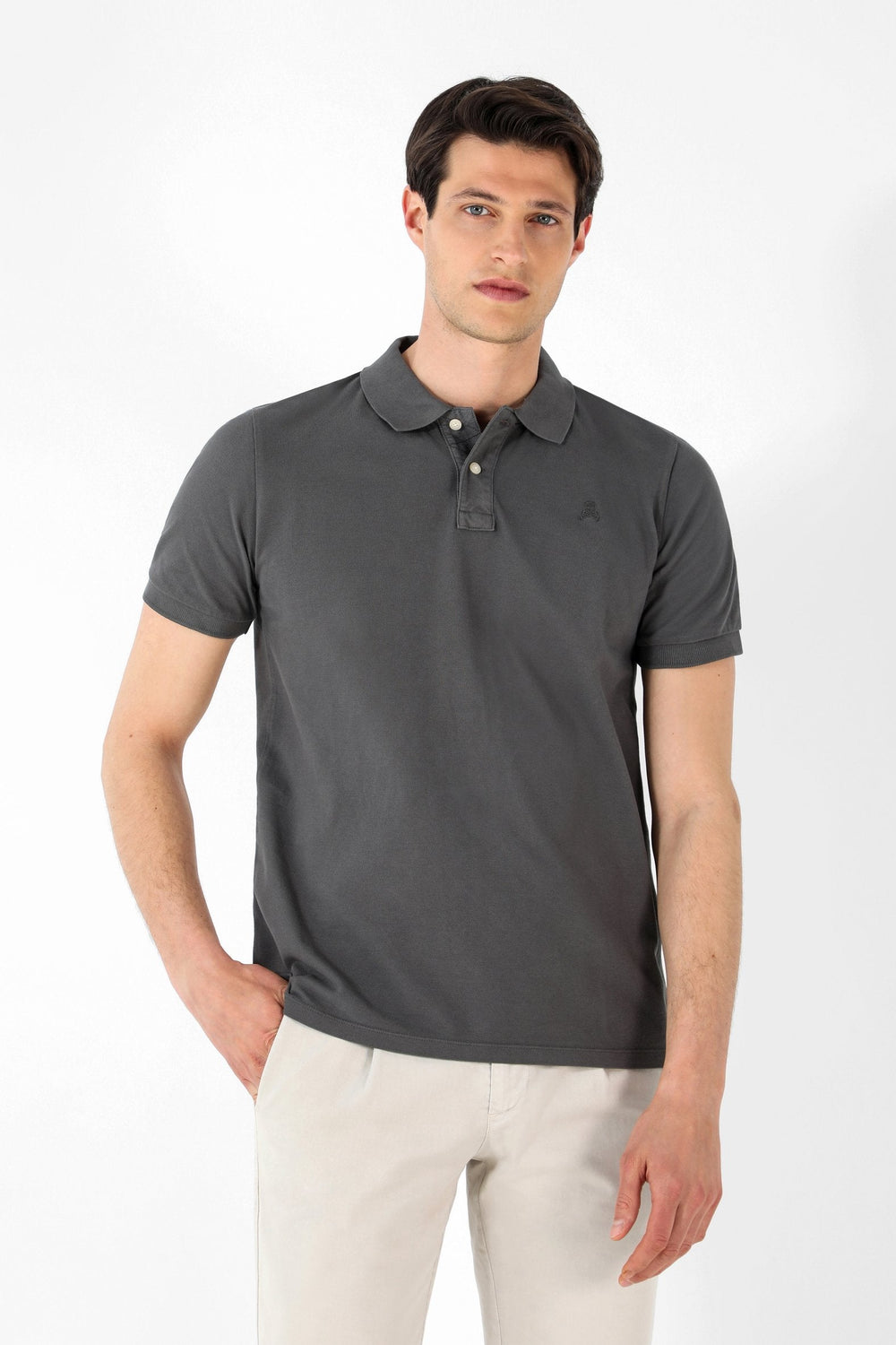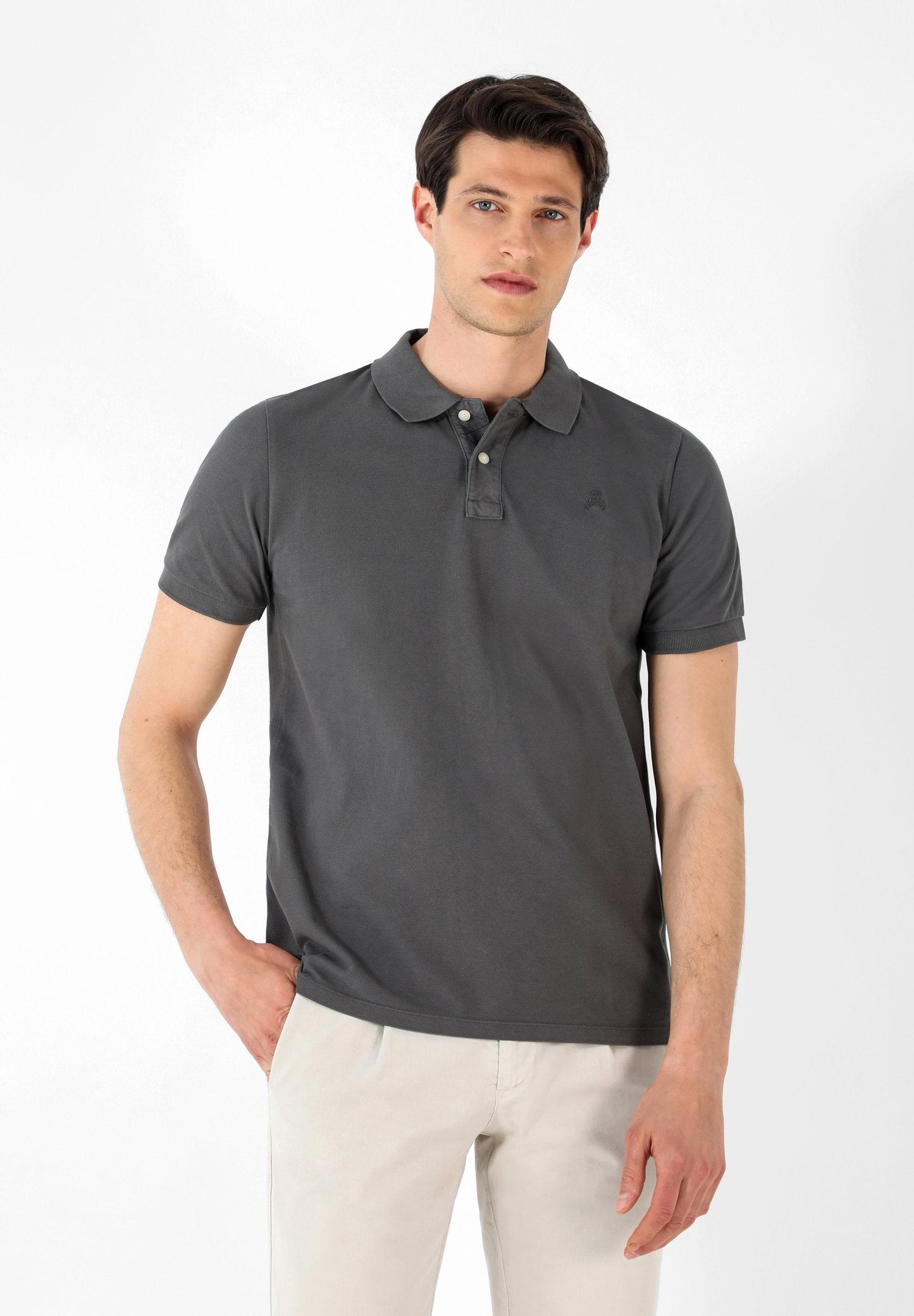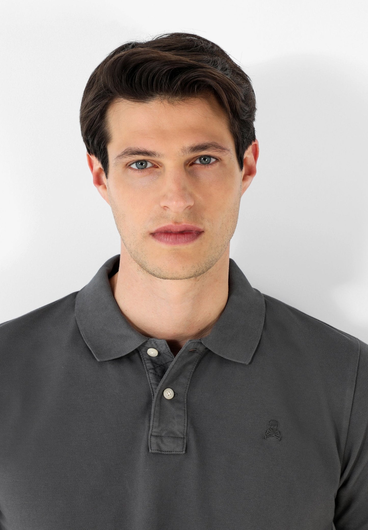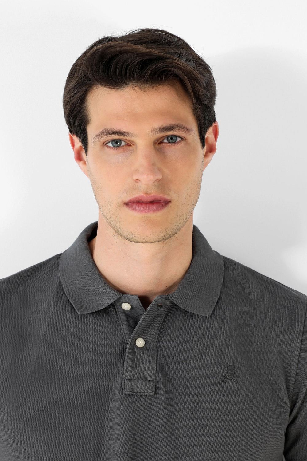 Polo confeccionado en tejido 100% algodón. Corte Regular Fit, cuello clásico y cierre con botones. Manga corta y detalle de calavera a tono.