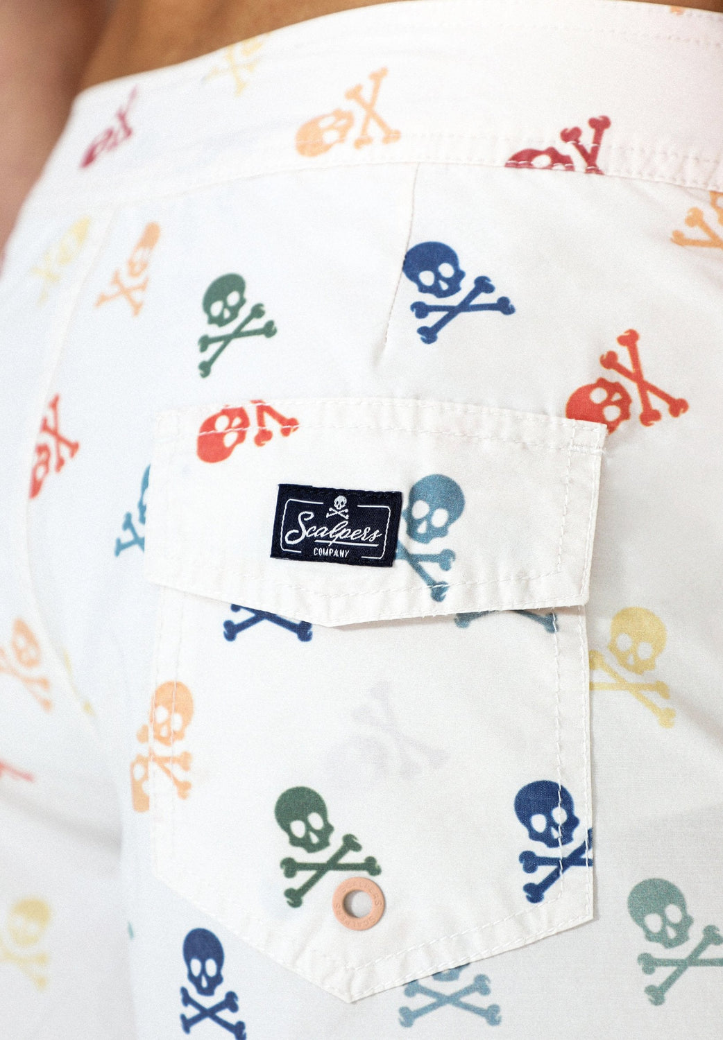 Bañador con calaveras multicolor all over confeccionado en tejido técnico. Corte Regular Fit, cierre con cordón y velcro y bolsillos laterales y trasero.