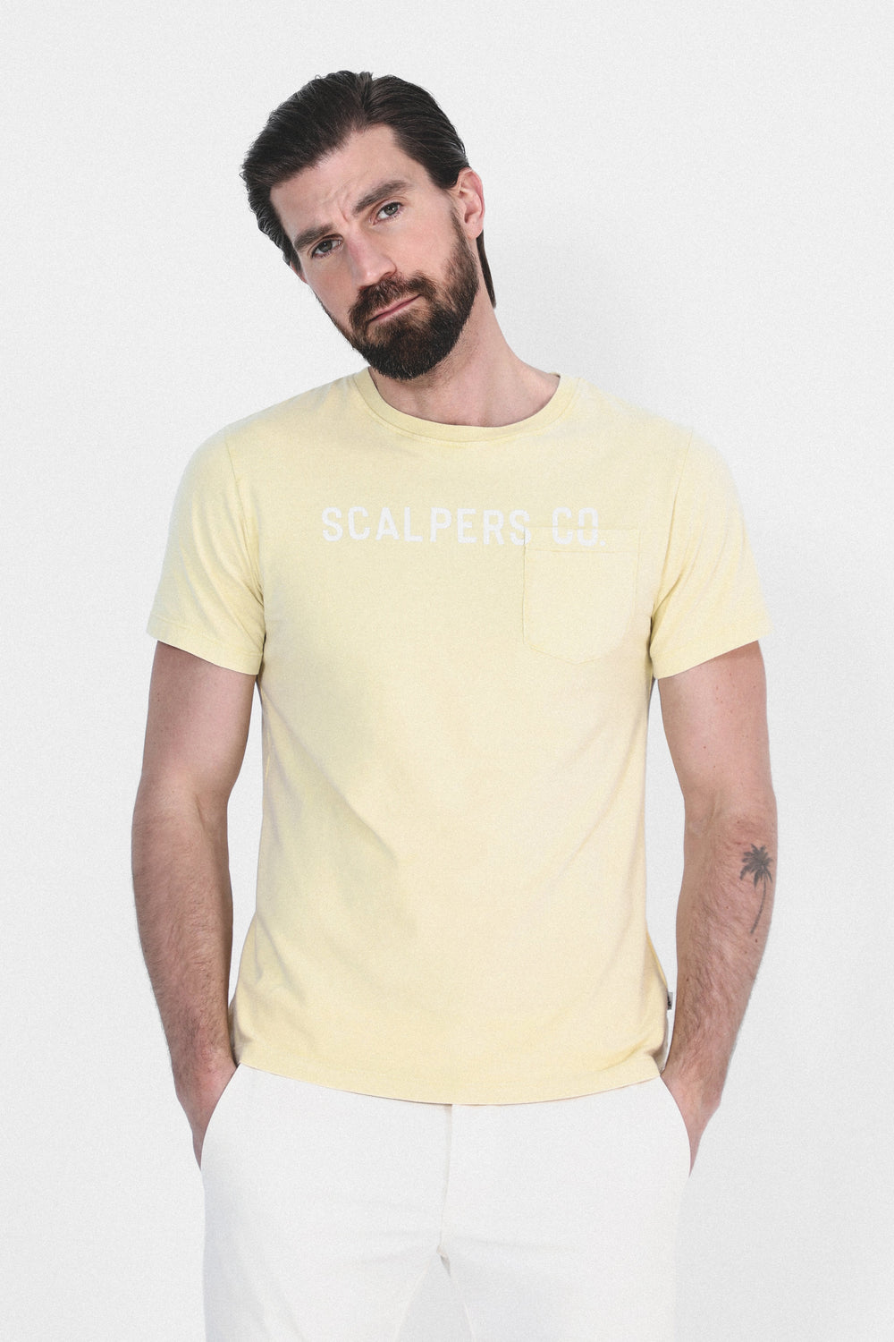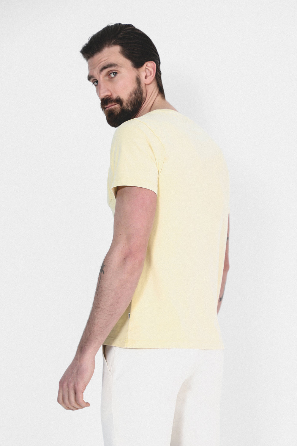 Camiseta confeccionada en tejido 100% algodón orgánico. Corte Regular Fit, cuello redondo y manga corta. Detalle de bolsillo en el pecho y print frontal.