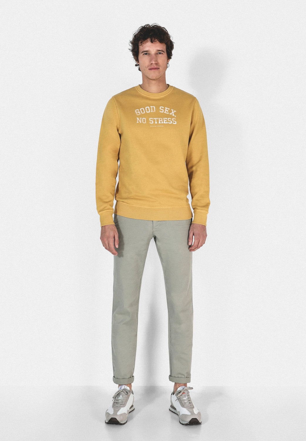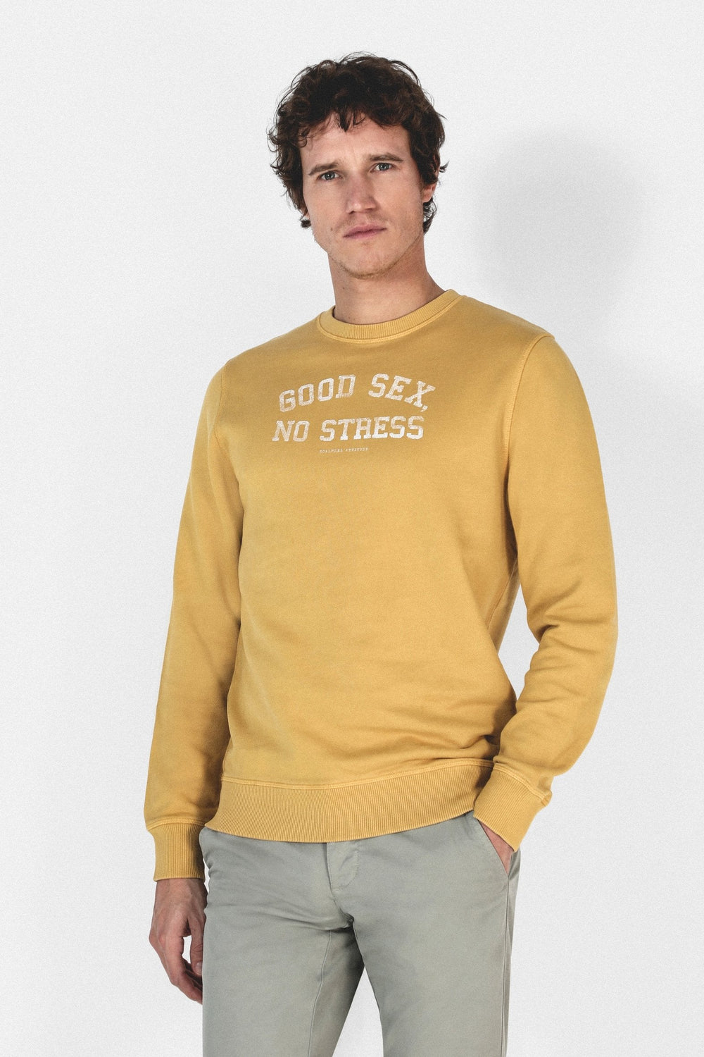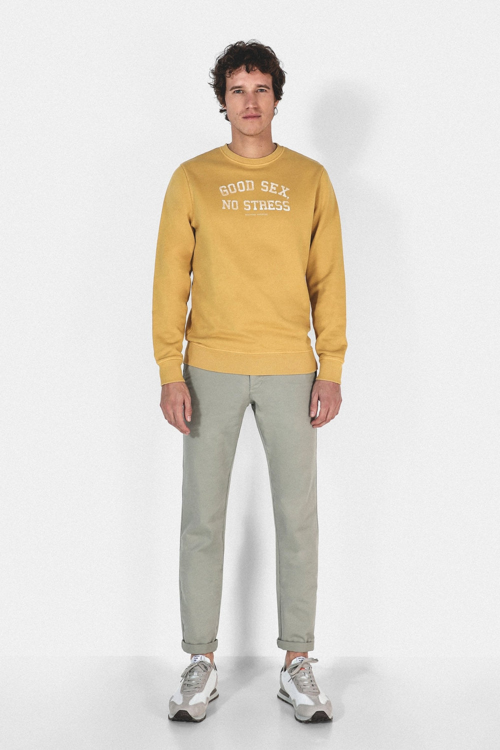 Sudadera confeccionada en tejido 100% algodón orgánico. Corte Regular Fit, cuello redondo y manga larga. Detalle de print frontal desgastado.