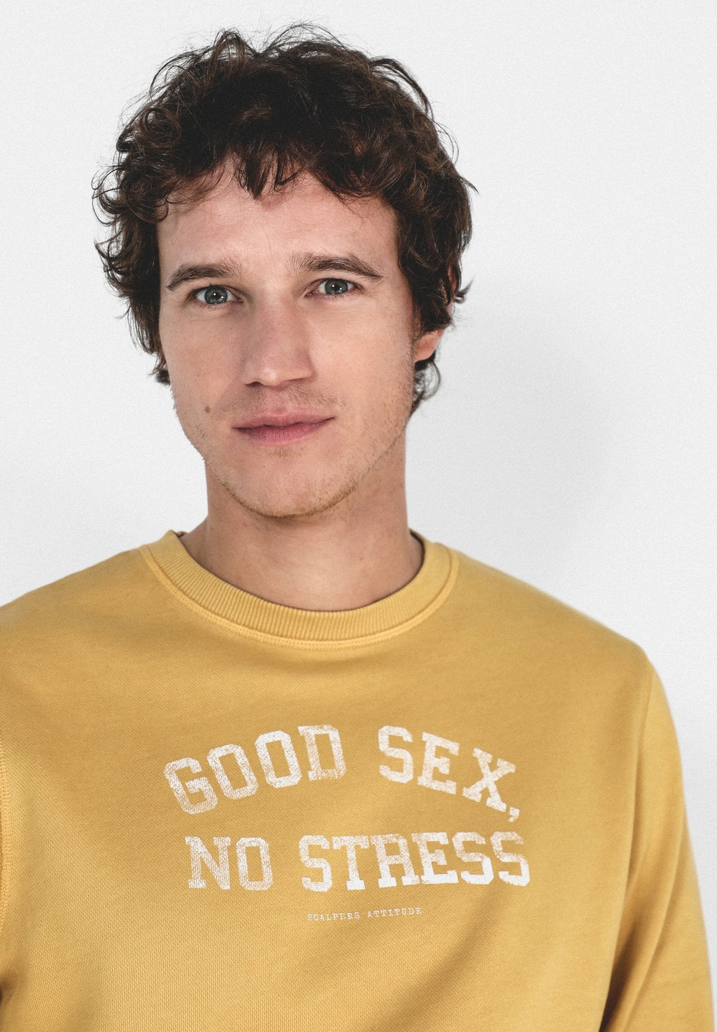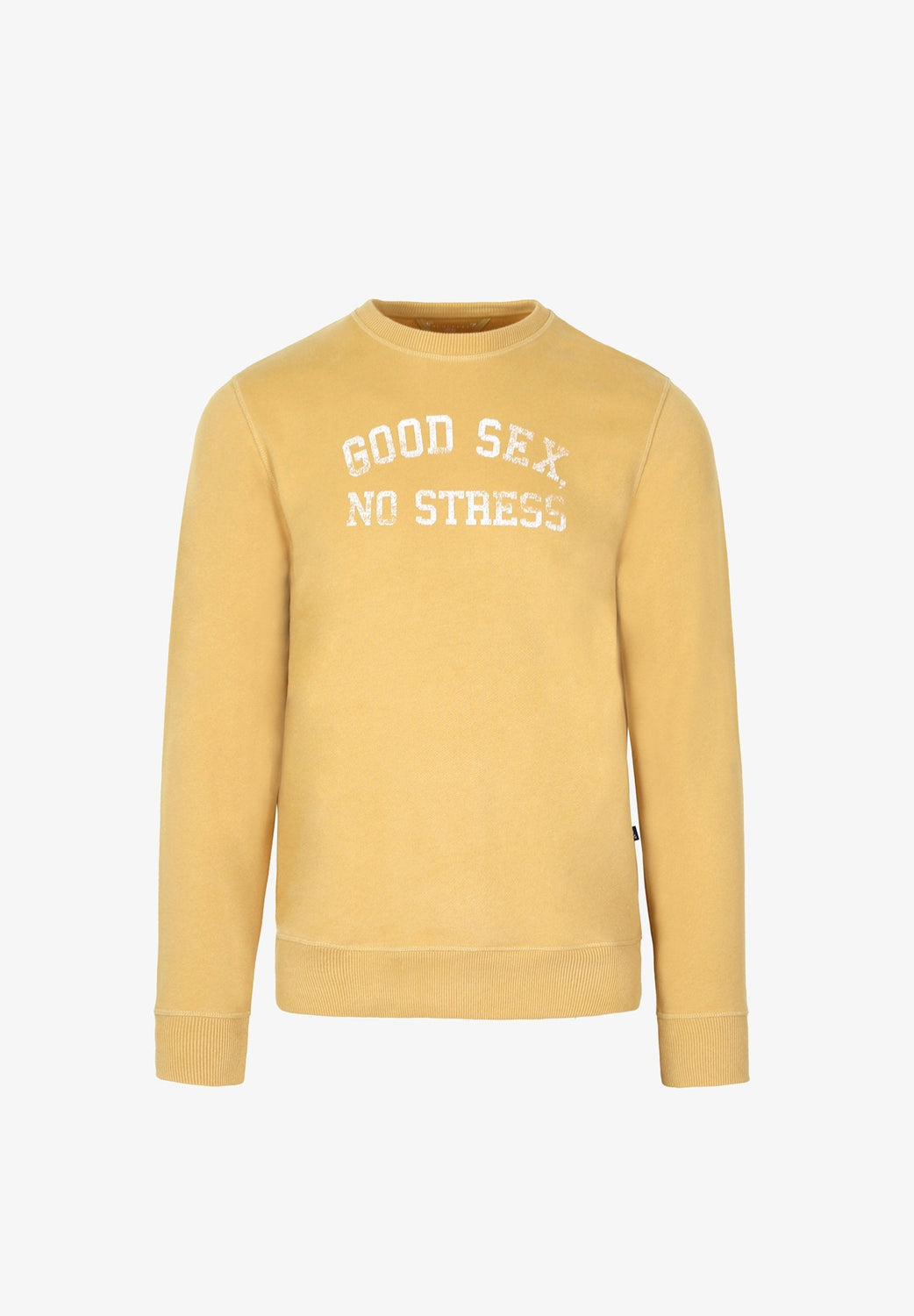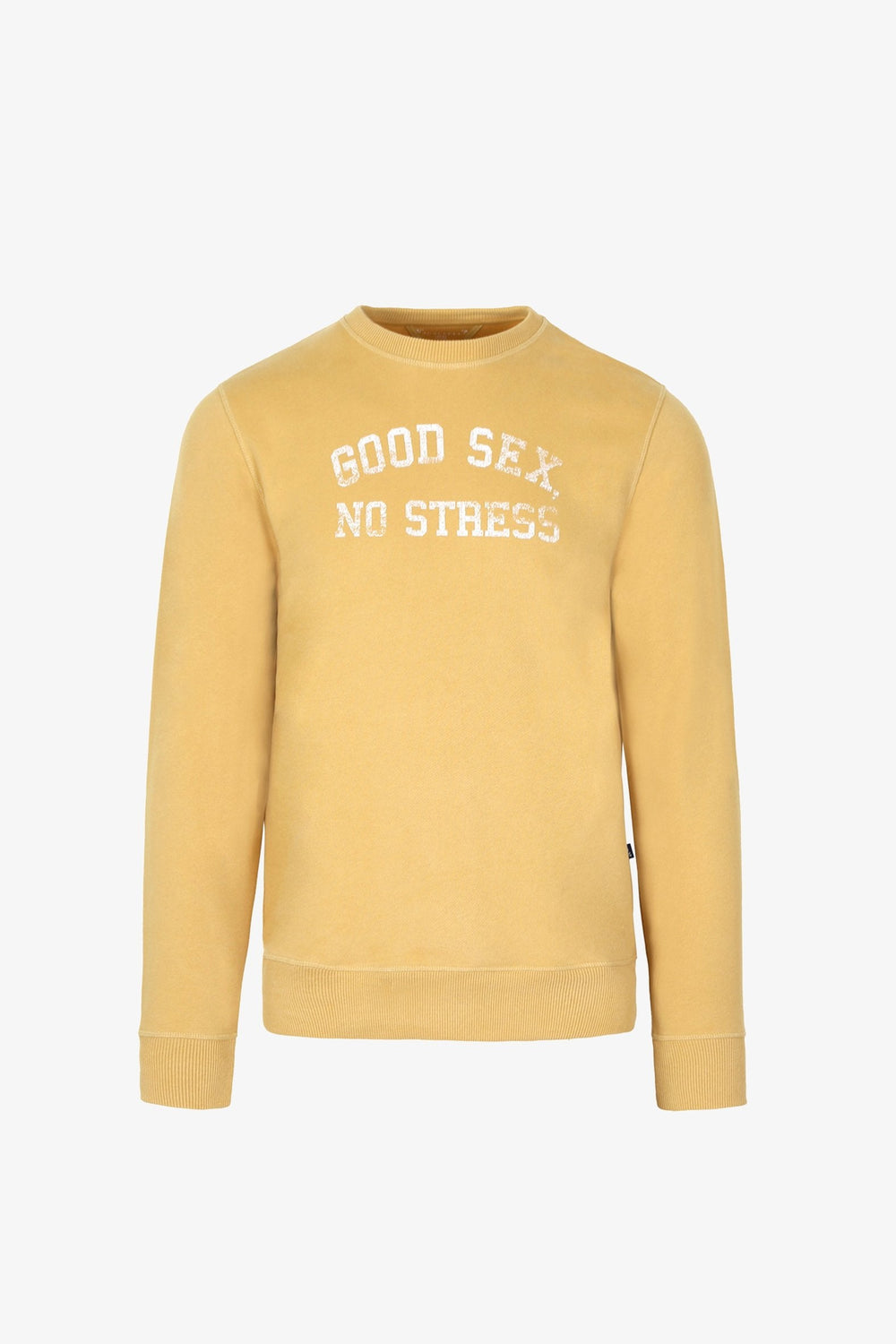 Sudadera confeccionada en tejido 100% algodón orgánico. Corte Regular Fit, cuello redondo y manga larga. Detalle de print frontal desgastado.