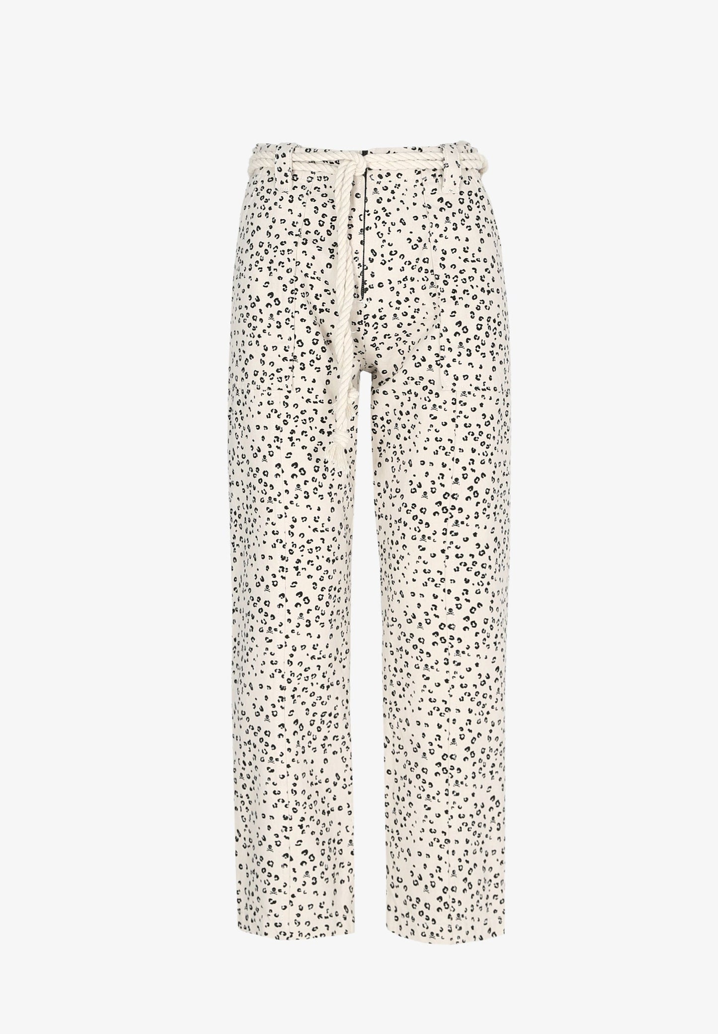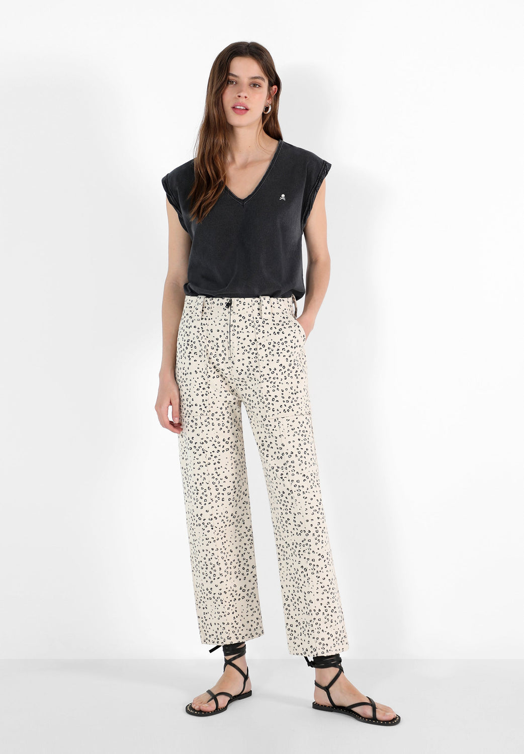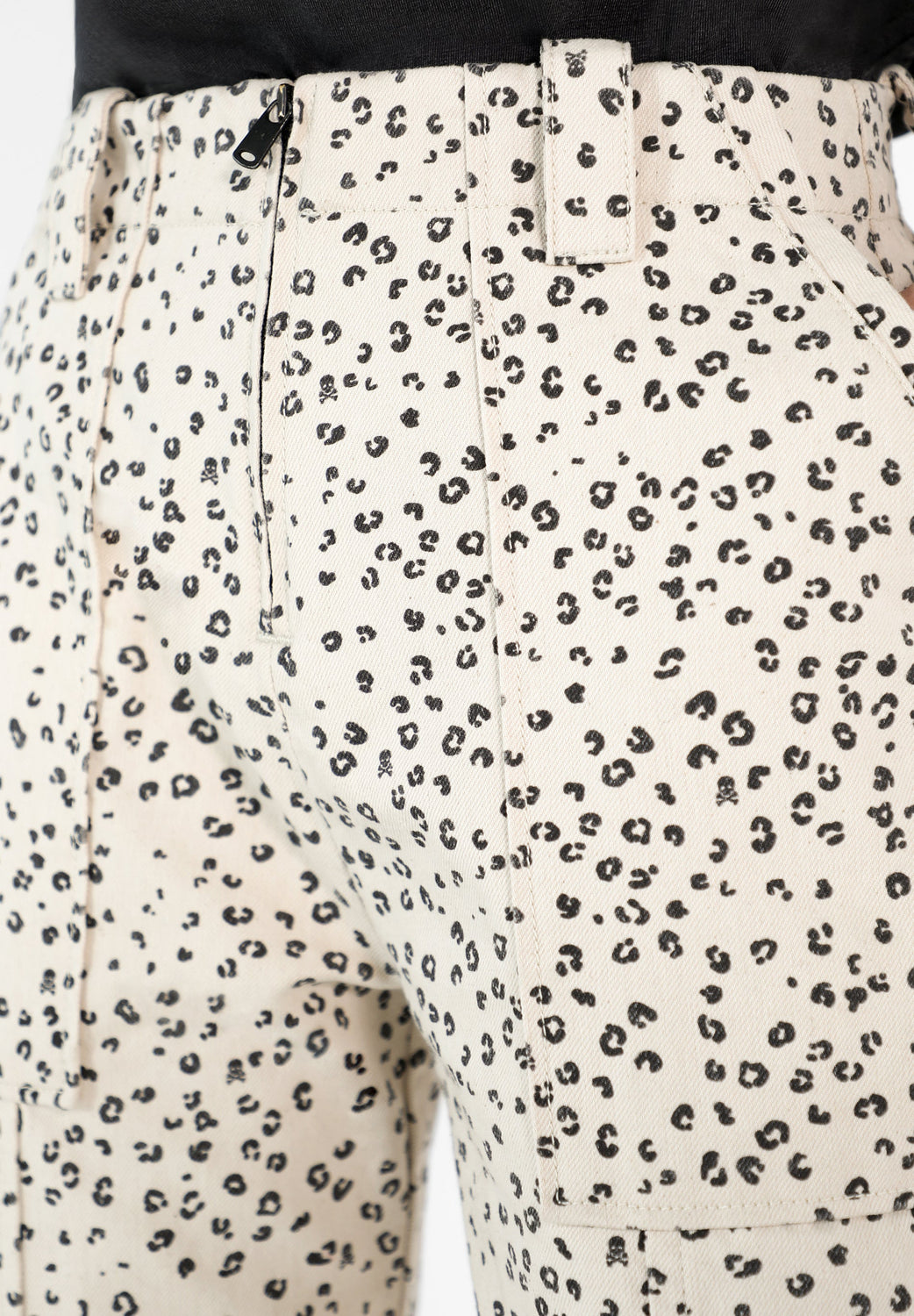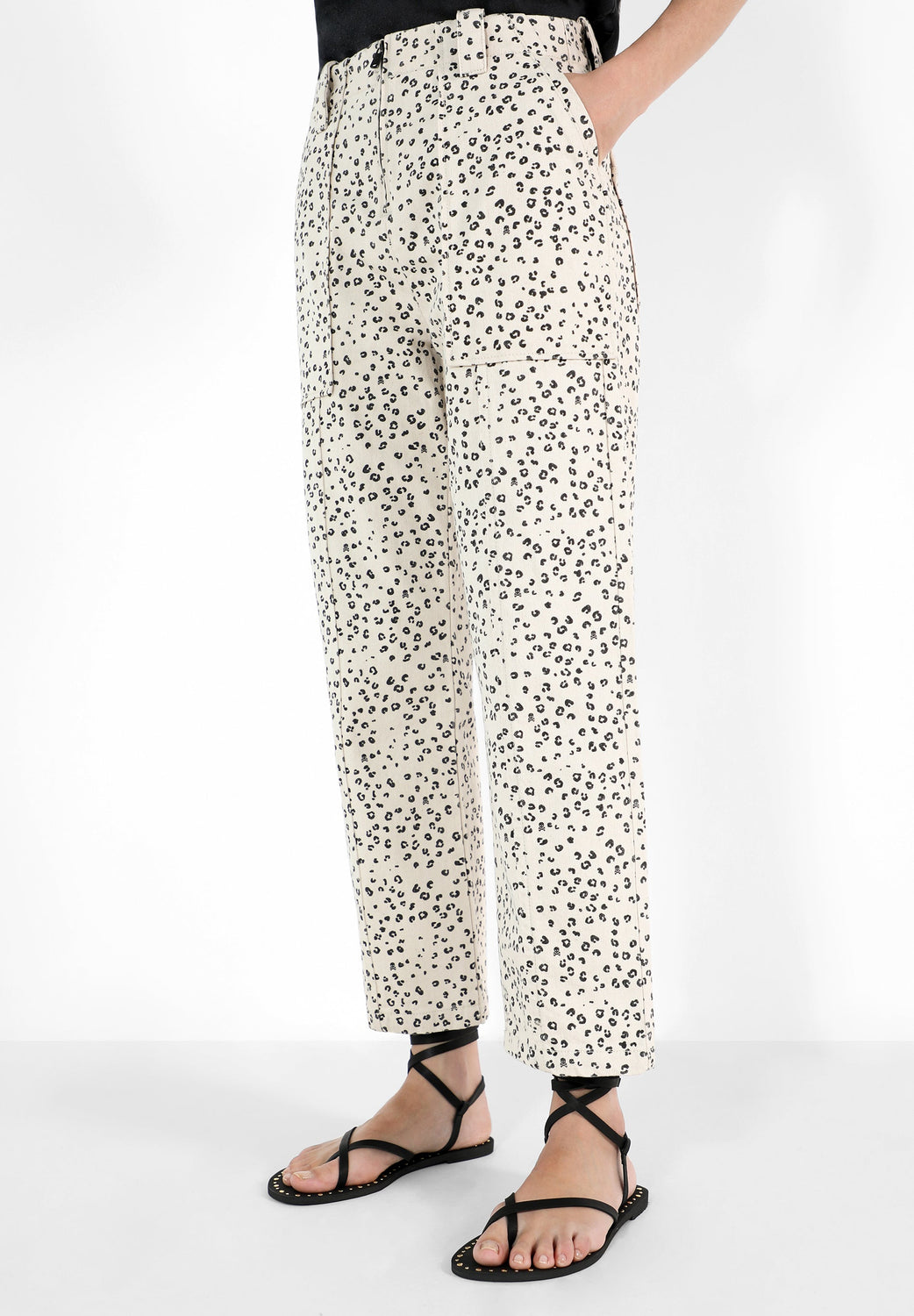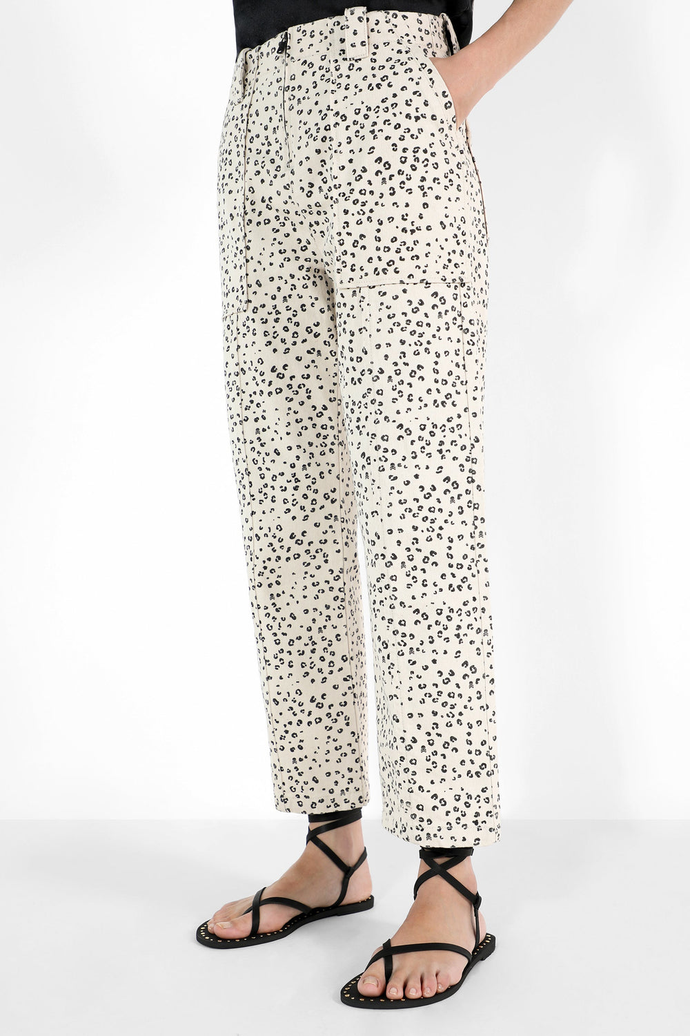 Pantalón con estampado mini animal print confeccionado en tejido 100% algodón. Corte Regular Fit, cierre con cremallera y bolsillos laterales. Costuras delanteras y tiene trabillas.