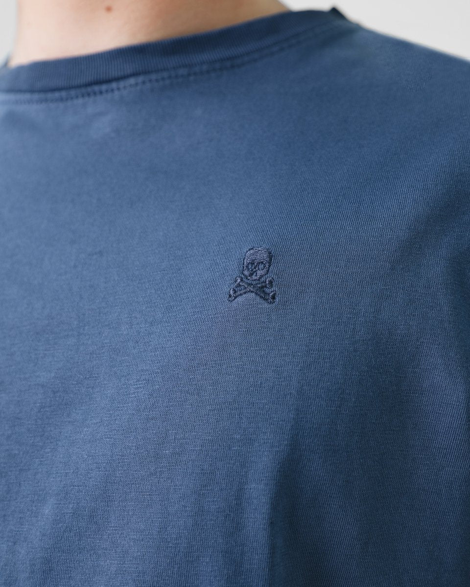 Camiseta lisa. Corte Regular Fit, cuello redondo y manga corta. Presenta detalle de calavera bordada al tono a la altura del pecho. Disponible en tres colores.