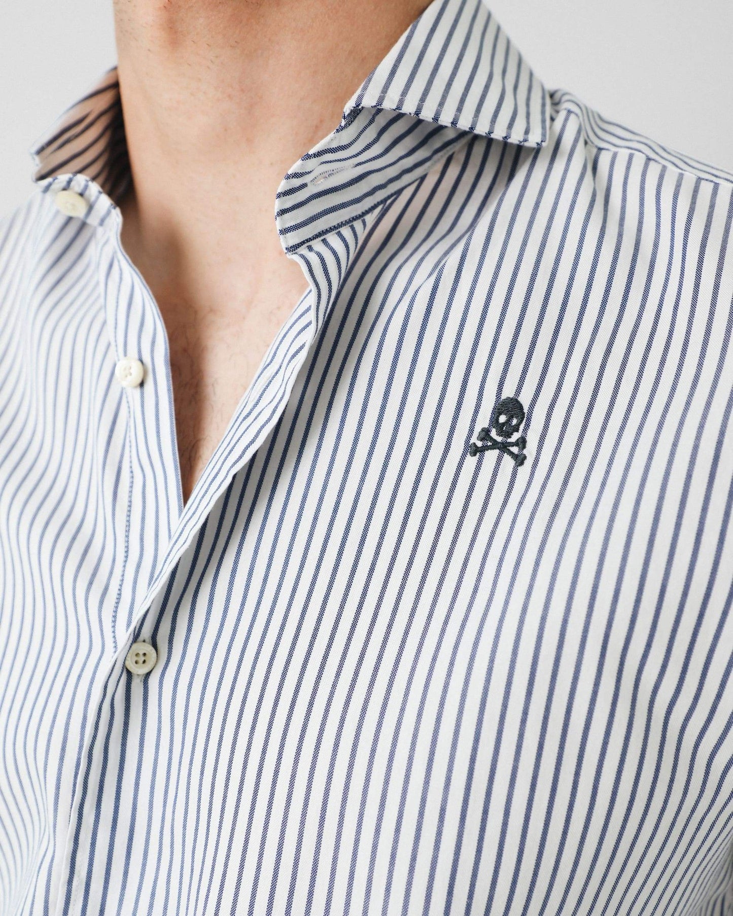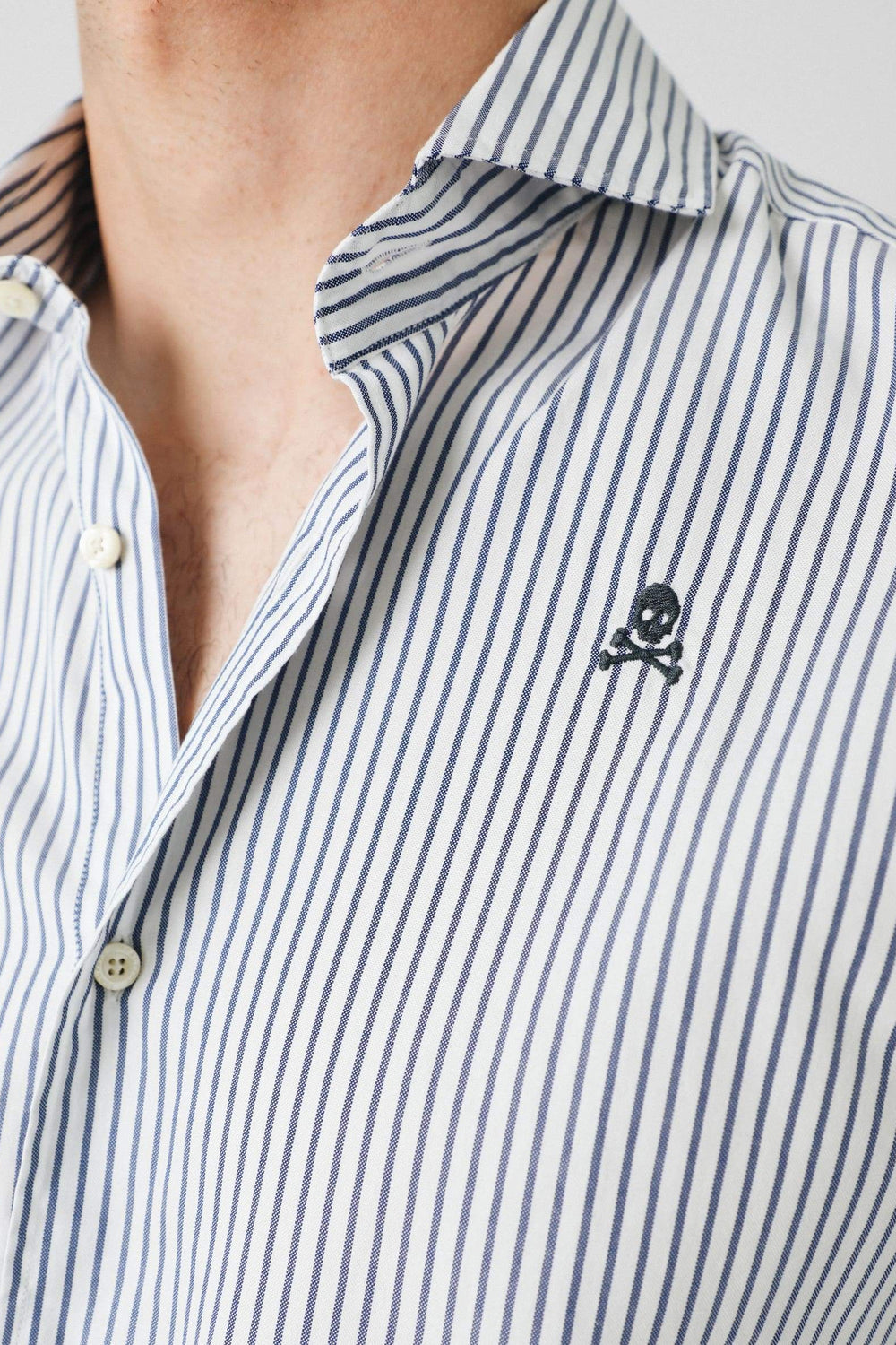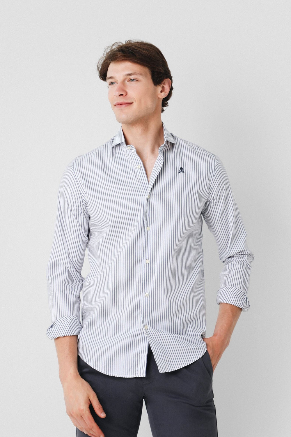 Camisa confeccionada en tejido 100% algodón. Corte Regular Fit, cuello Sport Elisée con ballenas y cierre con botones. Manga larga terminada en puño simple. Detalle de calavera bordada en el pecho.