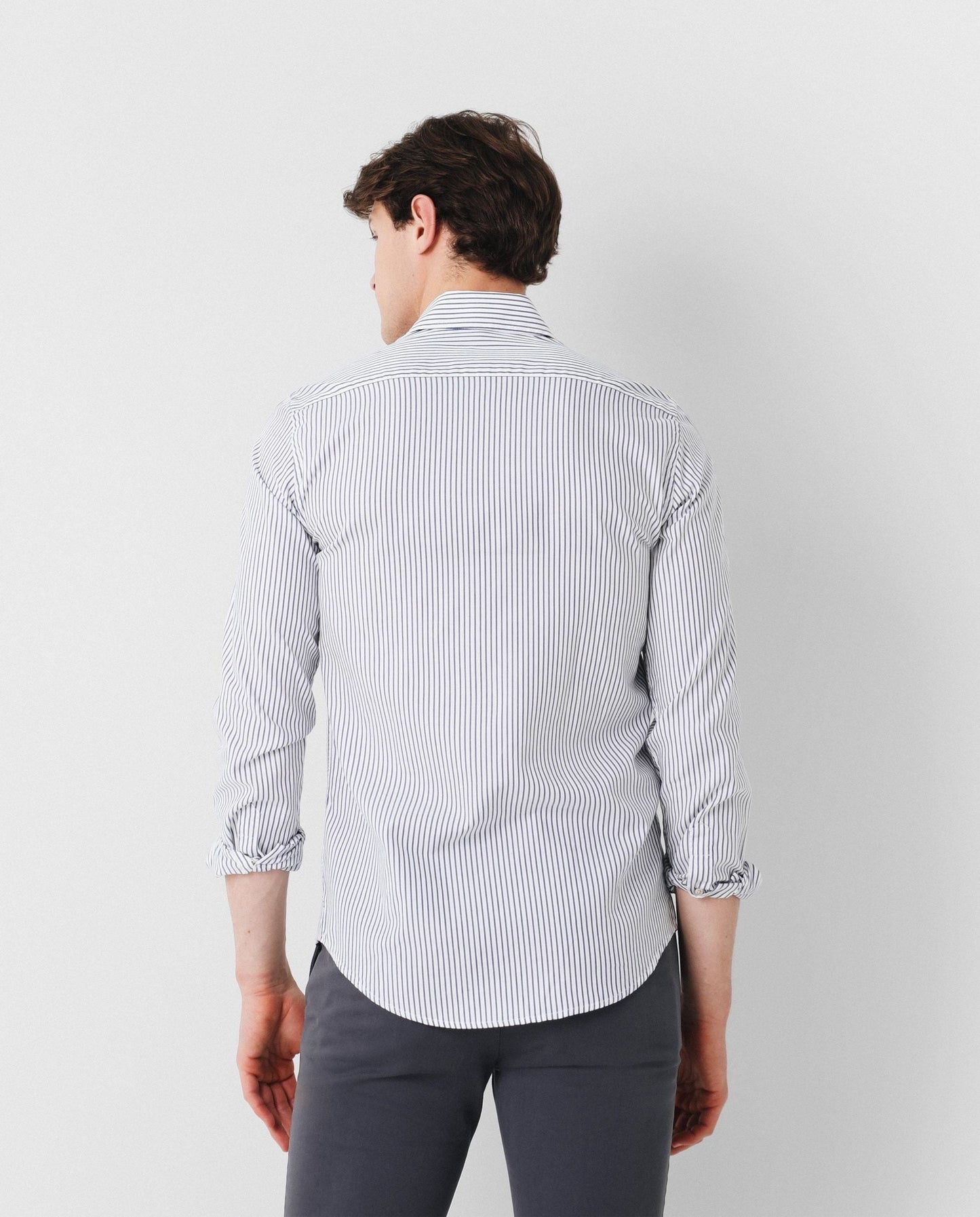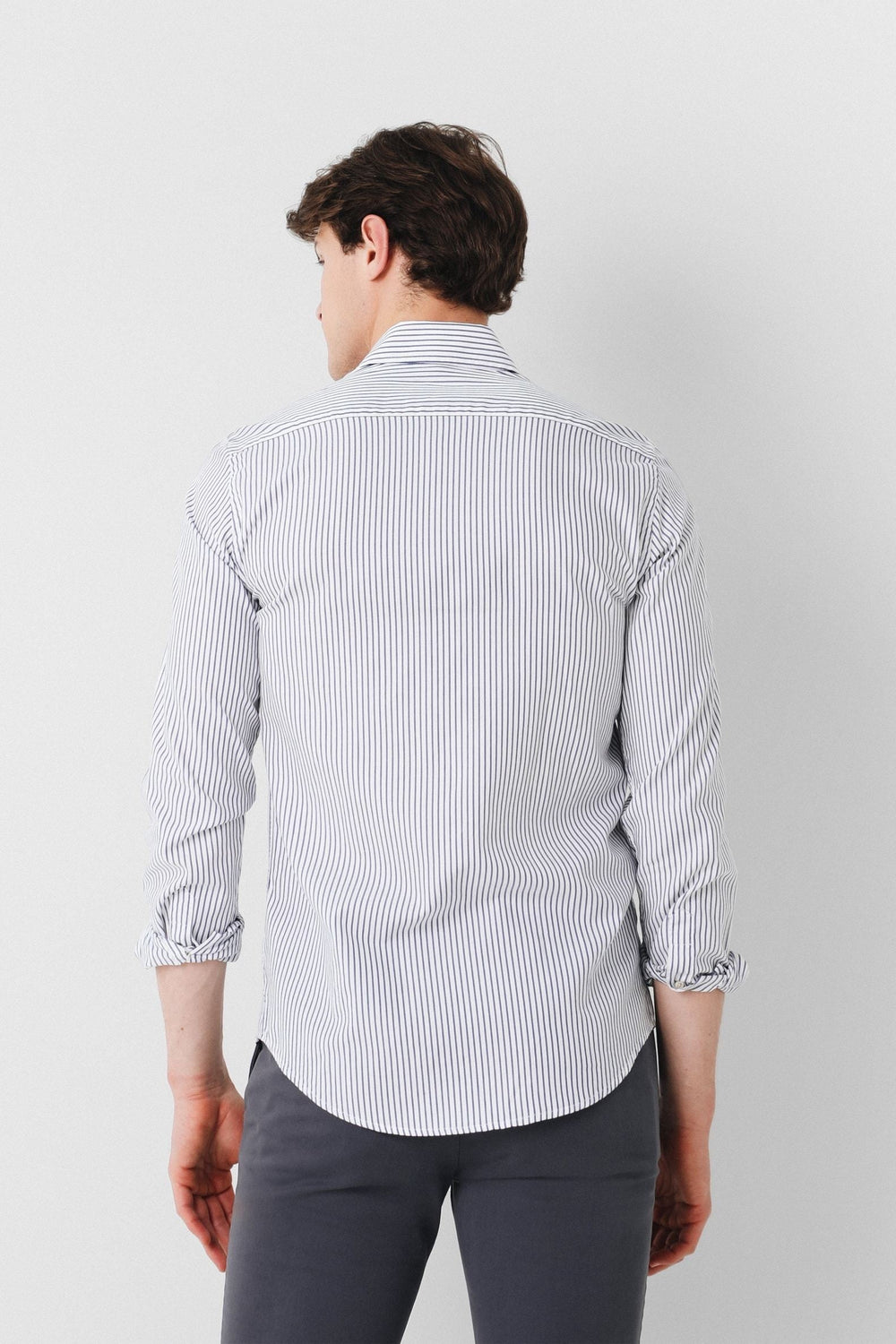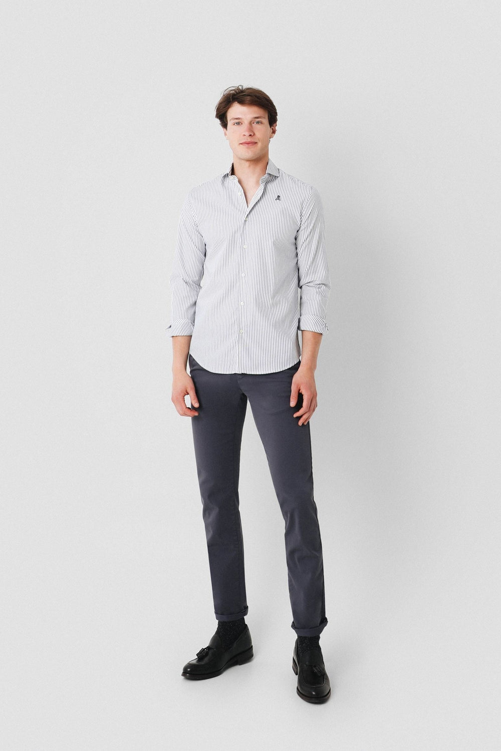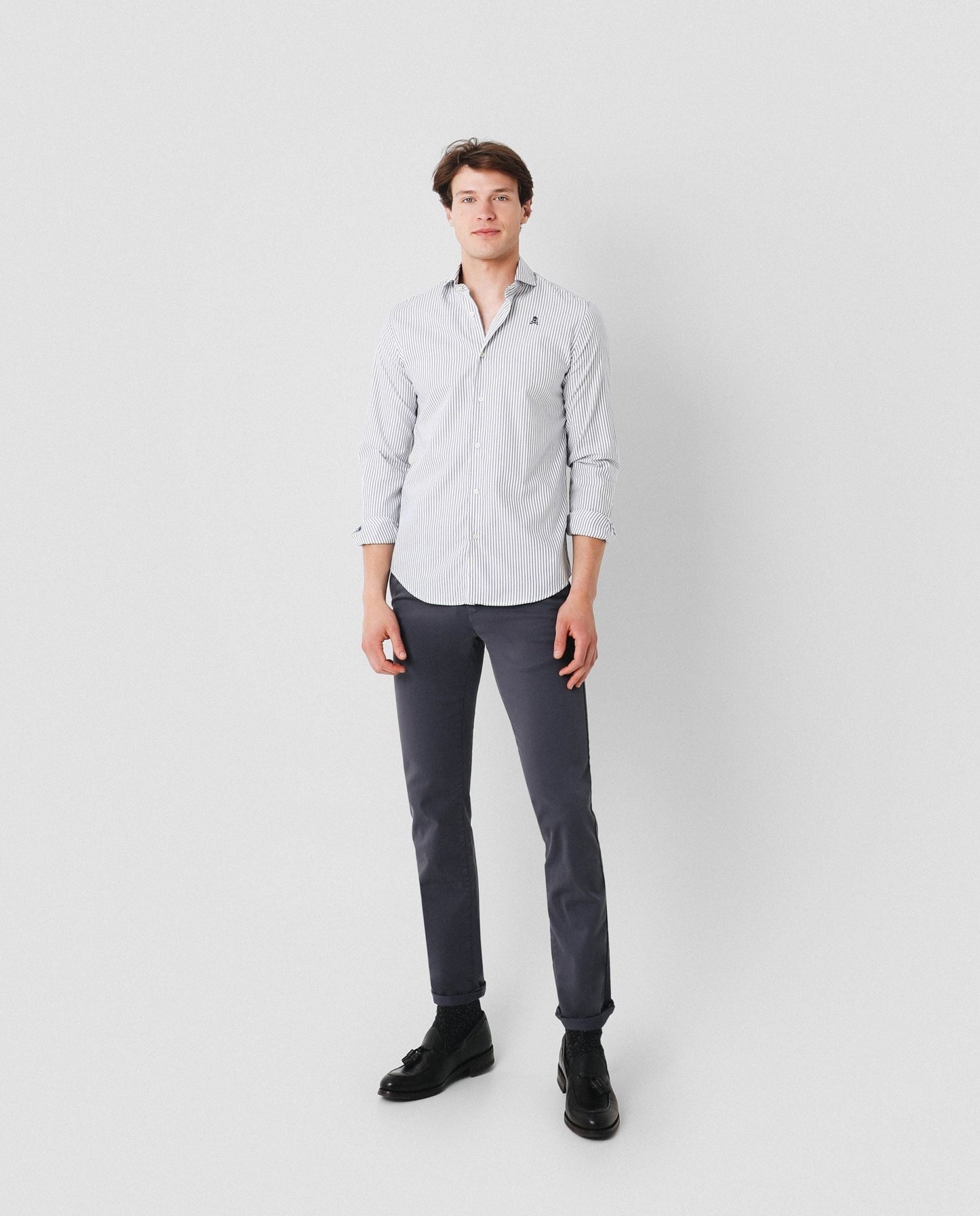 Camisa confeccionada en tejido 100% algodón. Corte Regular Fit, cuello Sport Elisée con ballenas y cierre con botones. Manga larga terminada en puño simple. Detalle de calavera bordada en el pecho.