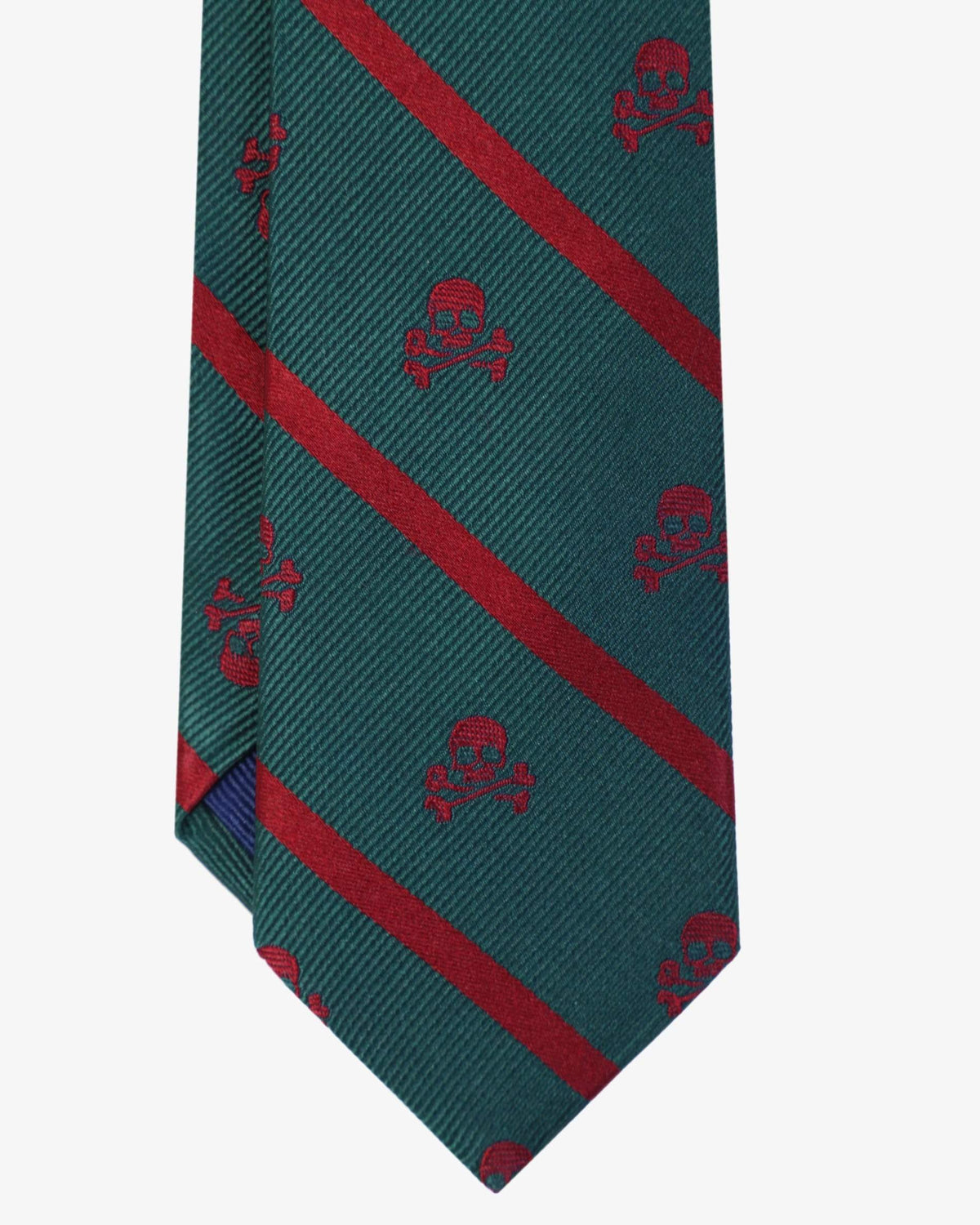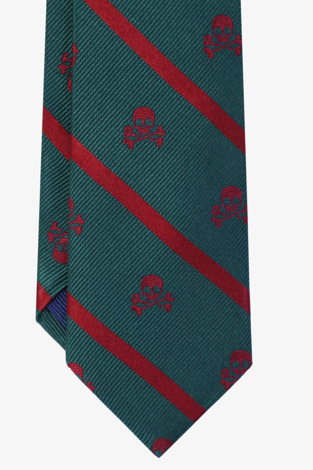 Corbata confeccionada en tejido 100% seda. Presenta rayas oblicuas y motivo de calavera a contraste.